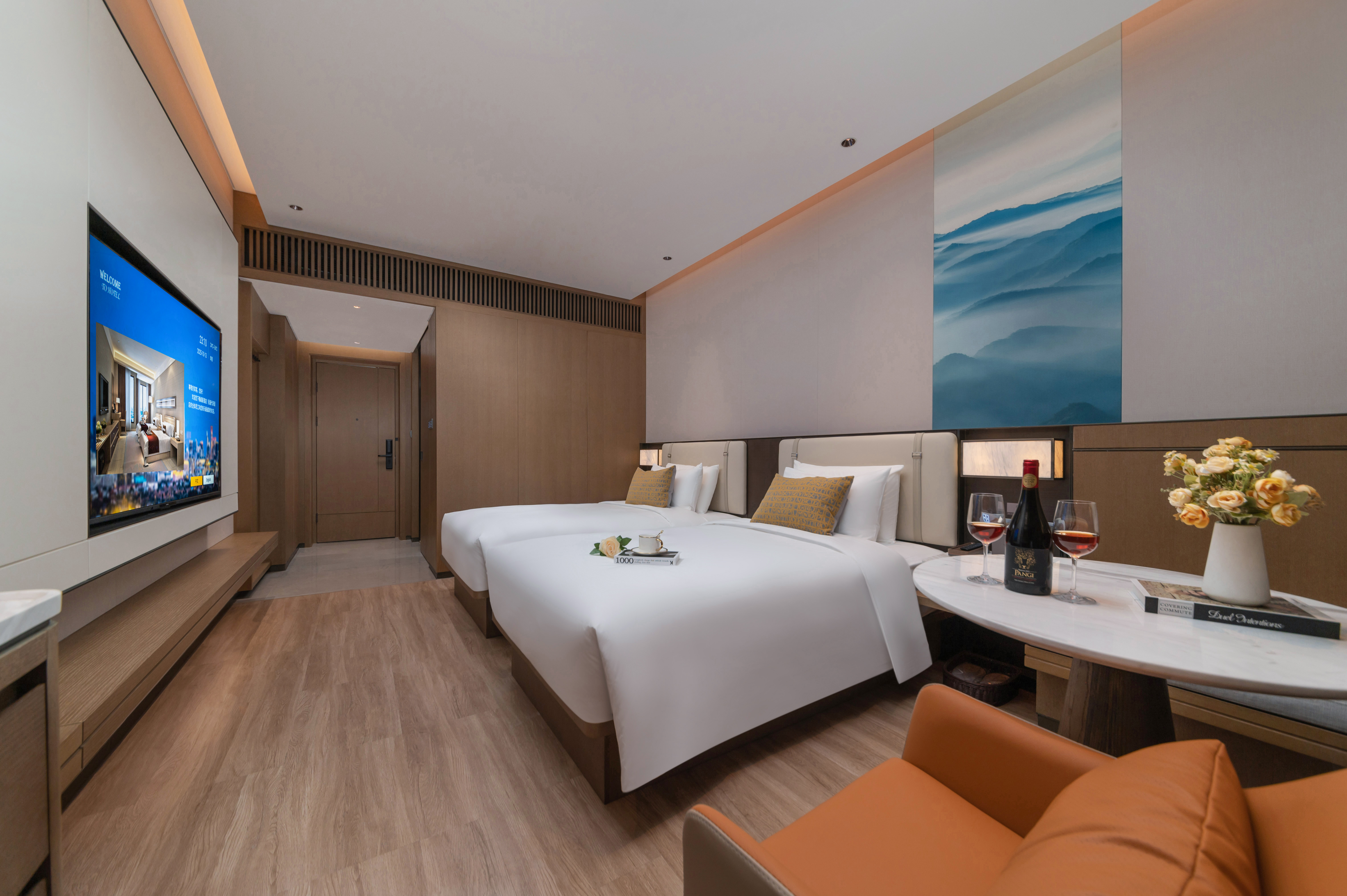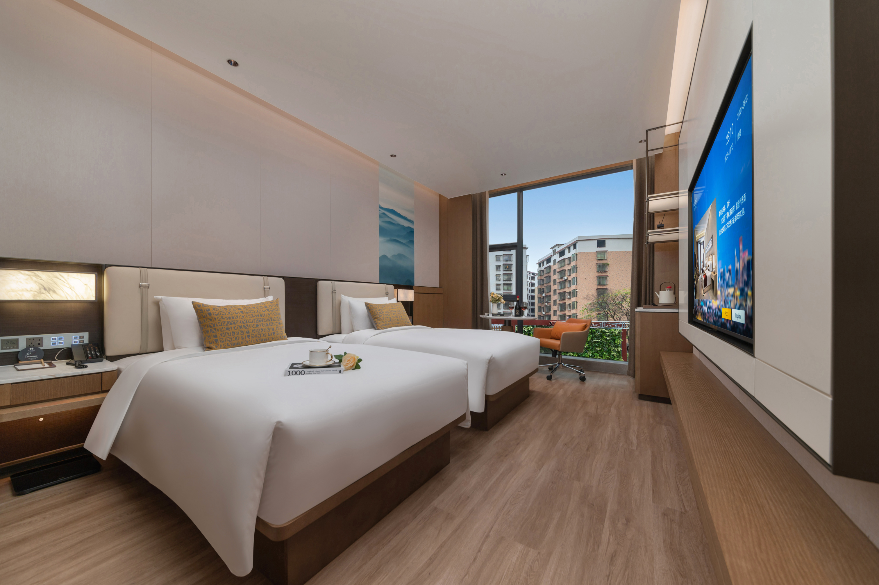 雅致双床房(金可儿安睡床垫+360°延伸电视+亲肤床品)