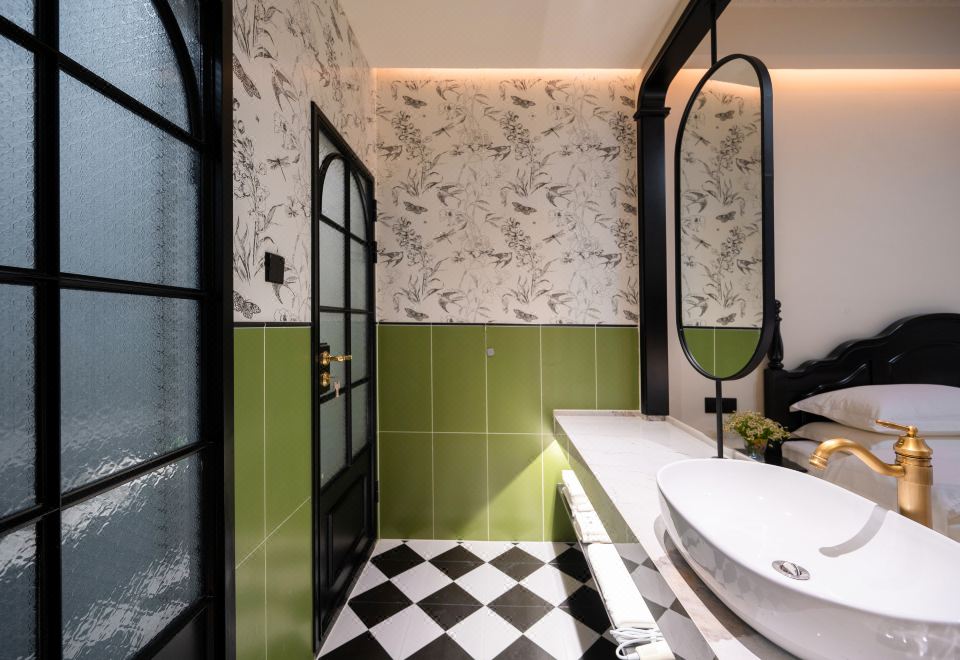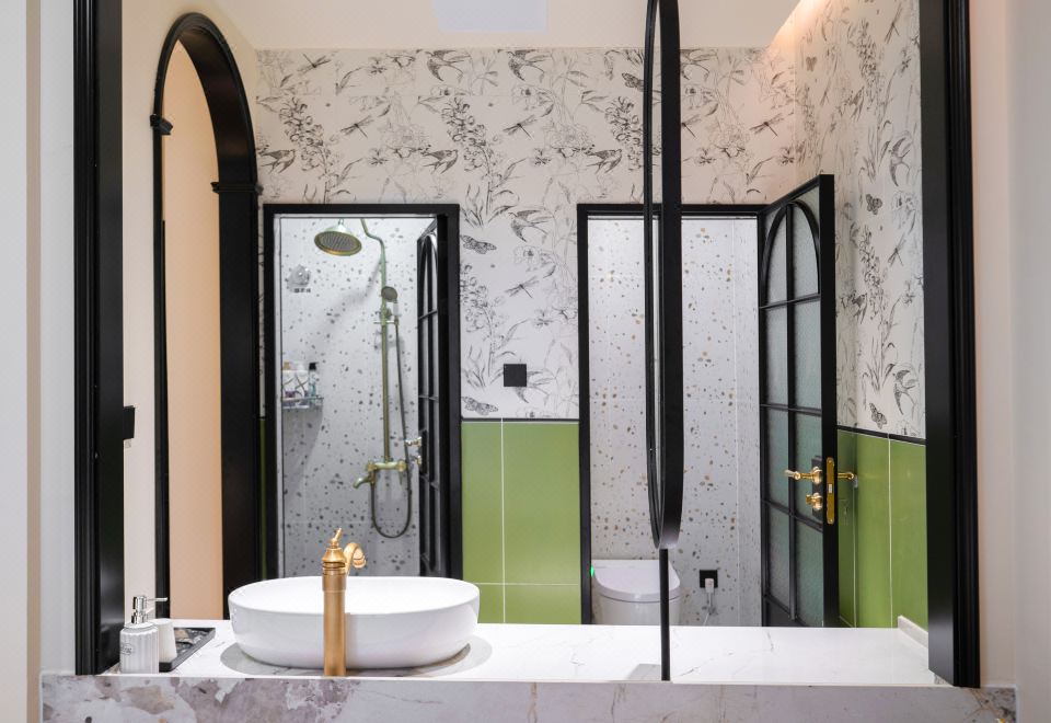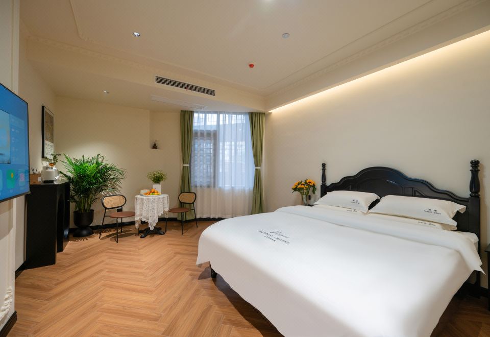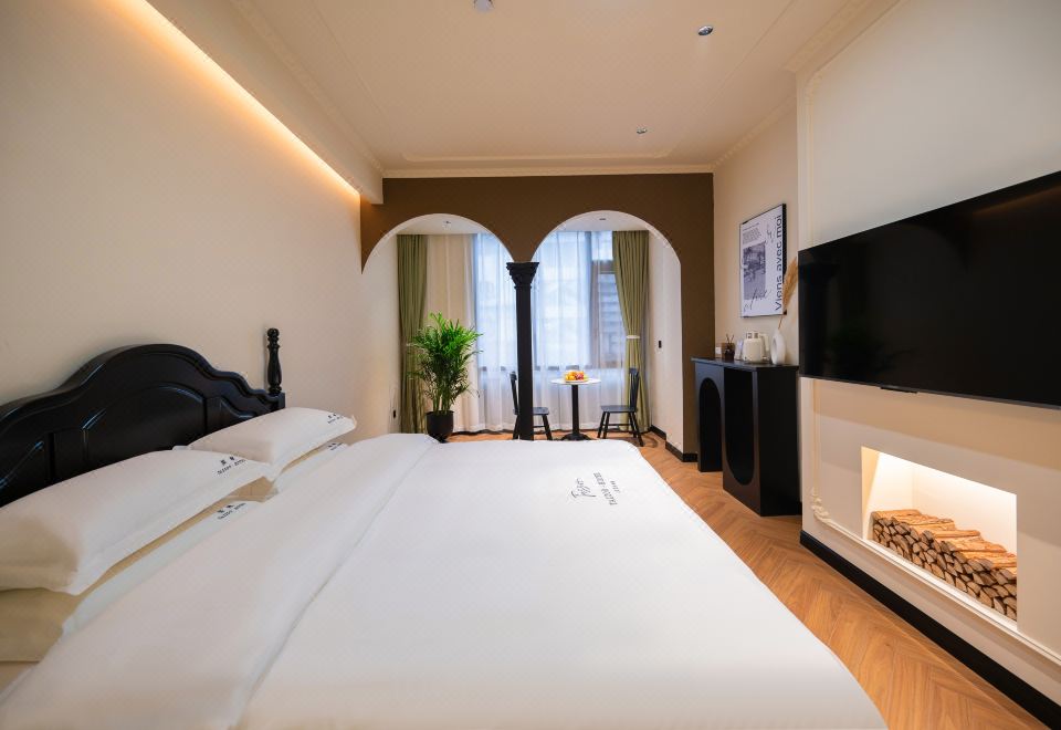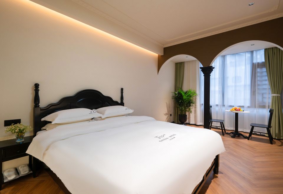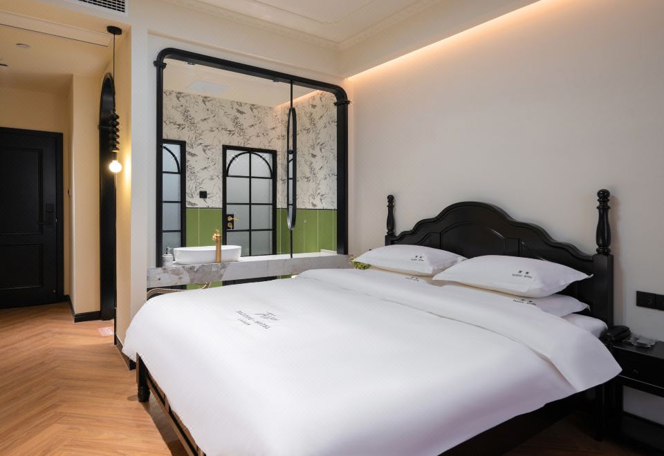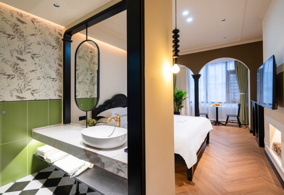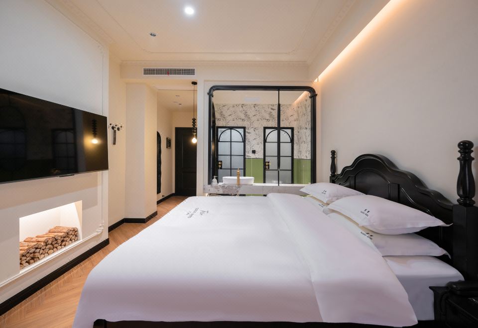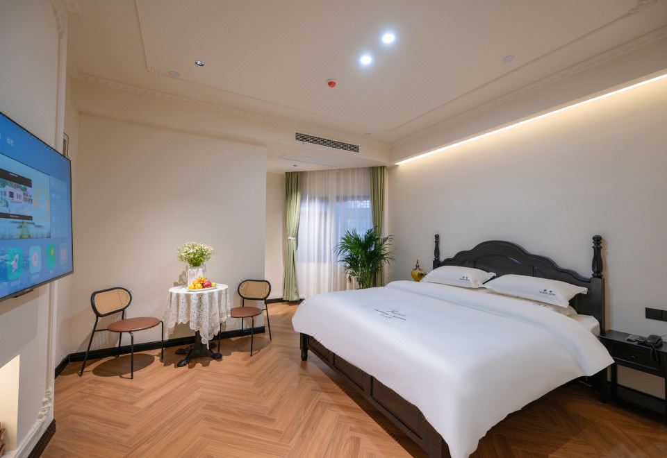 B Elegant Double Bed Room (French Vintage Style With Memory Foam Pillows, Custom Latex Mattress, Smart Toilet, Full-Length Mirror)