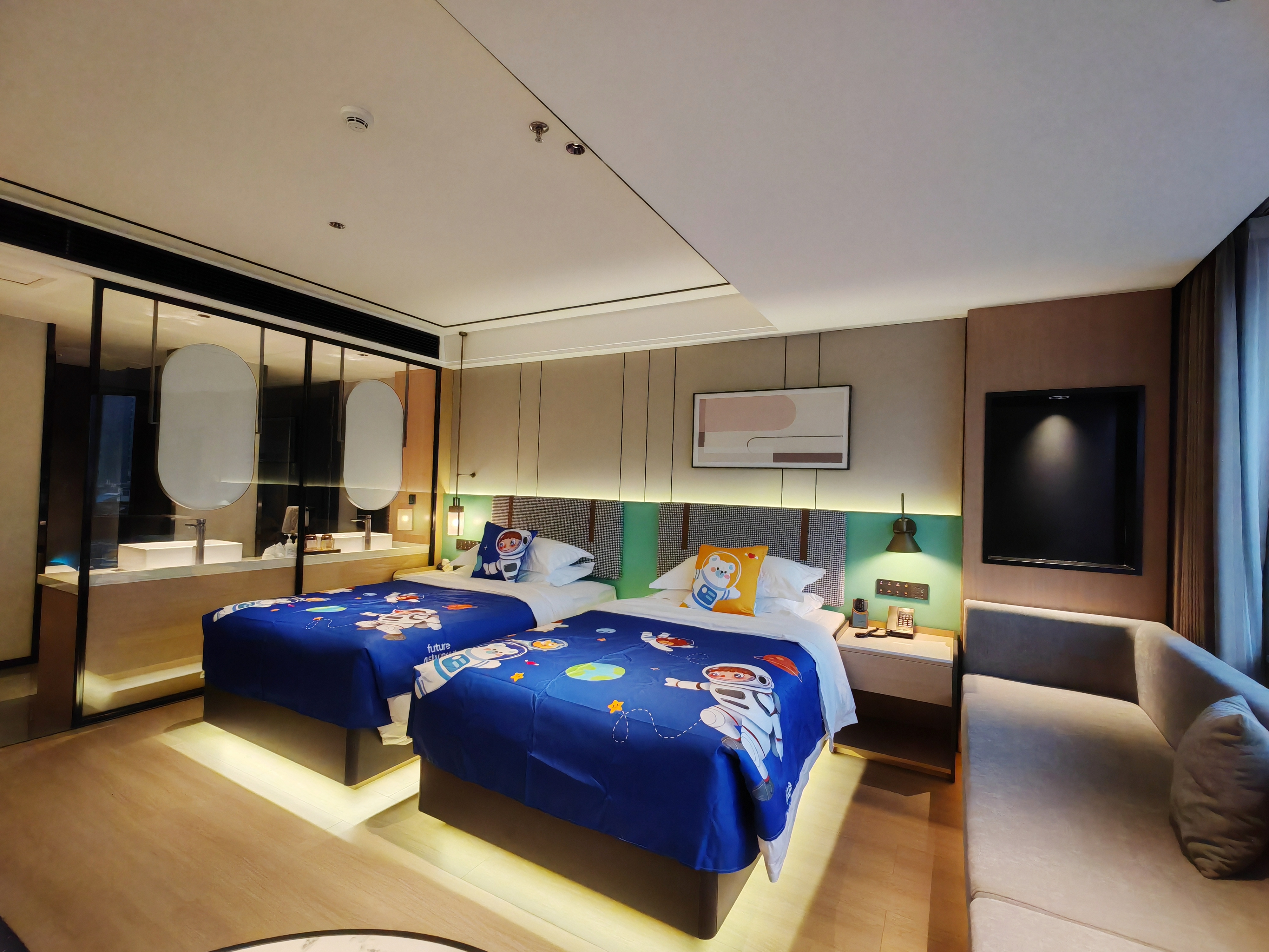 雅致家庭亲子房(温馨亲子布置+长沙发+电视投屏)