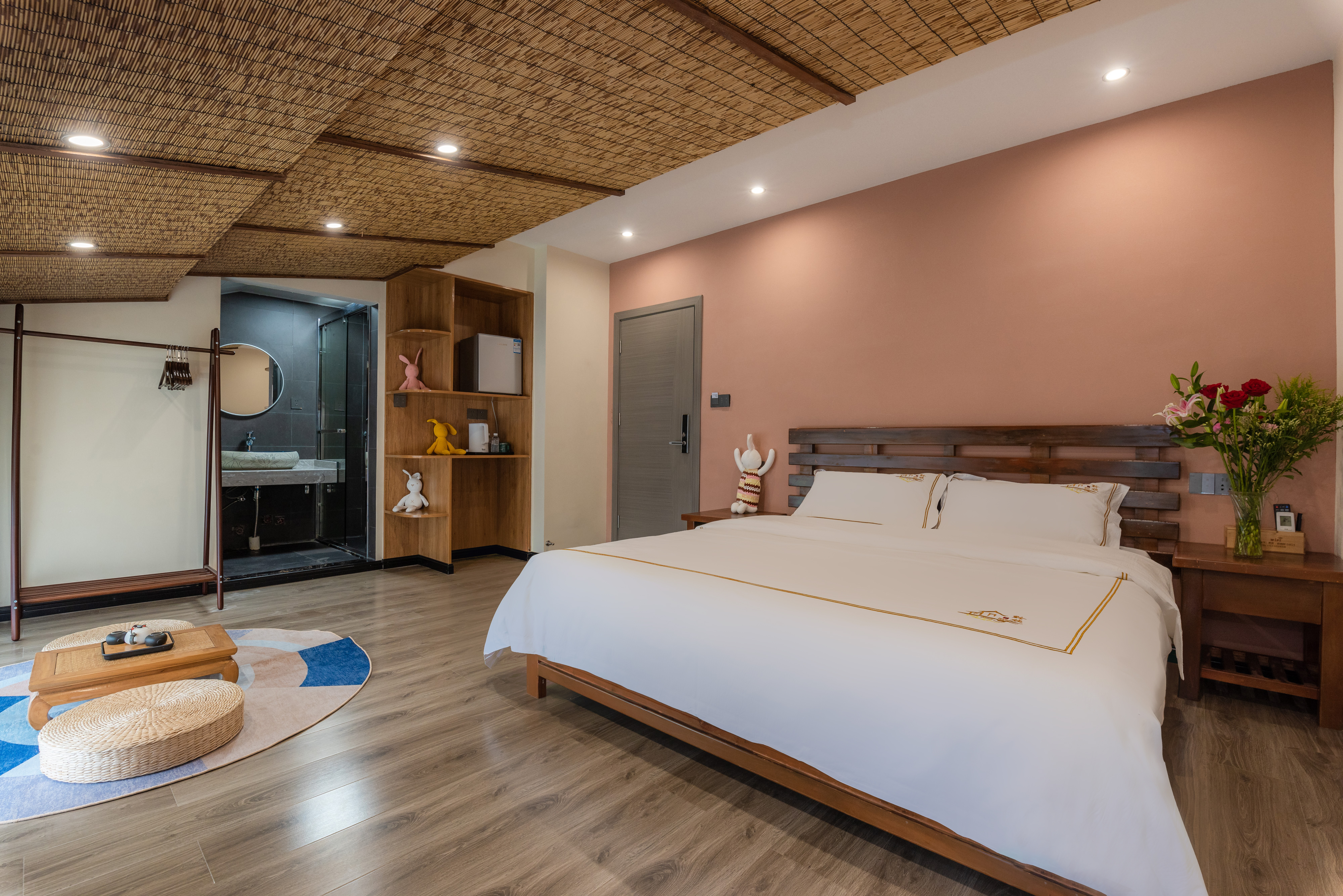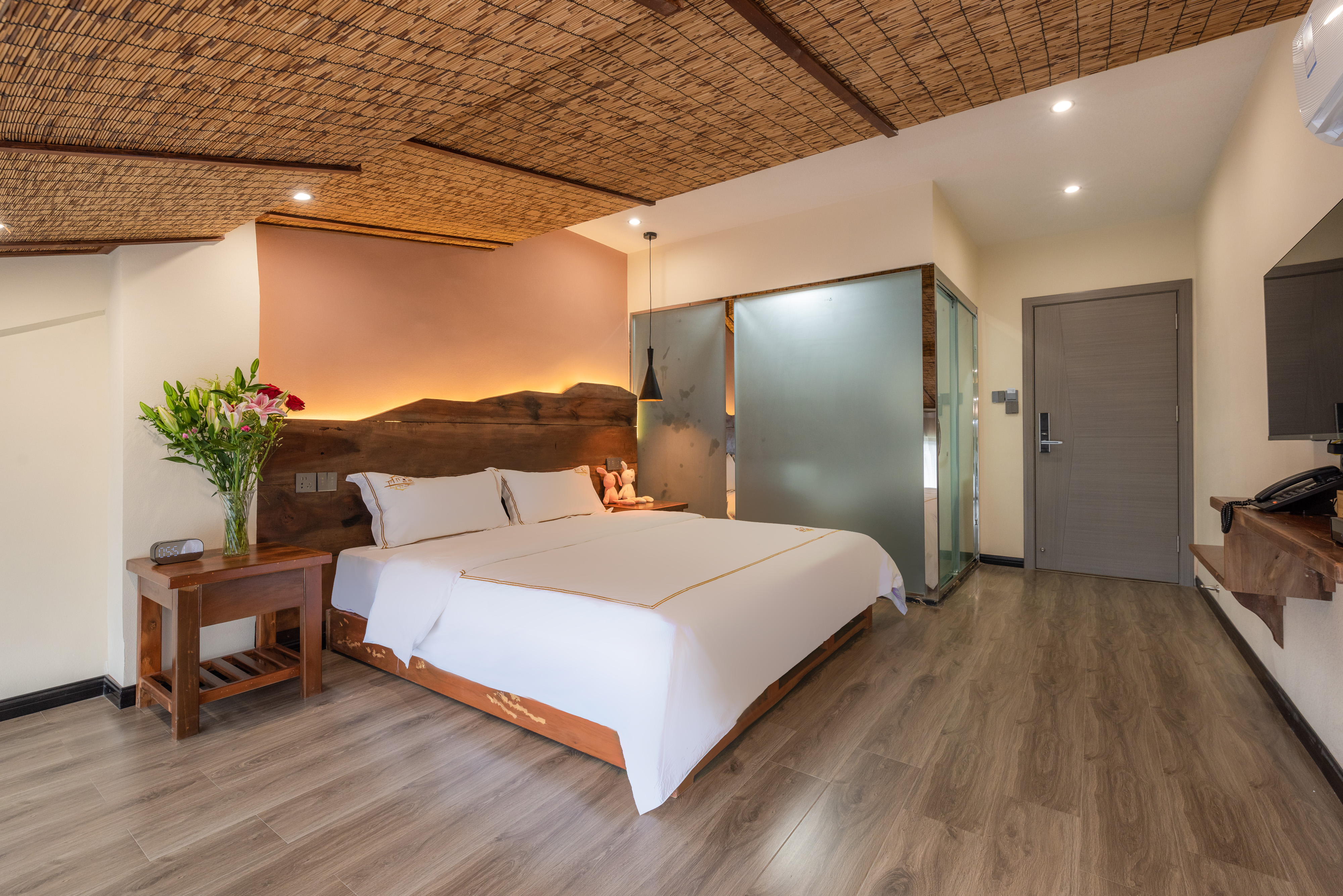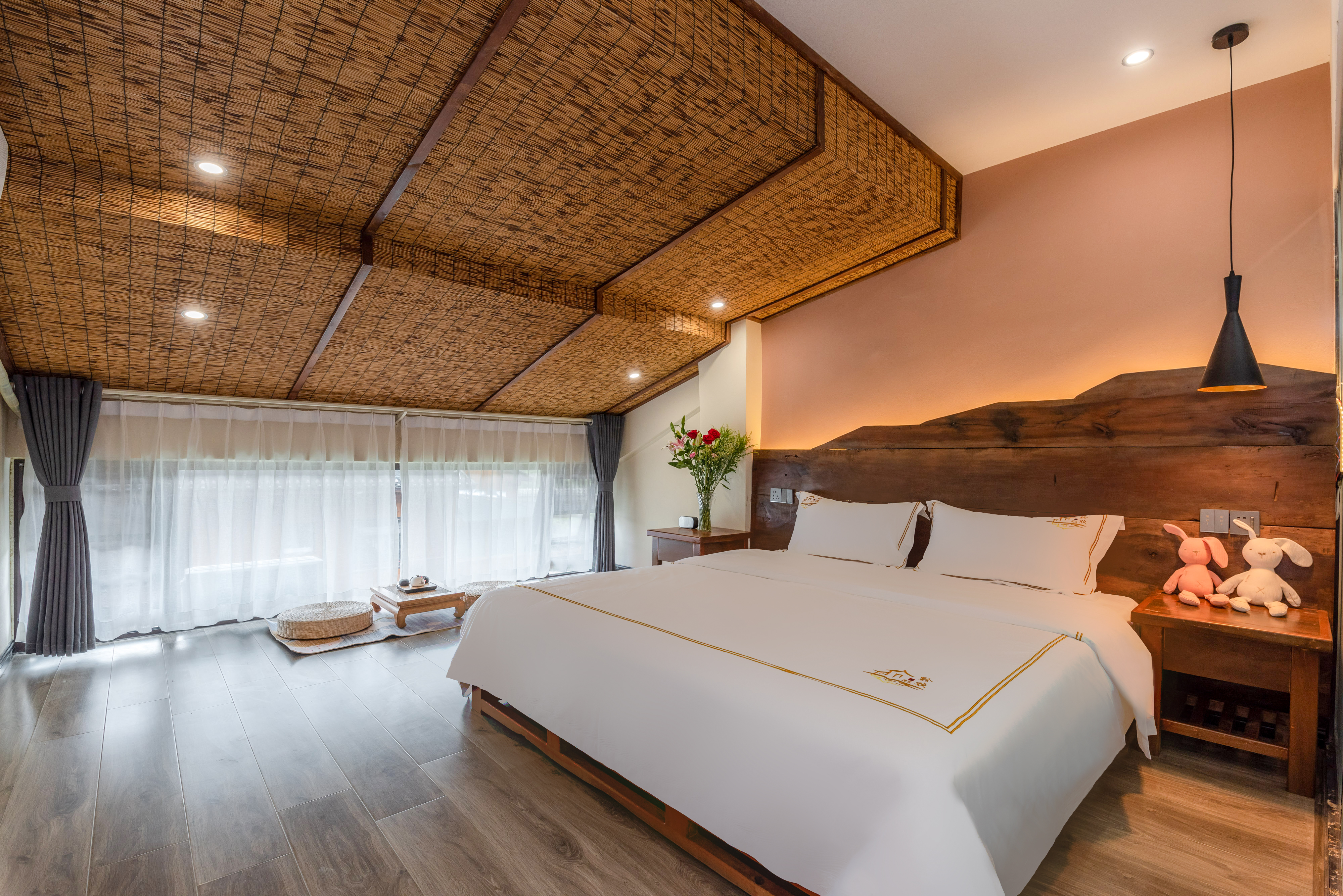 Light Luxury Sunshine Double Bed Room With Smart Toilet And Latex Mattress