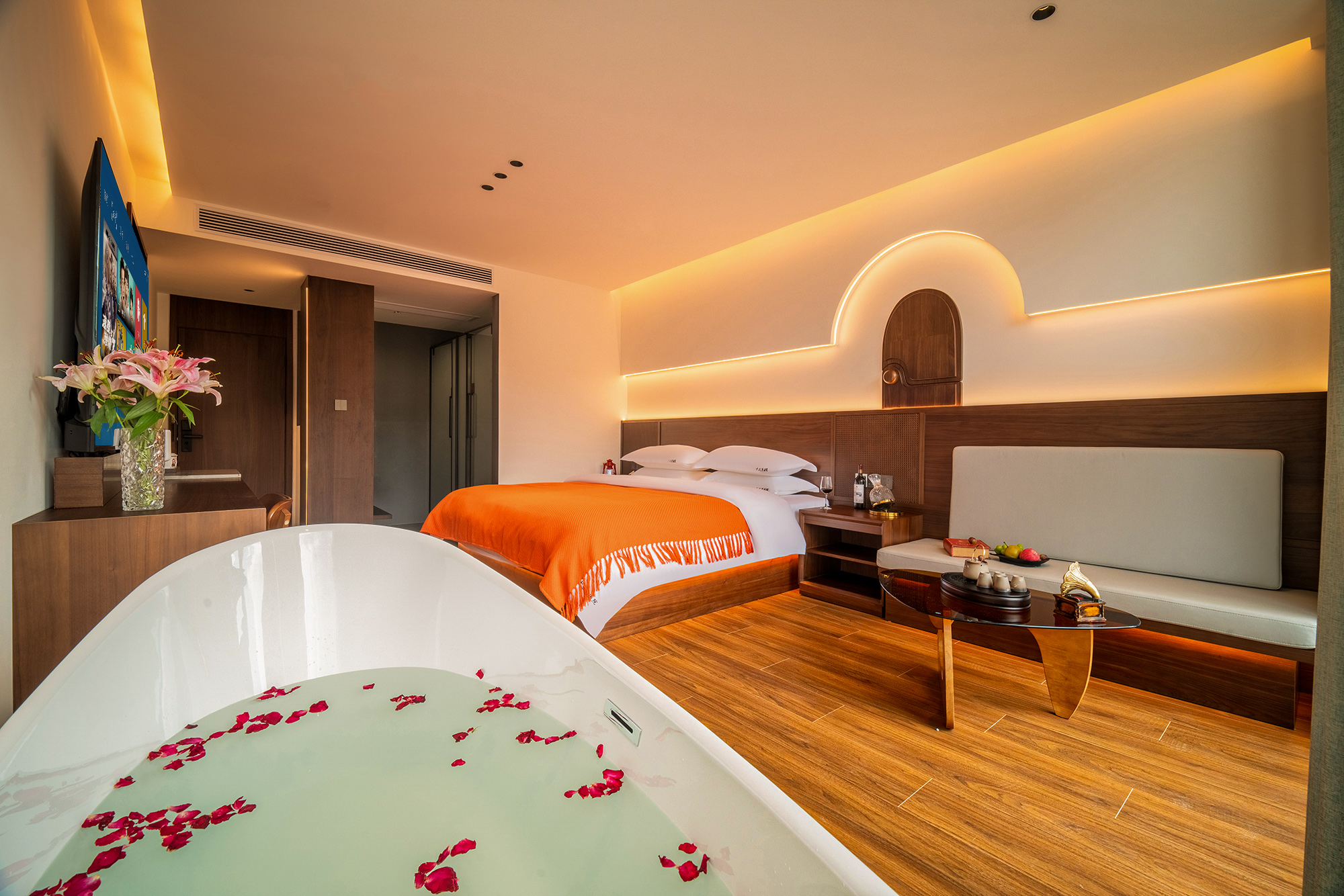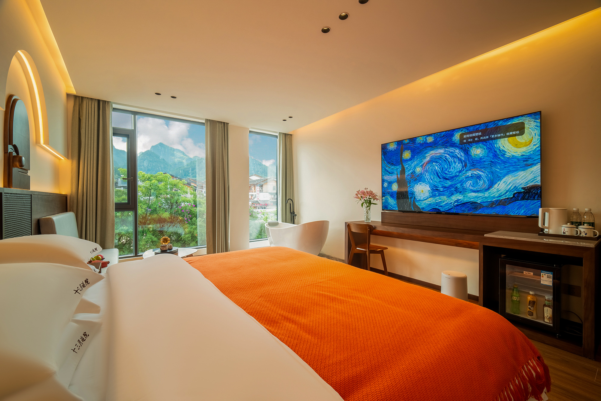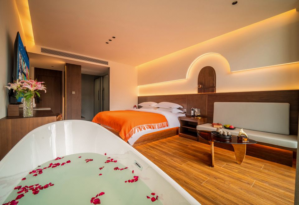 雨闲·浴缸大床房丨小度智能+冰箱+80寸液晶电视