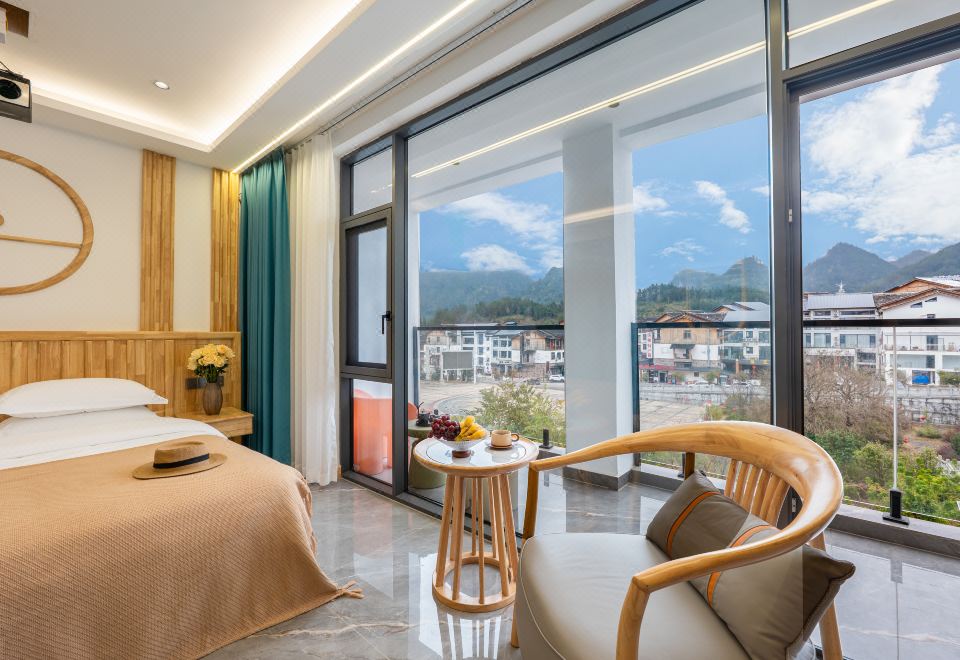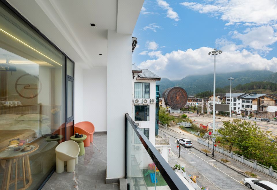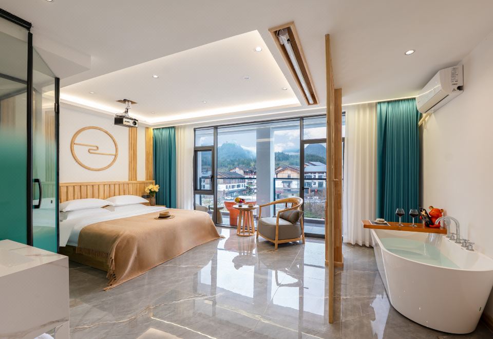 悦山.浪漫阳台山景大床房(智能系列.浴缸投影乳胶床垫)