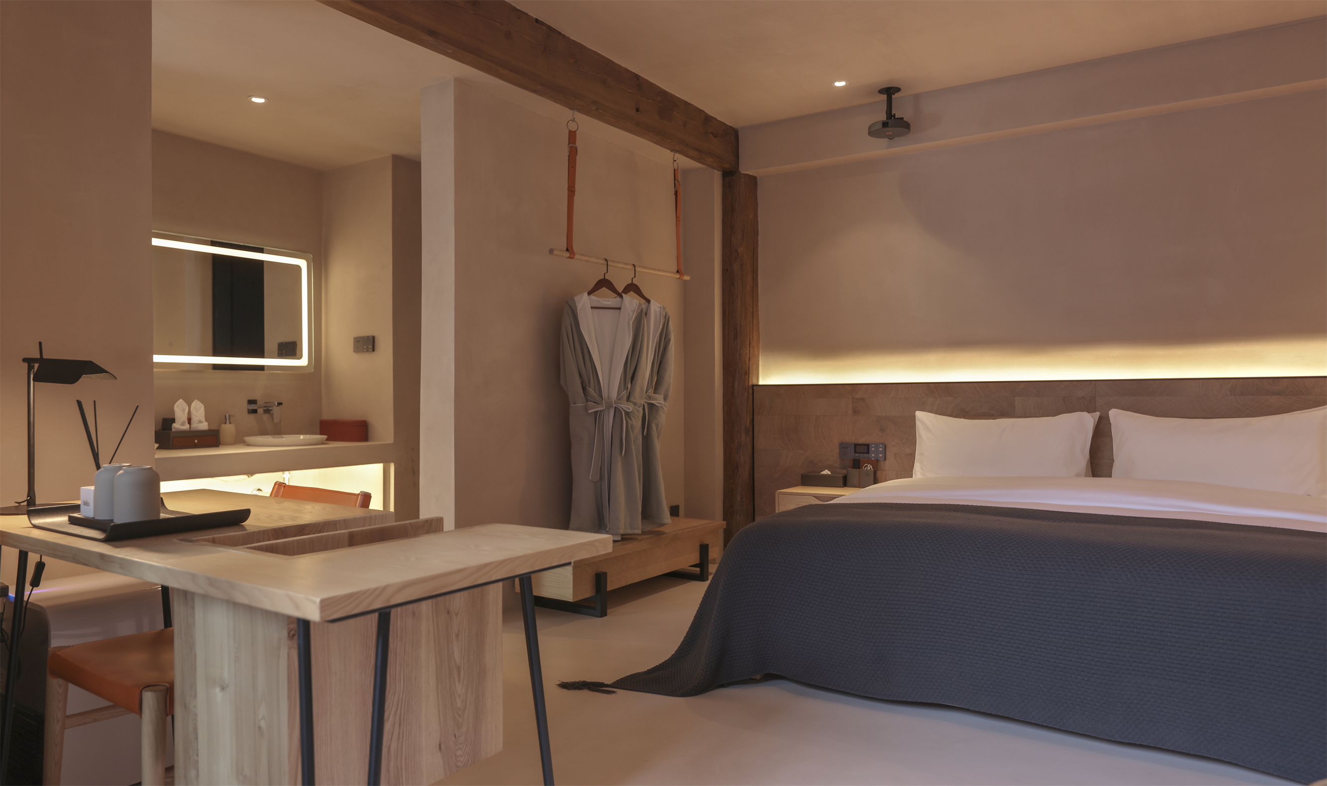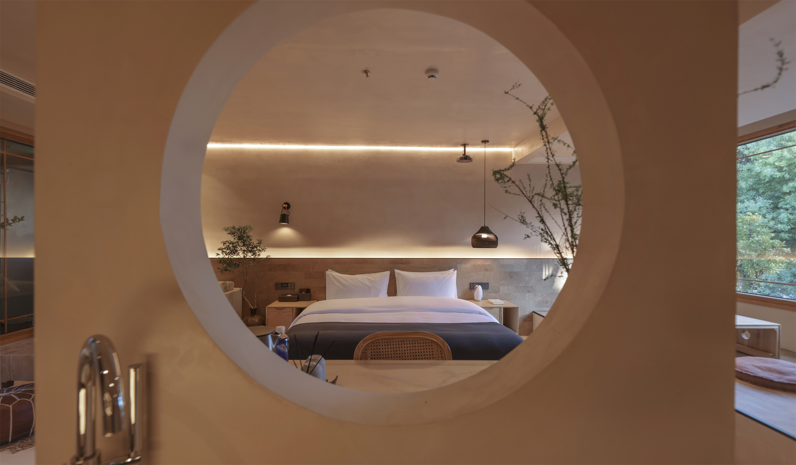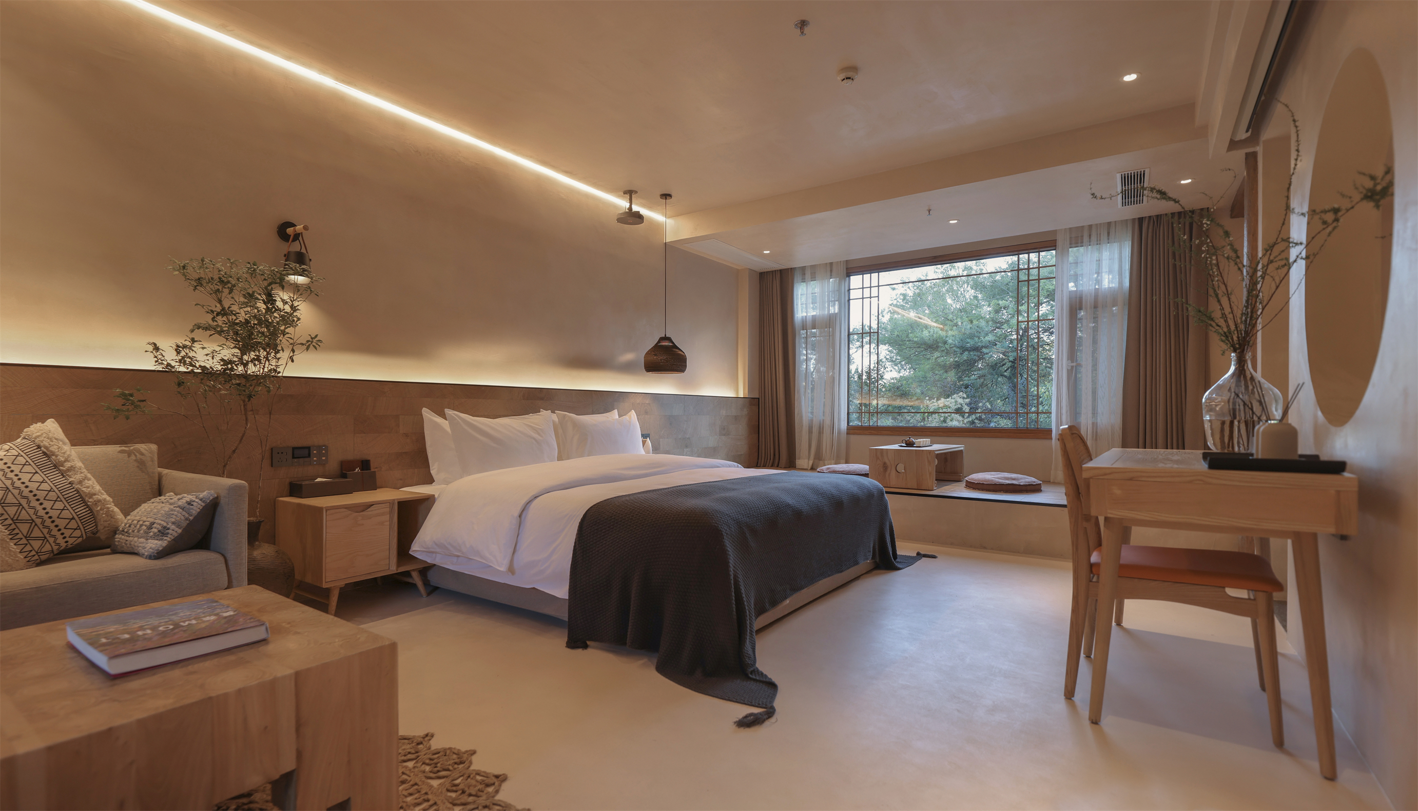 Autumn Clarity Wilderness | Smart Light Luxury Double Bed Room With Forest And Spring Ambiance
