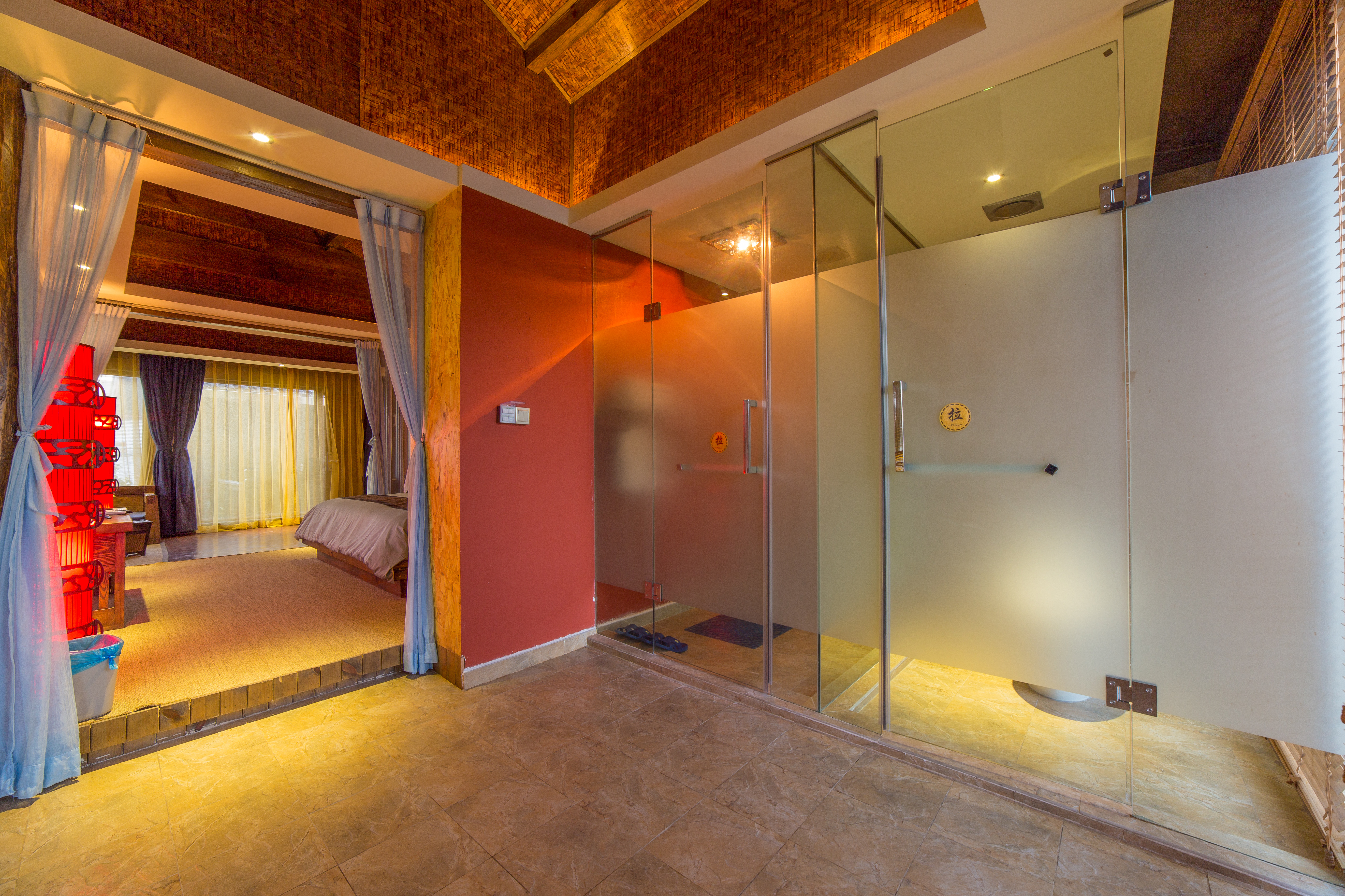Purple atrium. Raydream big bed room