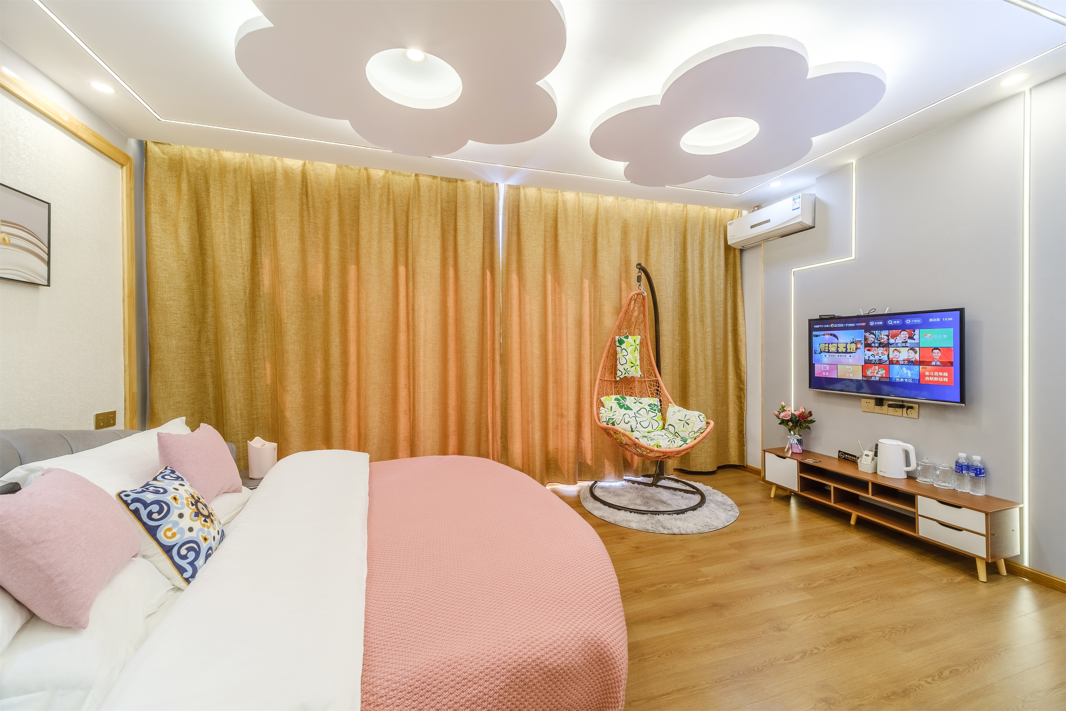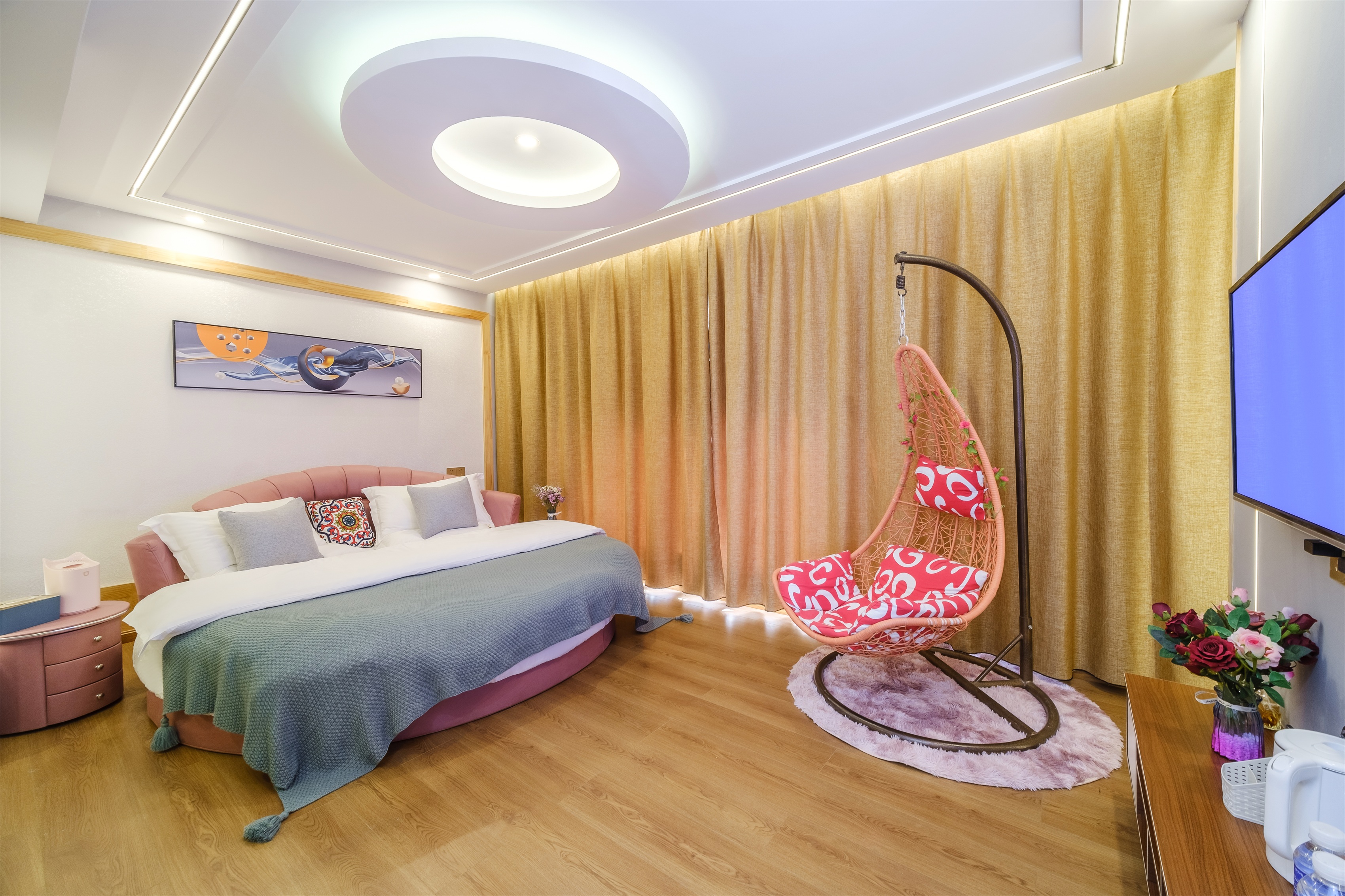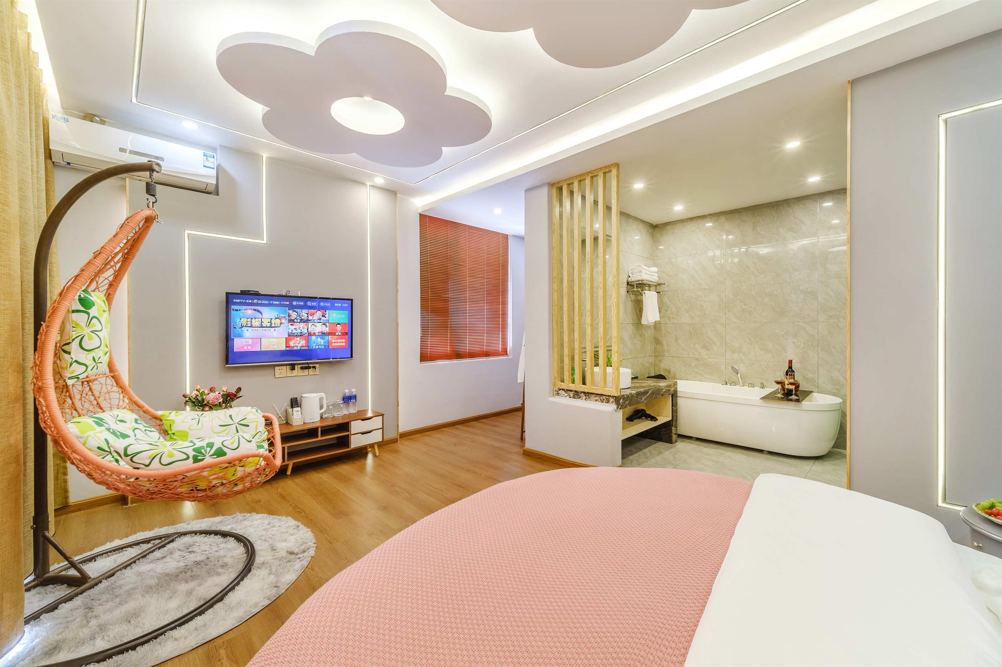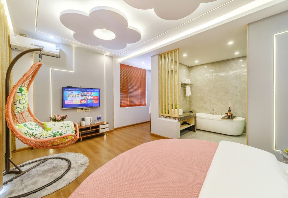 初塵.城景蜜月浴缸大床房.弔籃[水暖毯+品牌床墊床品]