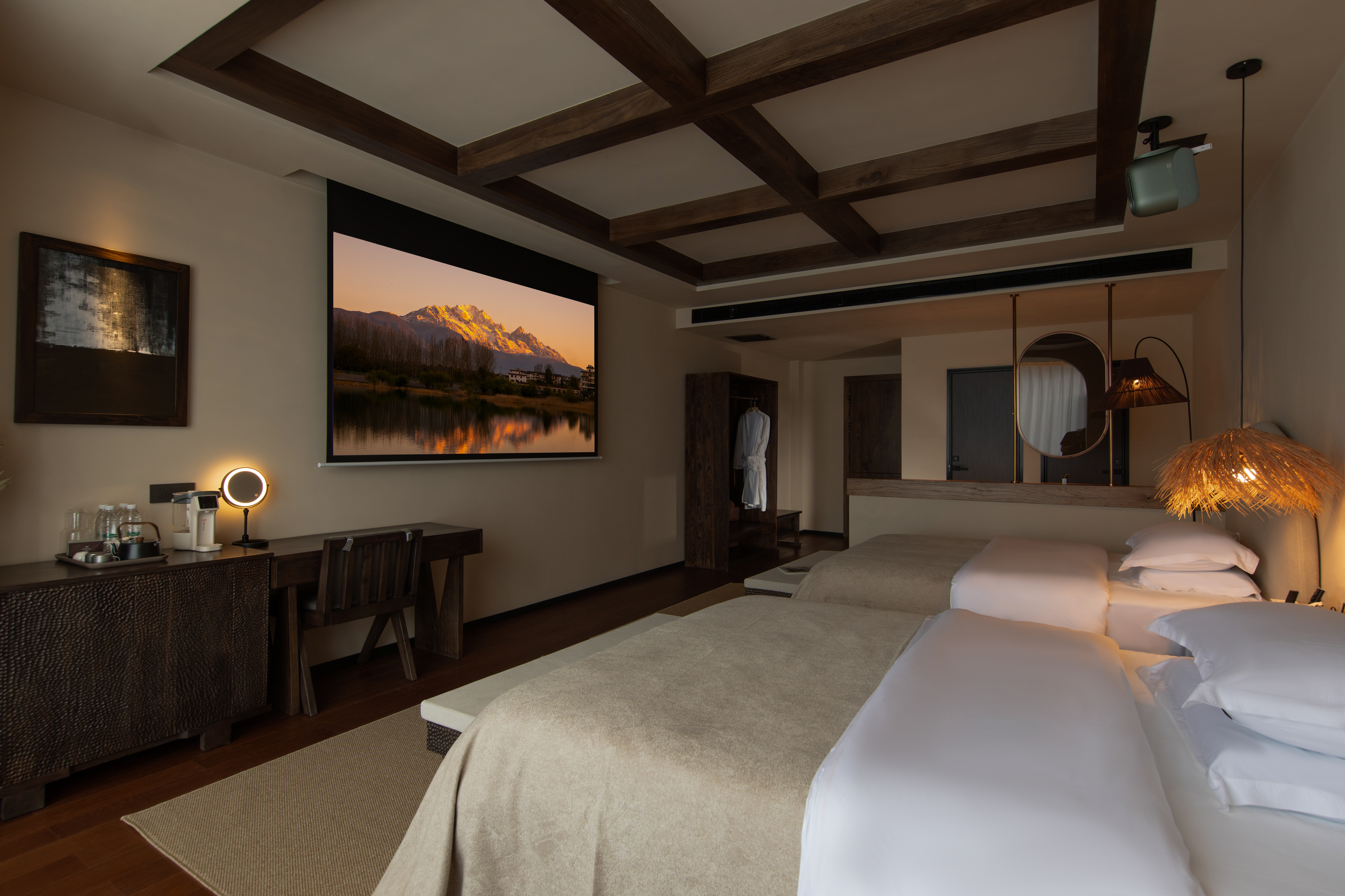 凝云霞·180°雪山景观双床房︱百寸投影+助眠音箱+地暖