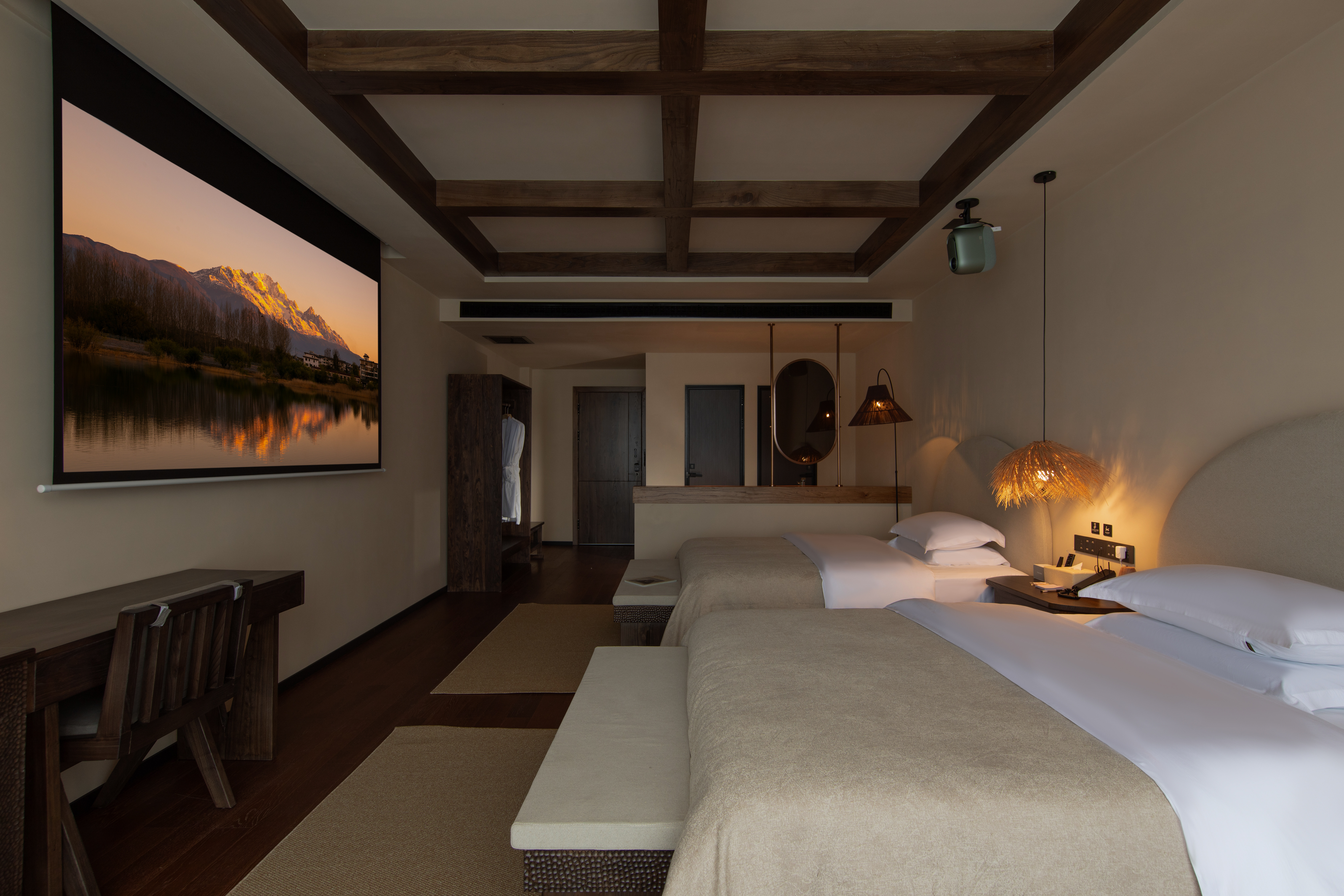 凝云霞·180°雪山景观双床房︱百寸投影+助眠音箱+地暖