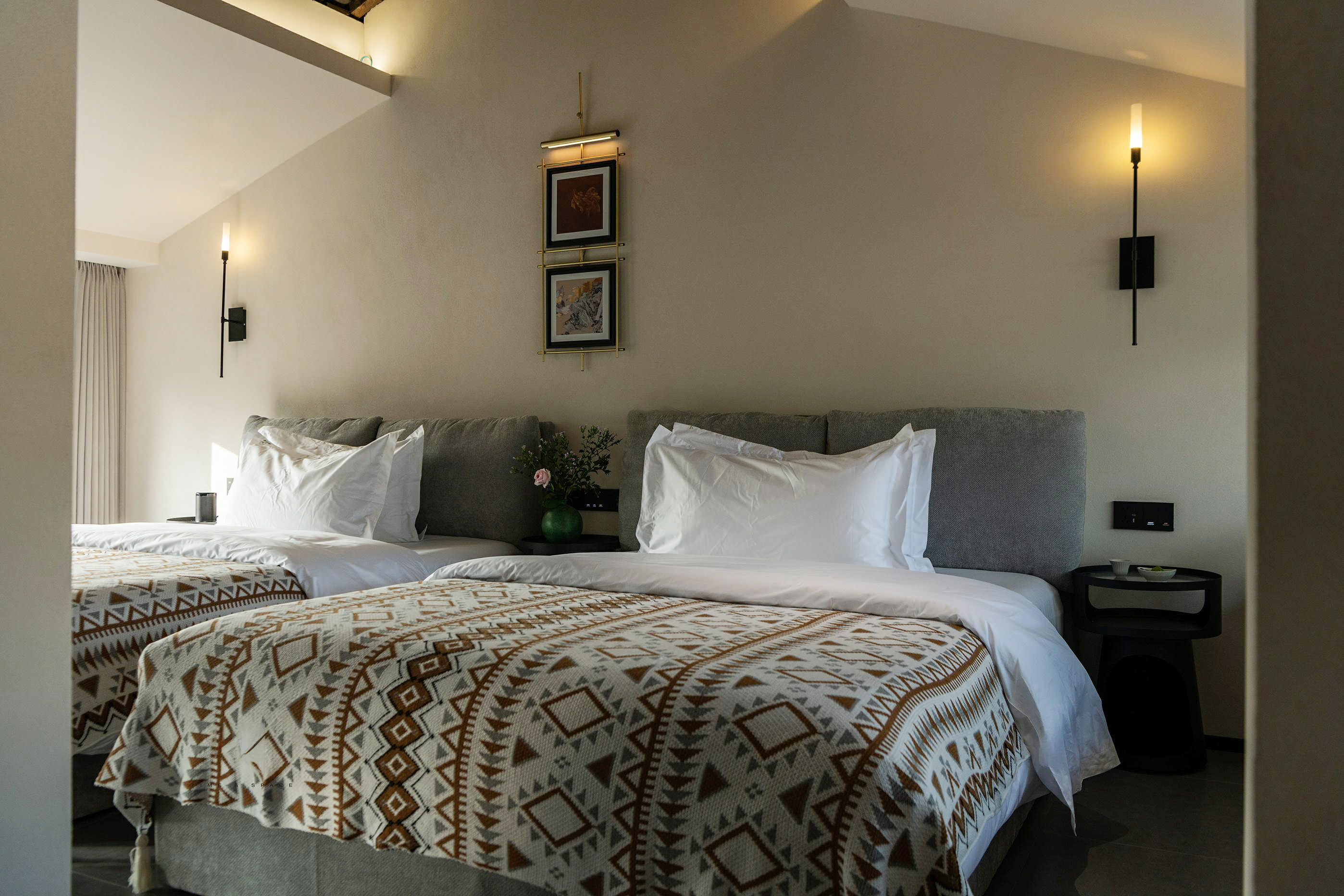 四合院家庭双大床房丨庭院花园+智能客控+沙发区+空调