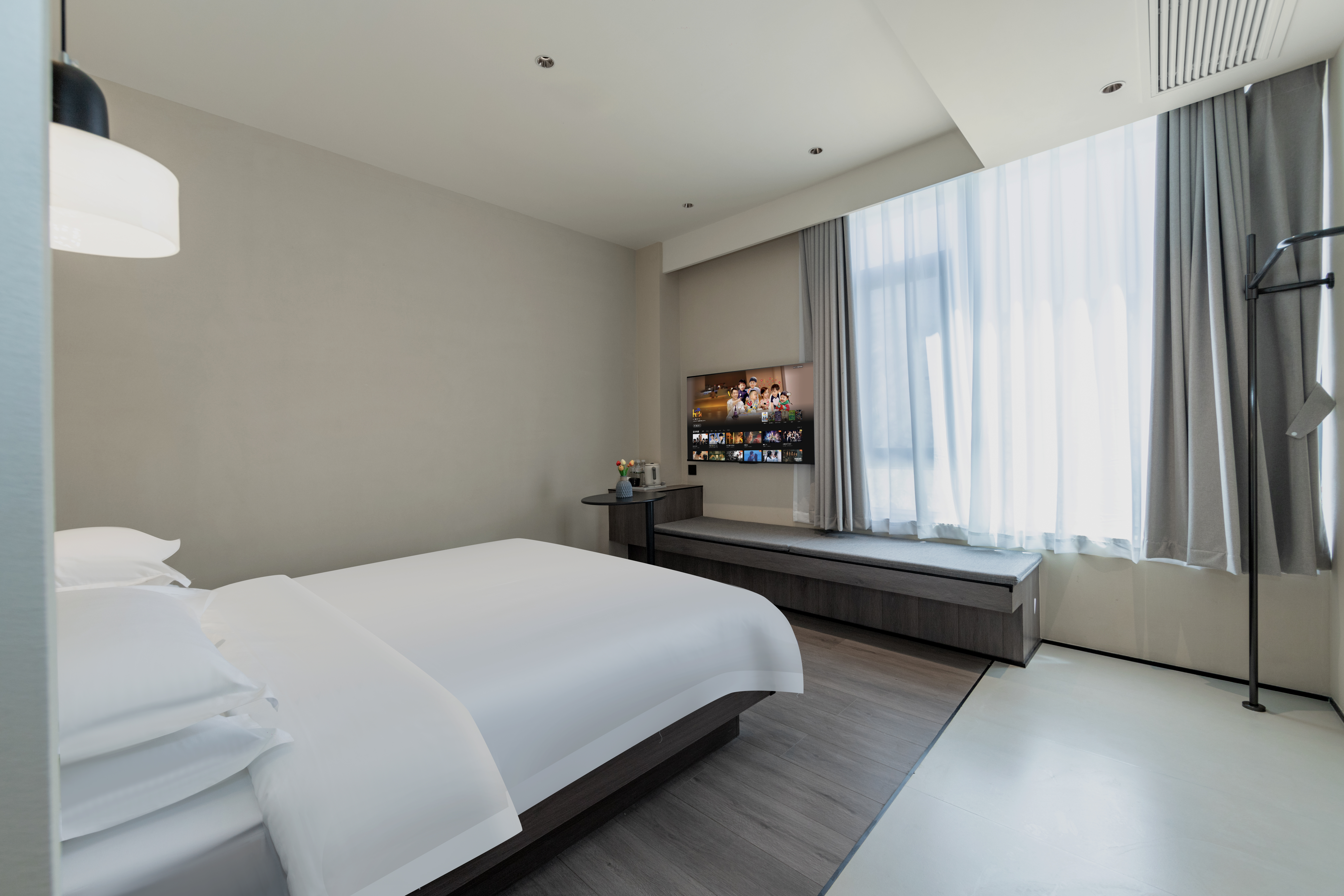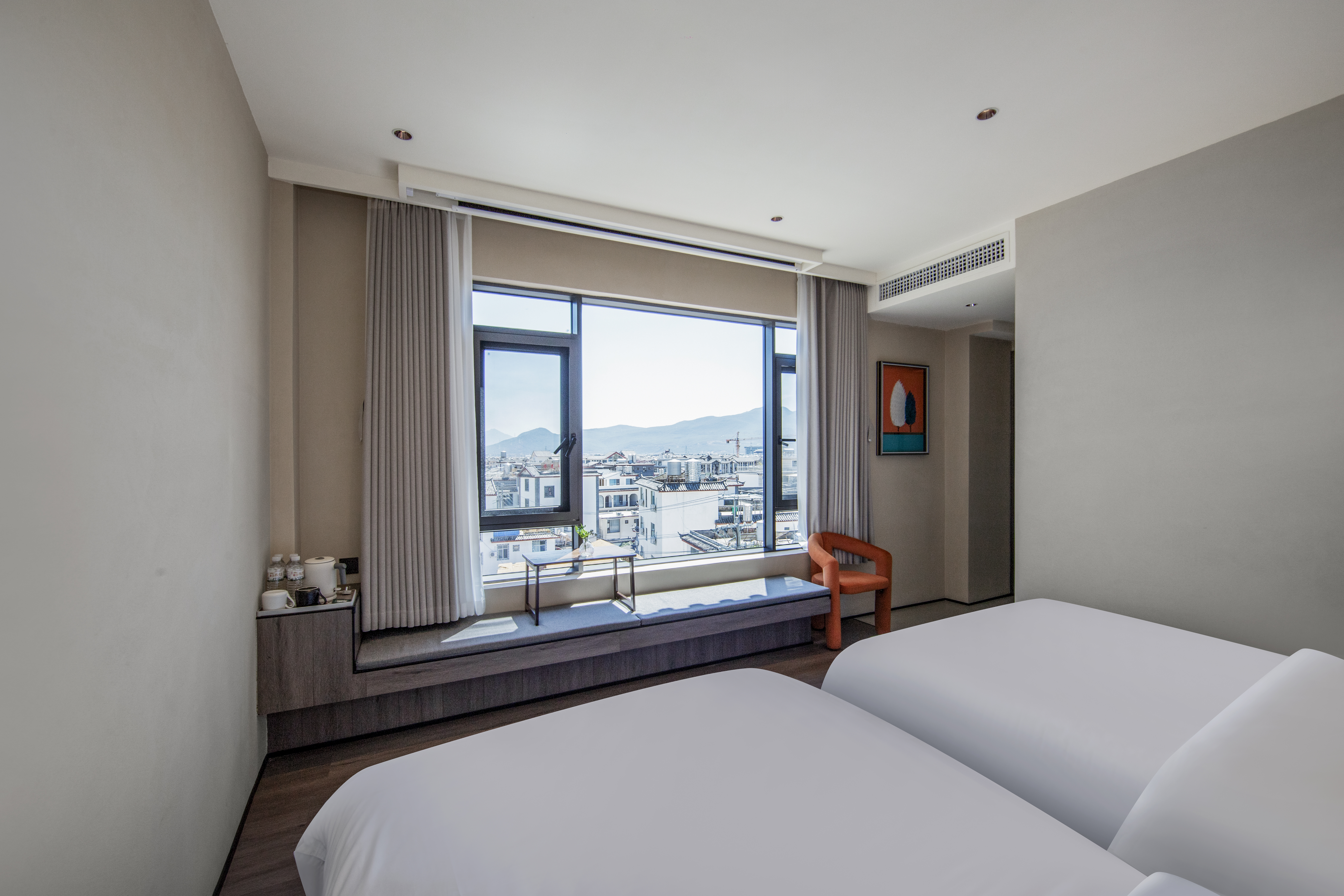 知秋·影音丨鲲鹏双床房丨中央空调+高定床品+百寸投影