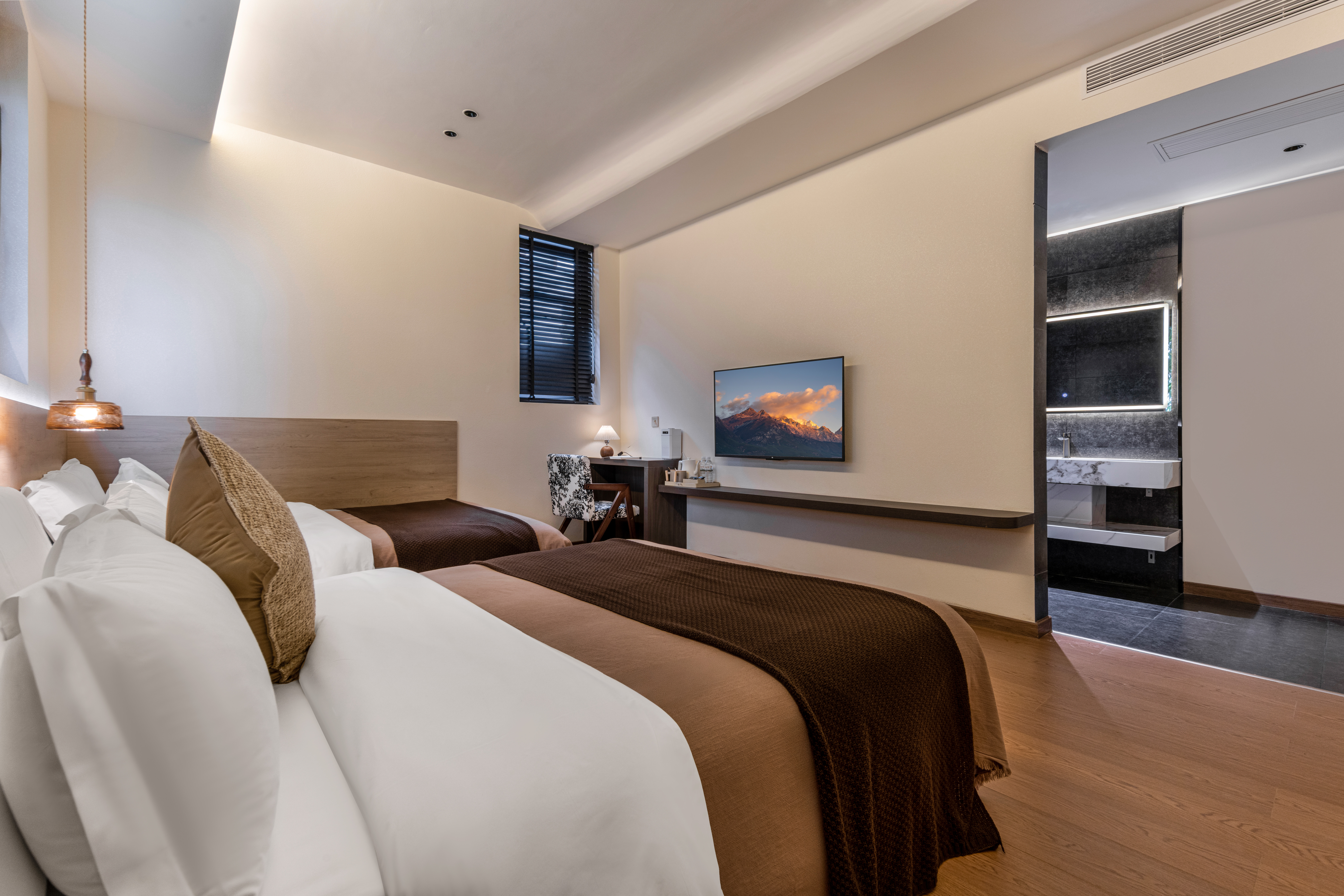 浣溪听竹双床房|空气净化器|慕斯床垫|智能马桶
