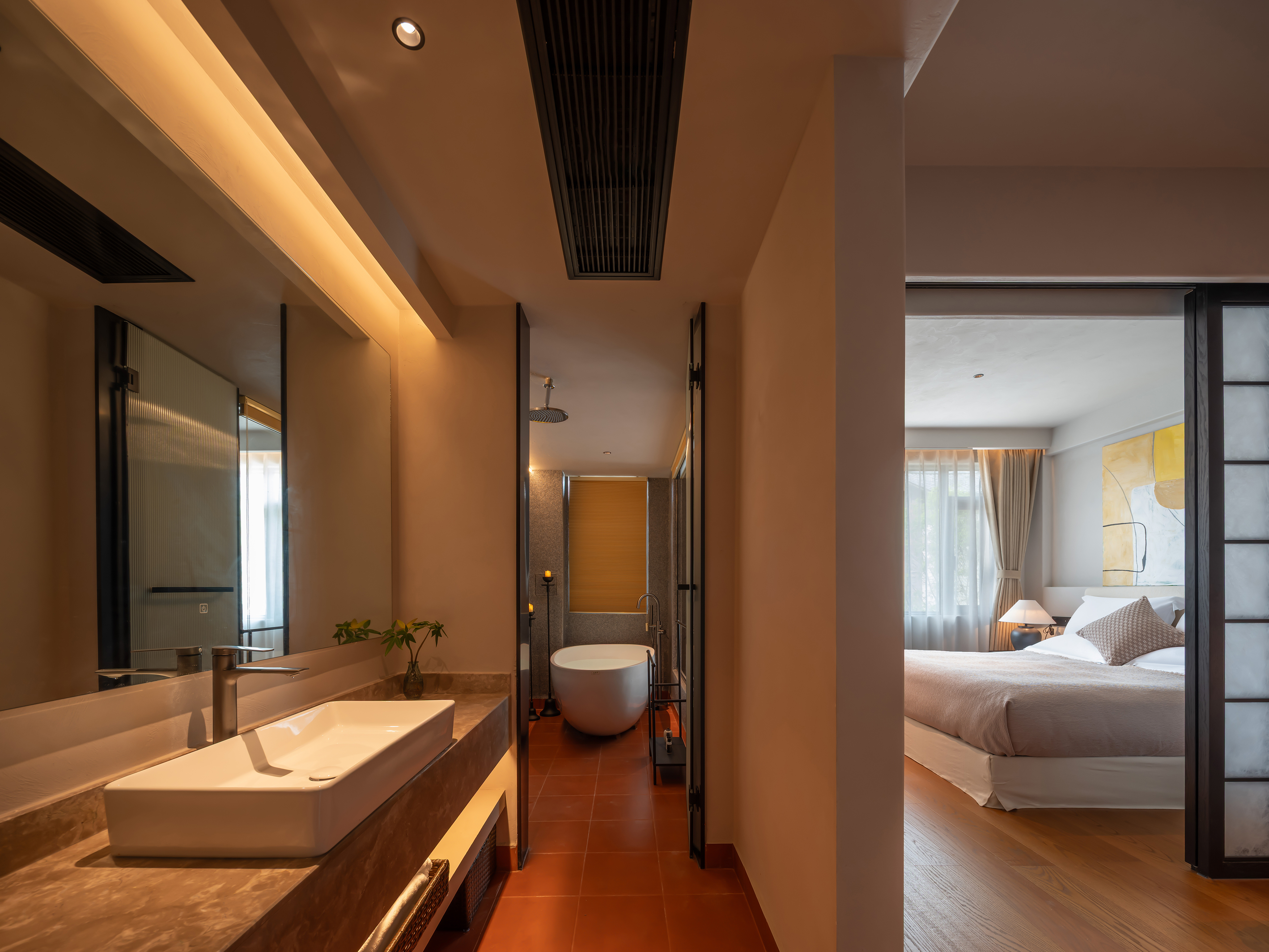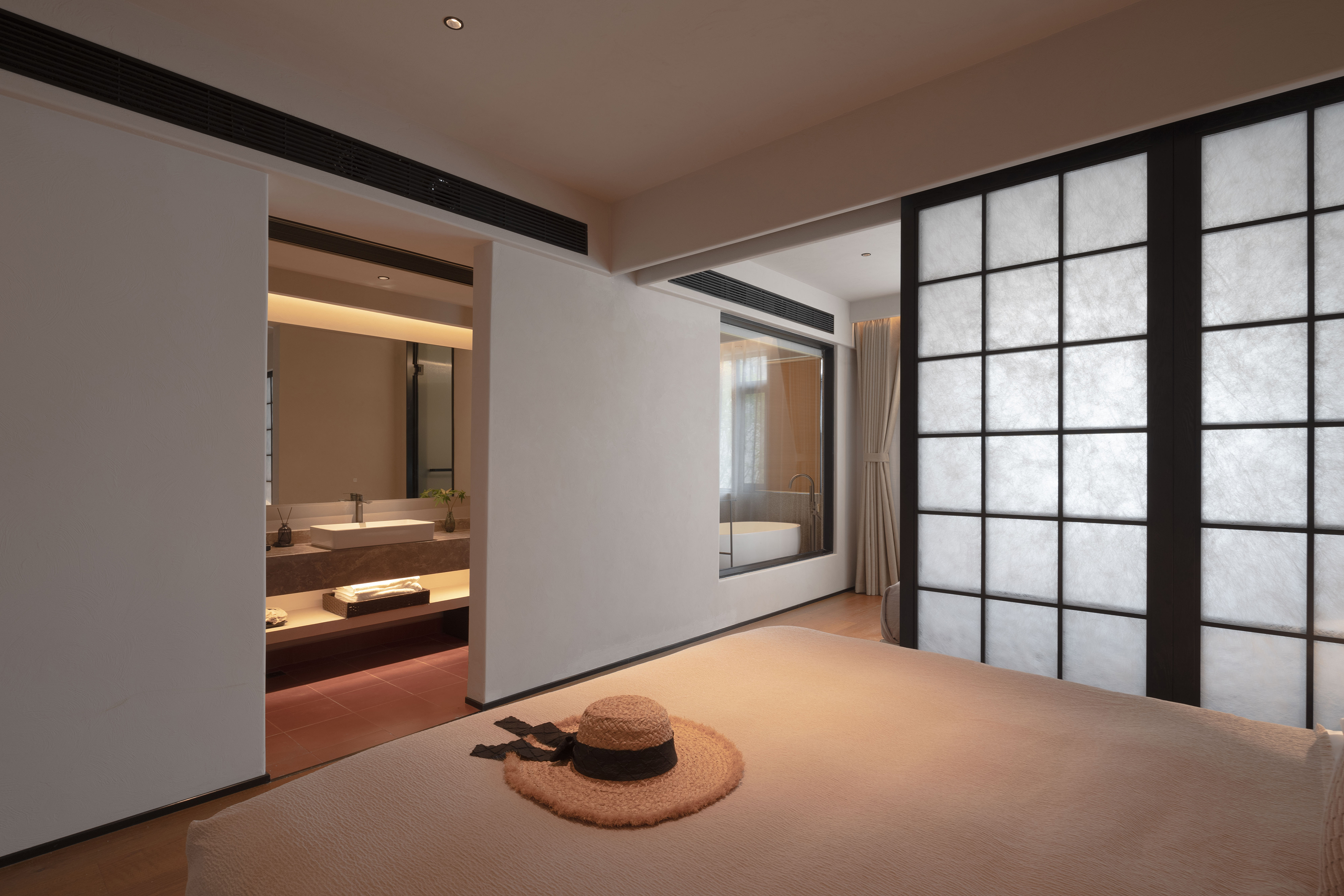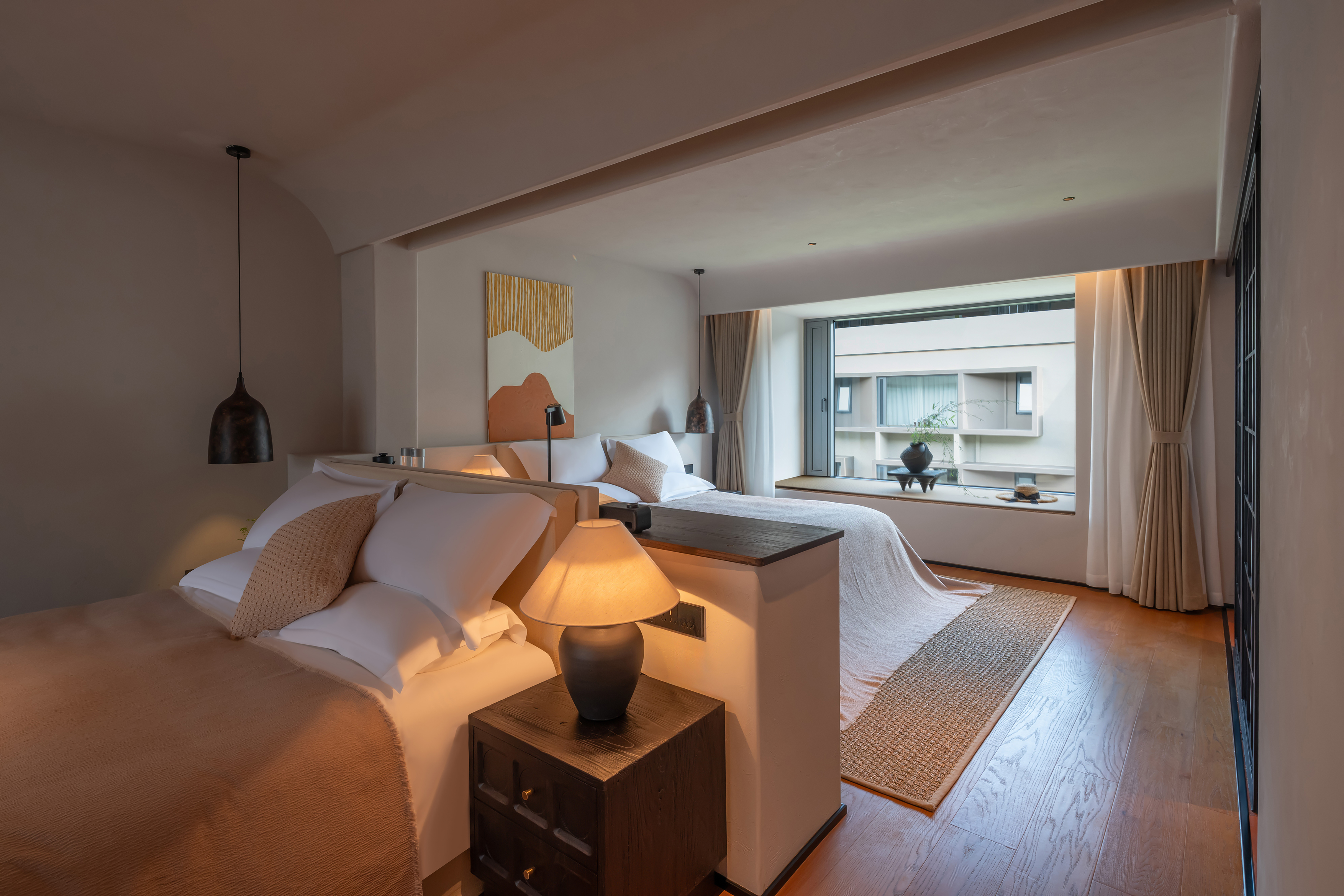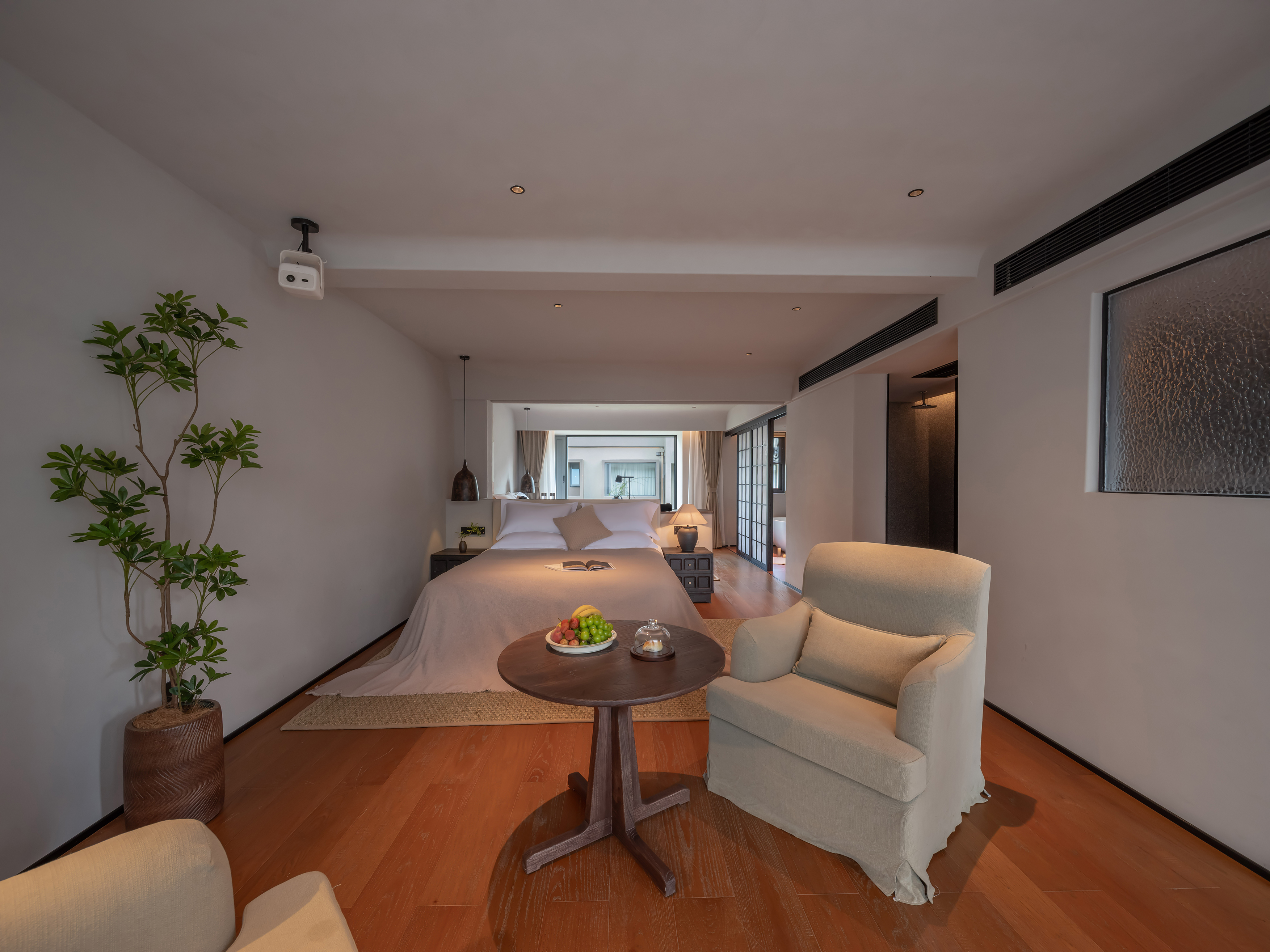 豪华双床套房-睡眠区域隔断|百寸投影|Hansgroh衞浴