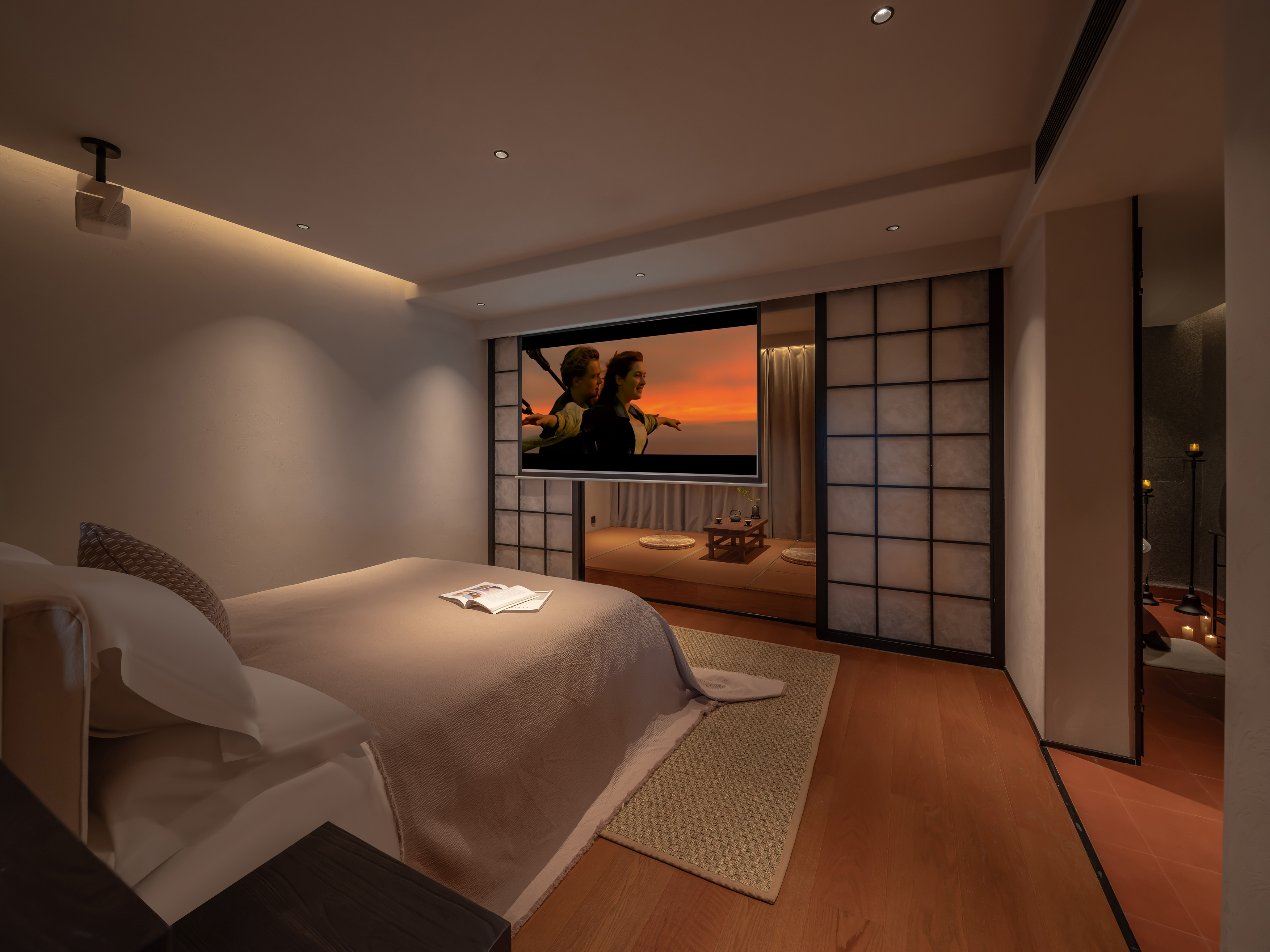高级大床房-榻榻米休息区|百寸投影|Hansgroh衞浴