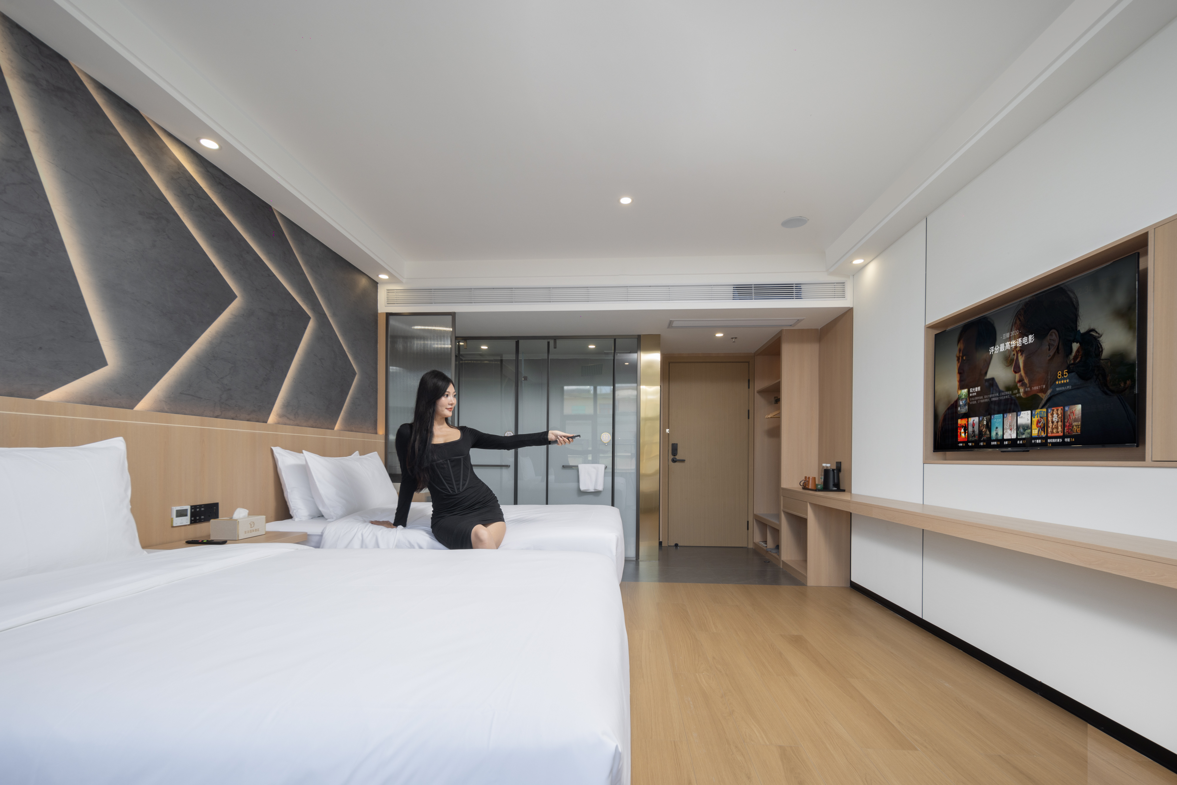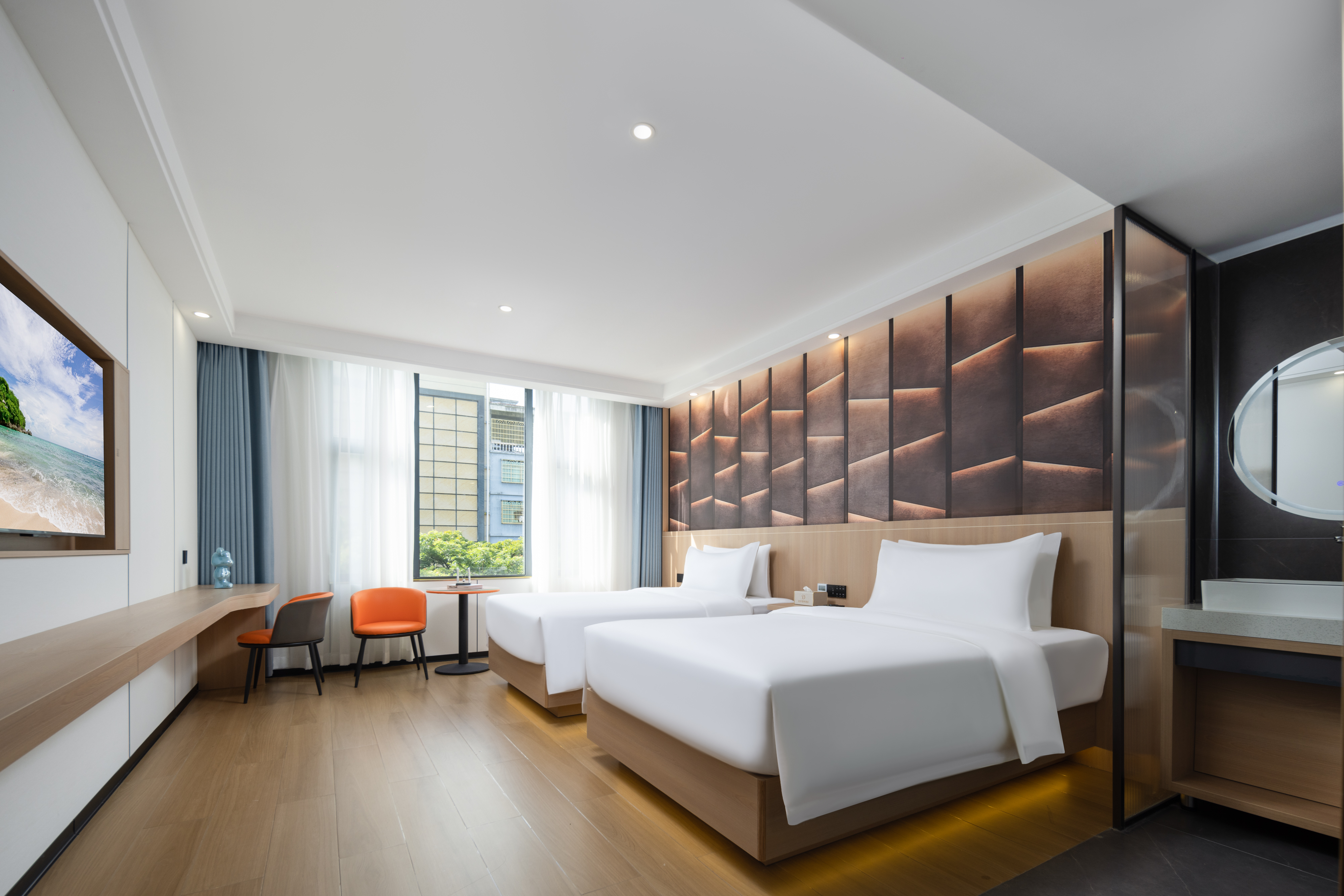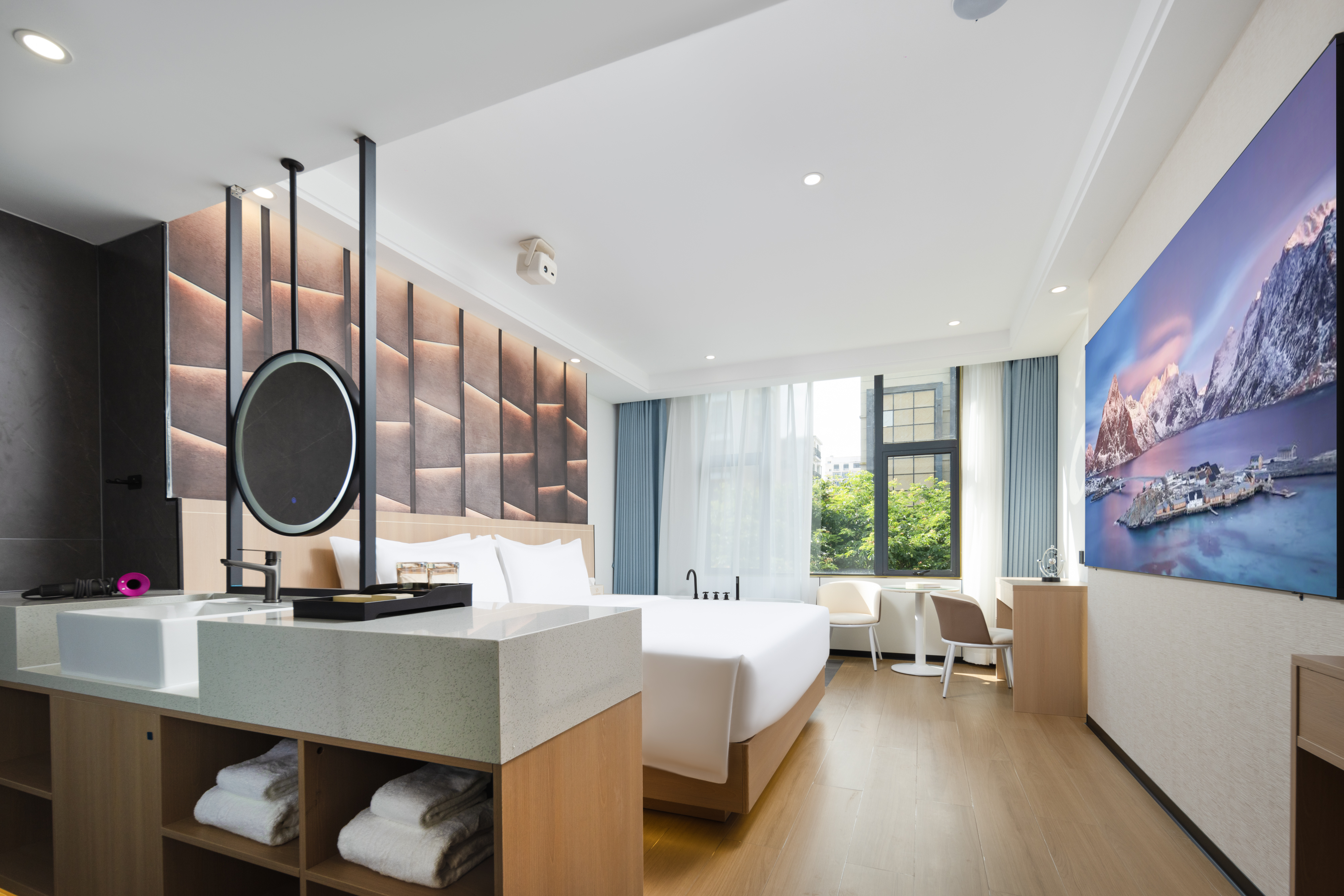 Fit Premium Street-View Double Bed Room[Smart-Oversized Screen-Immersive Audiovisual]