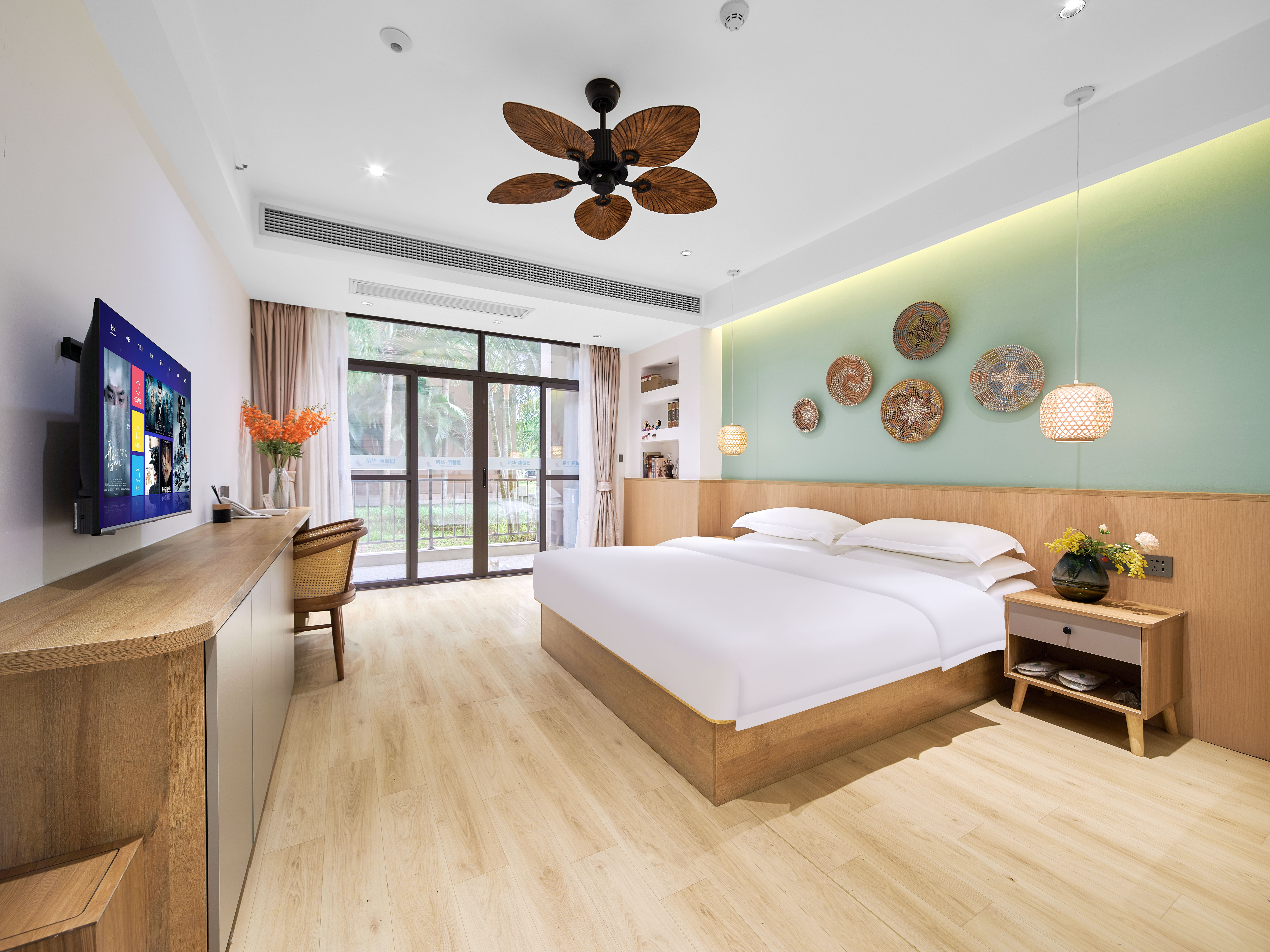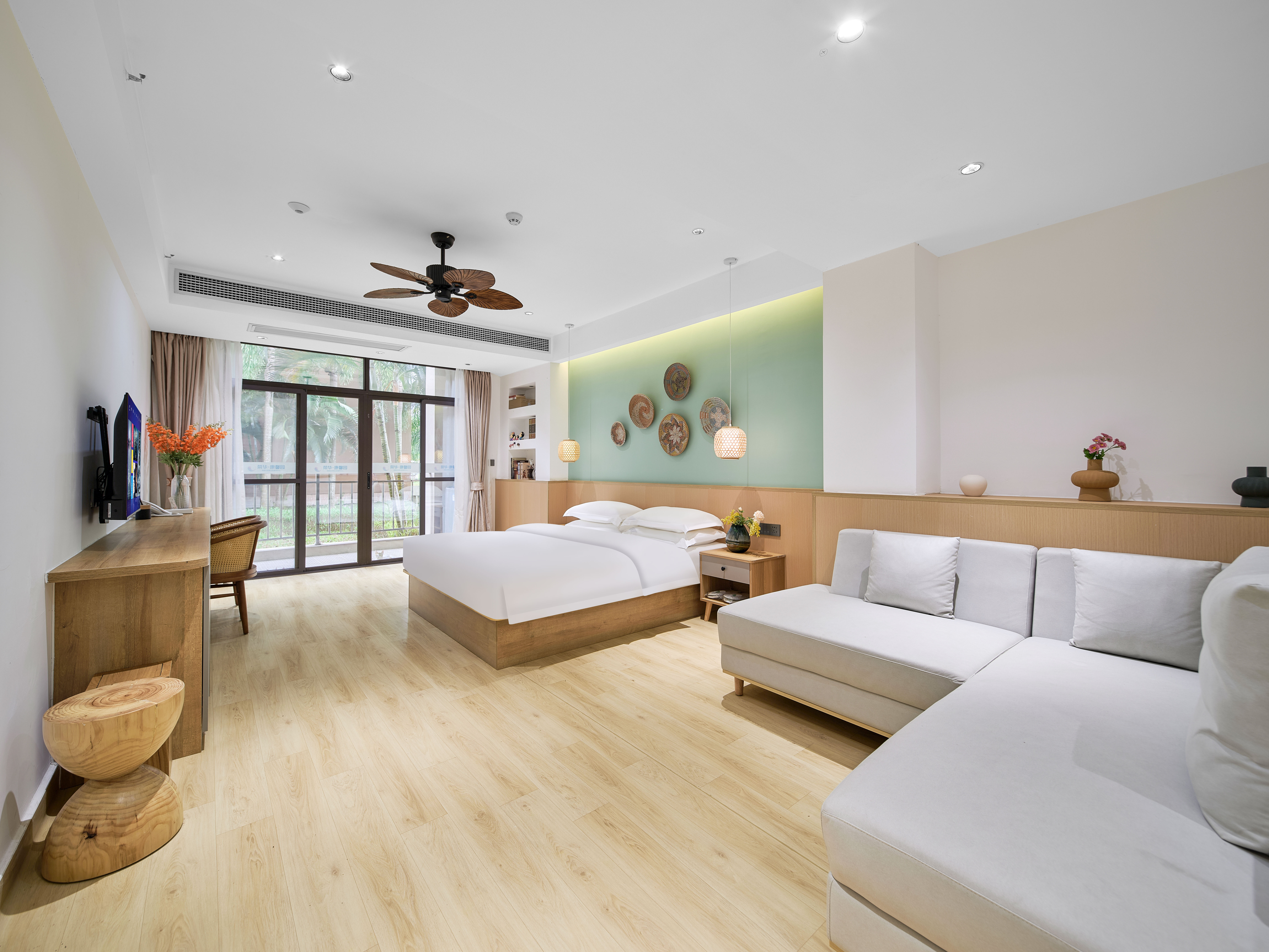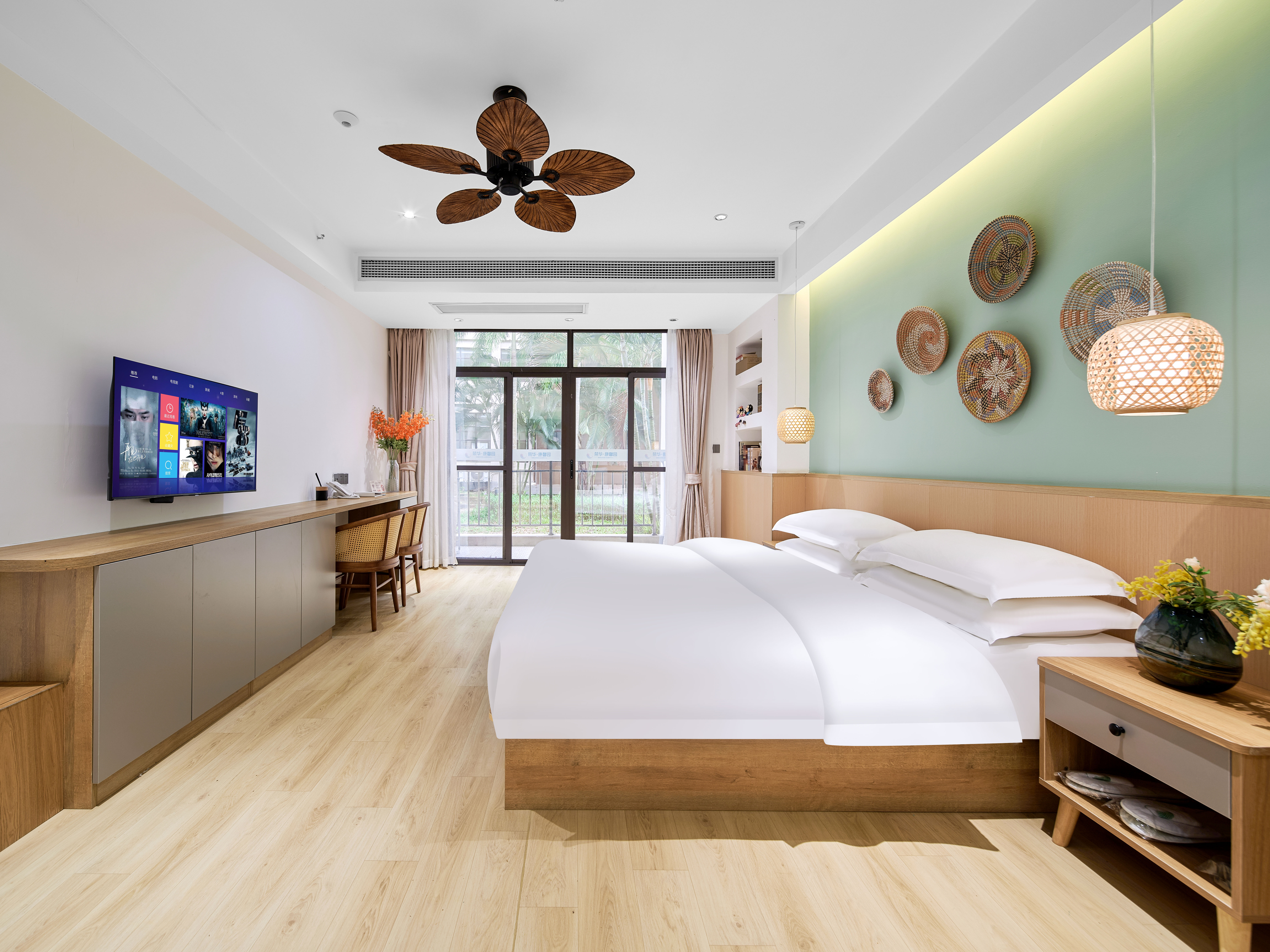 璞瀾·尊享大床房(陽台觀景+液晶電視+復古吊扇+小冰箱+洗衣機)