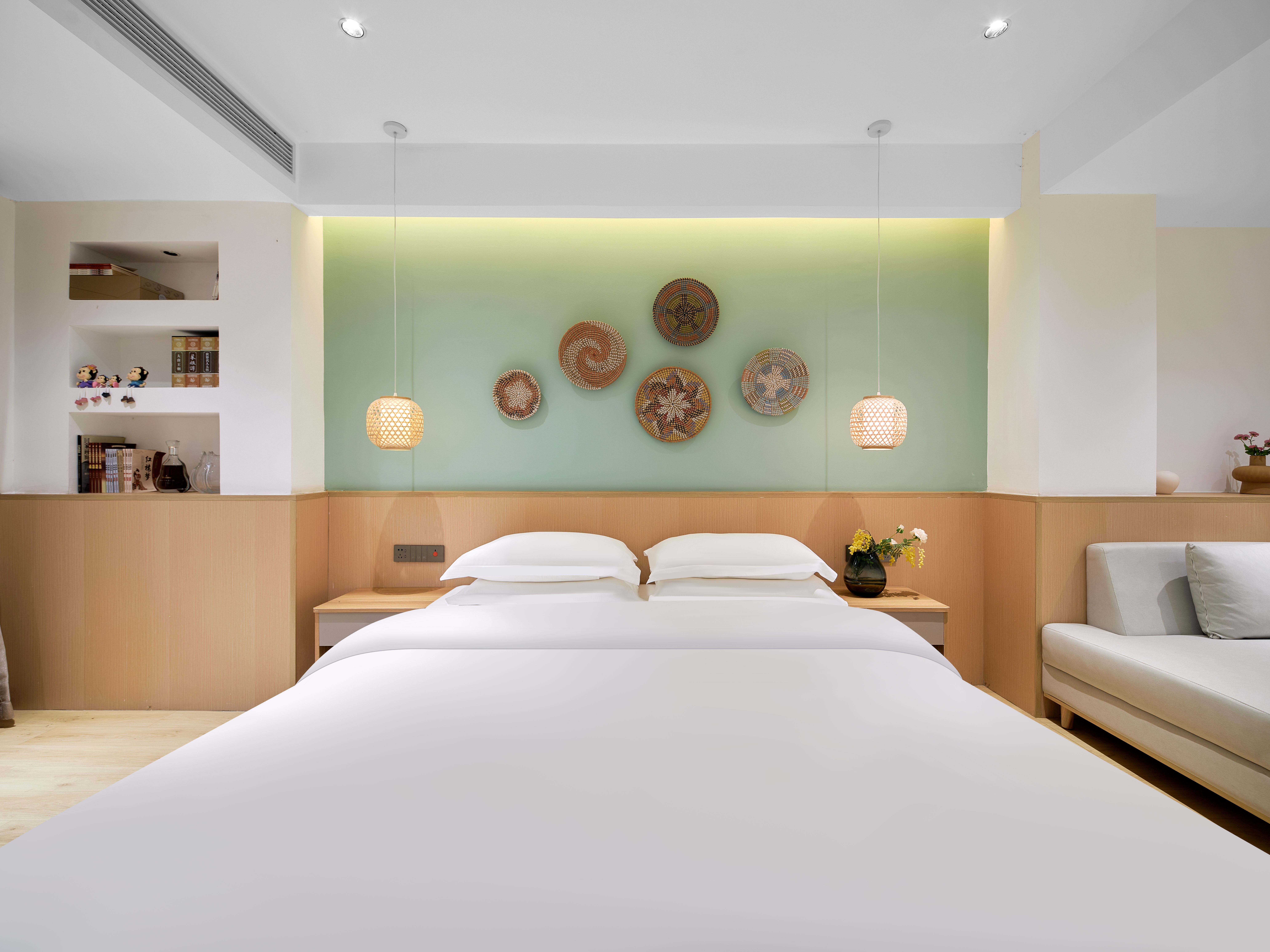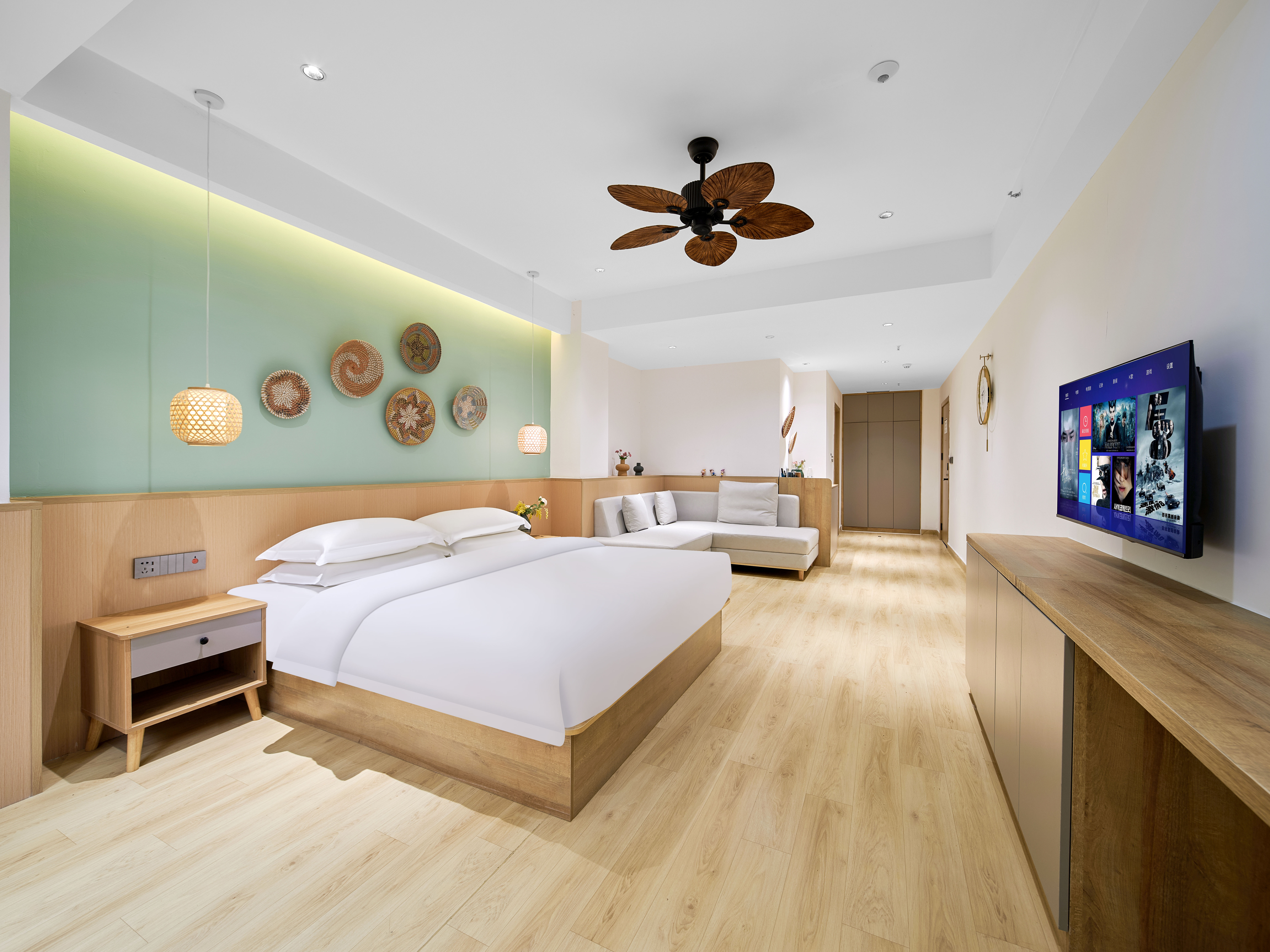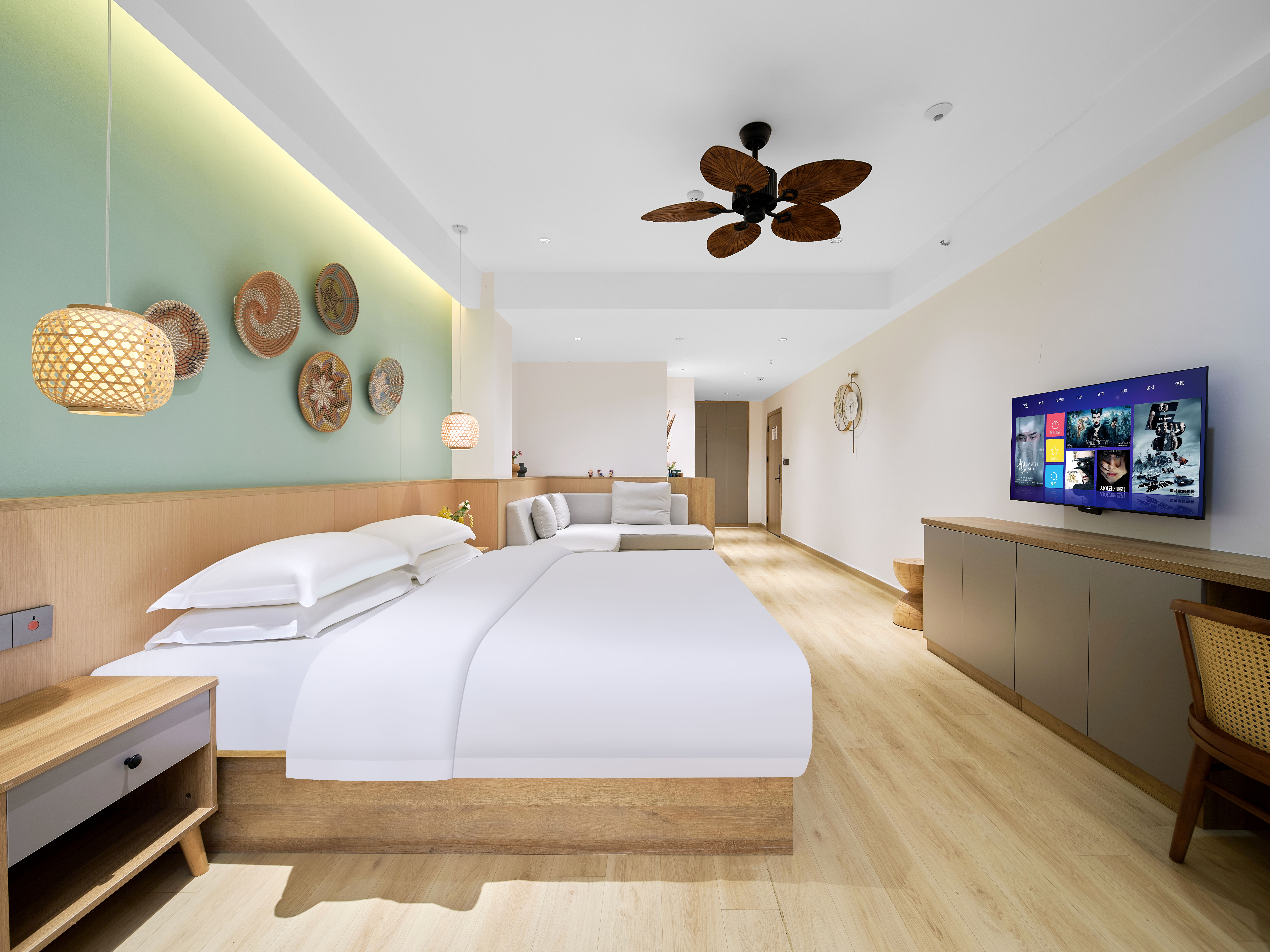 璞瀾·尊享大床房(陽台觀景+液晶電視+復古吊扇+小冰箱+洗衣機)