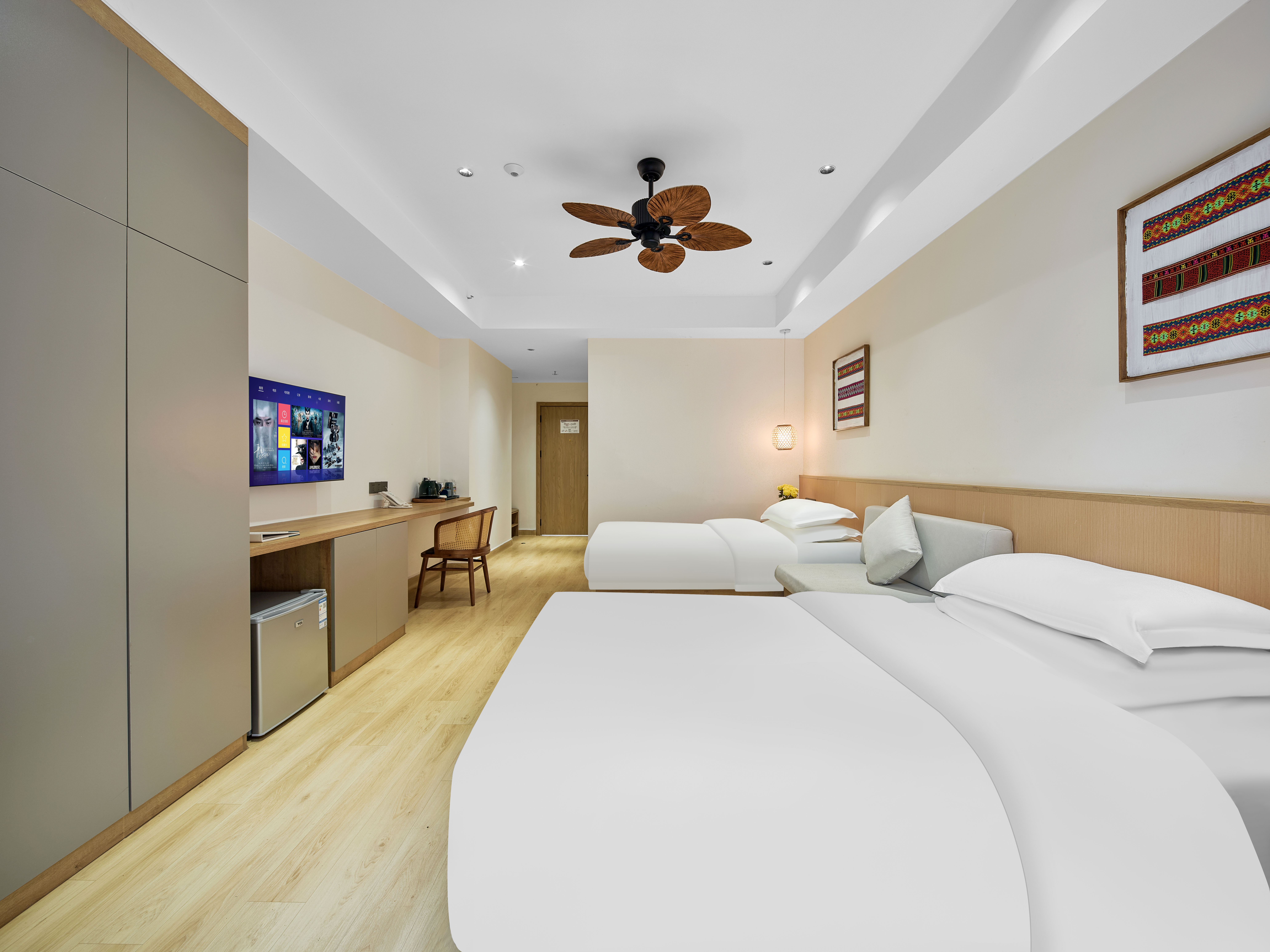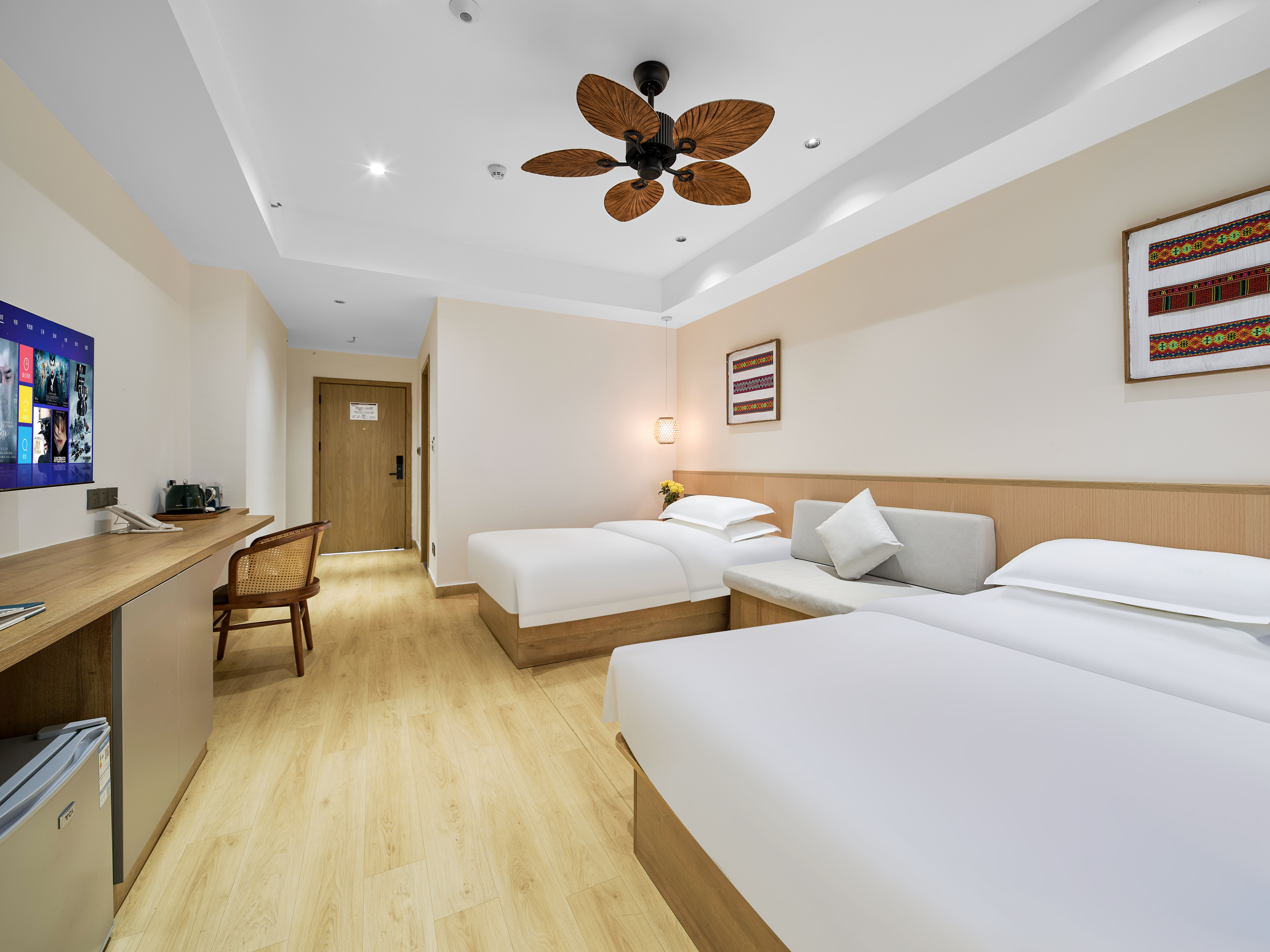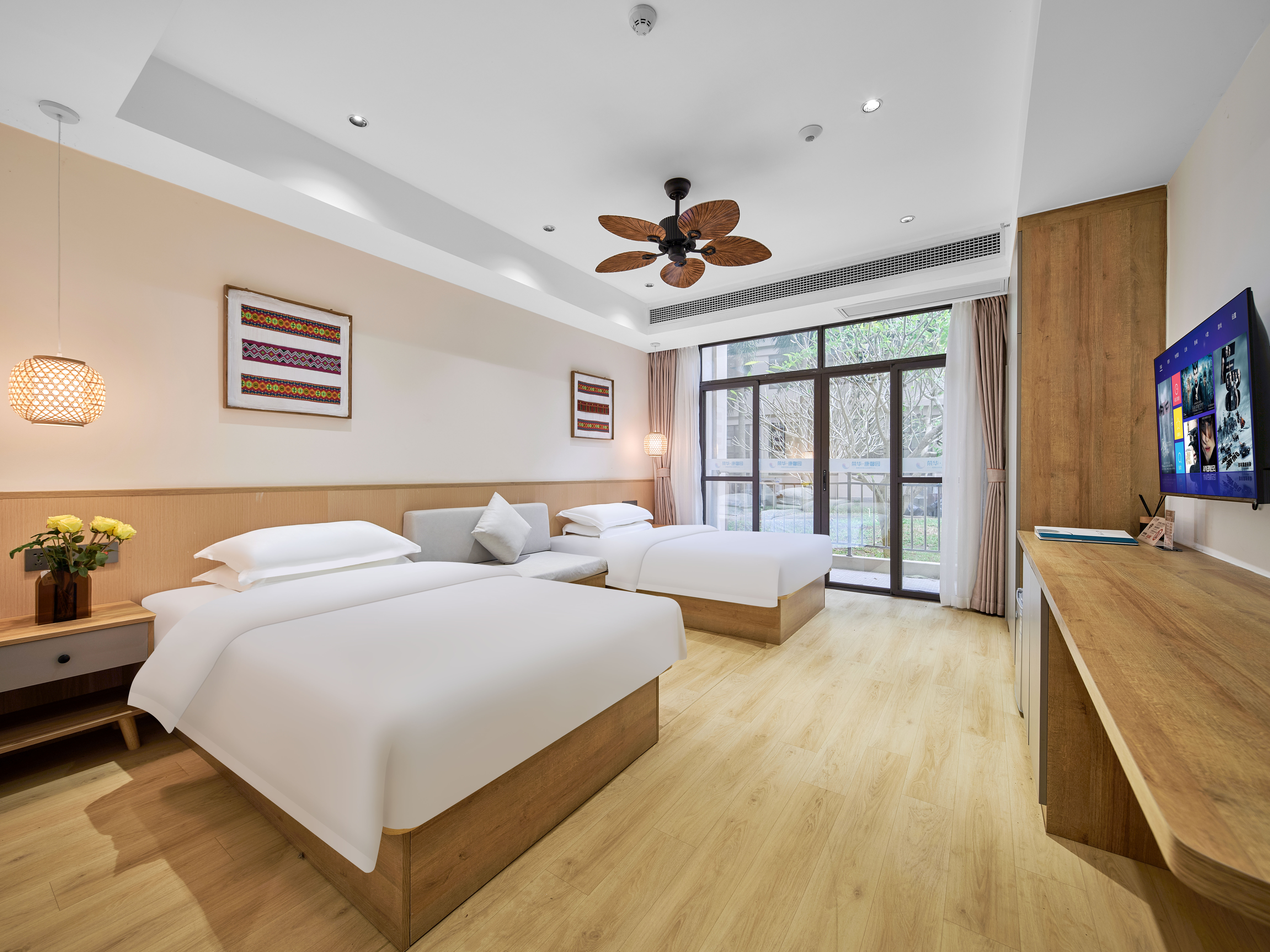 璞瀾·尊享雙床房(陽台觀景+液晶電視+復古吊扇+小冰箱+洗衣機)
