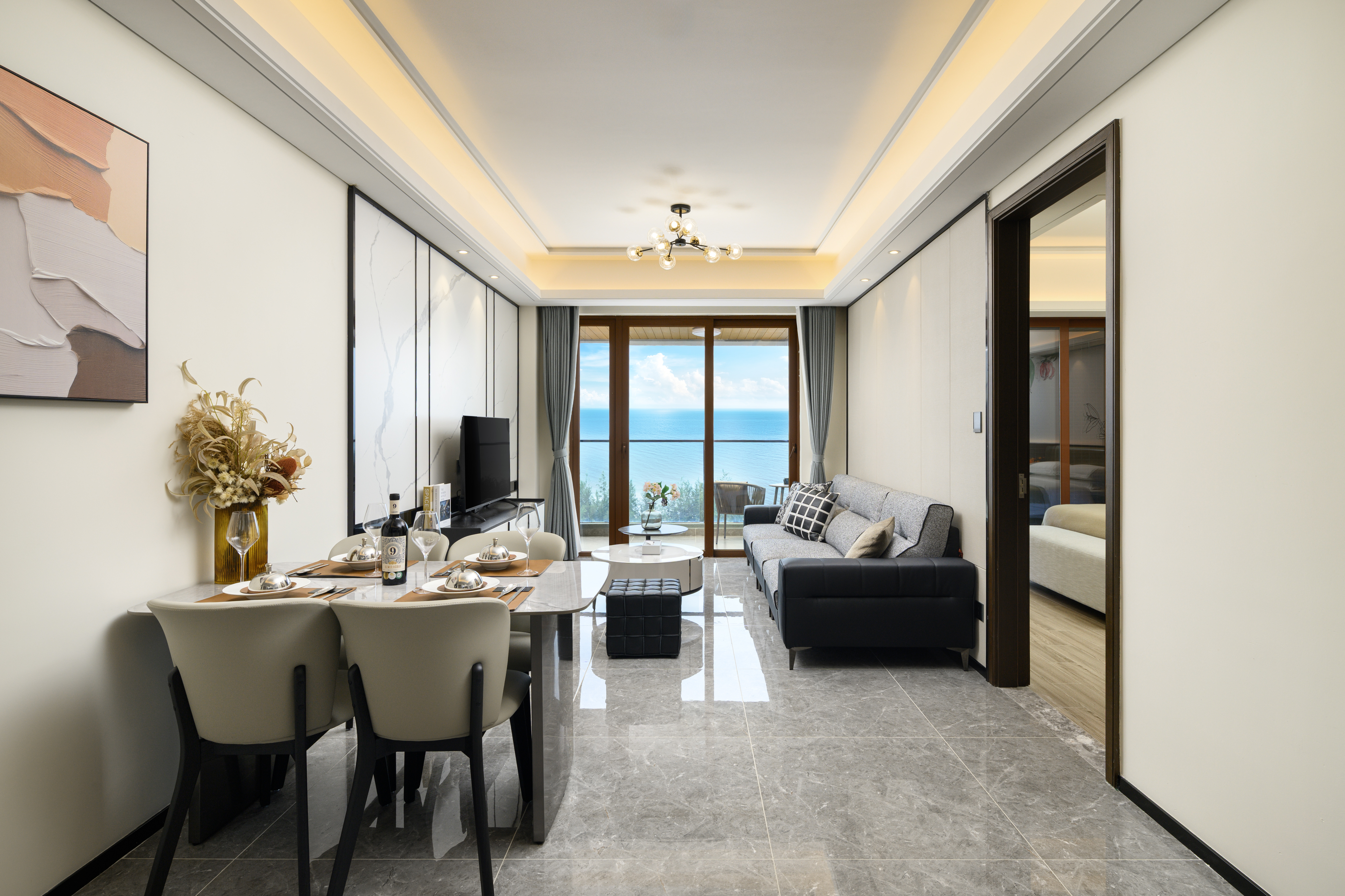 岭海·无敌一线海景家庭套房(两室一厅+阳台+冰箱)