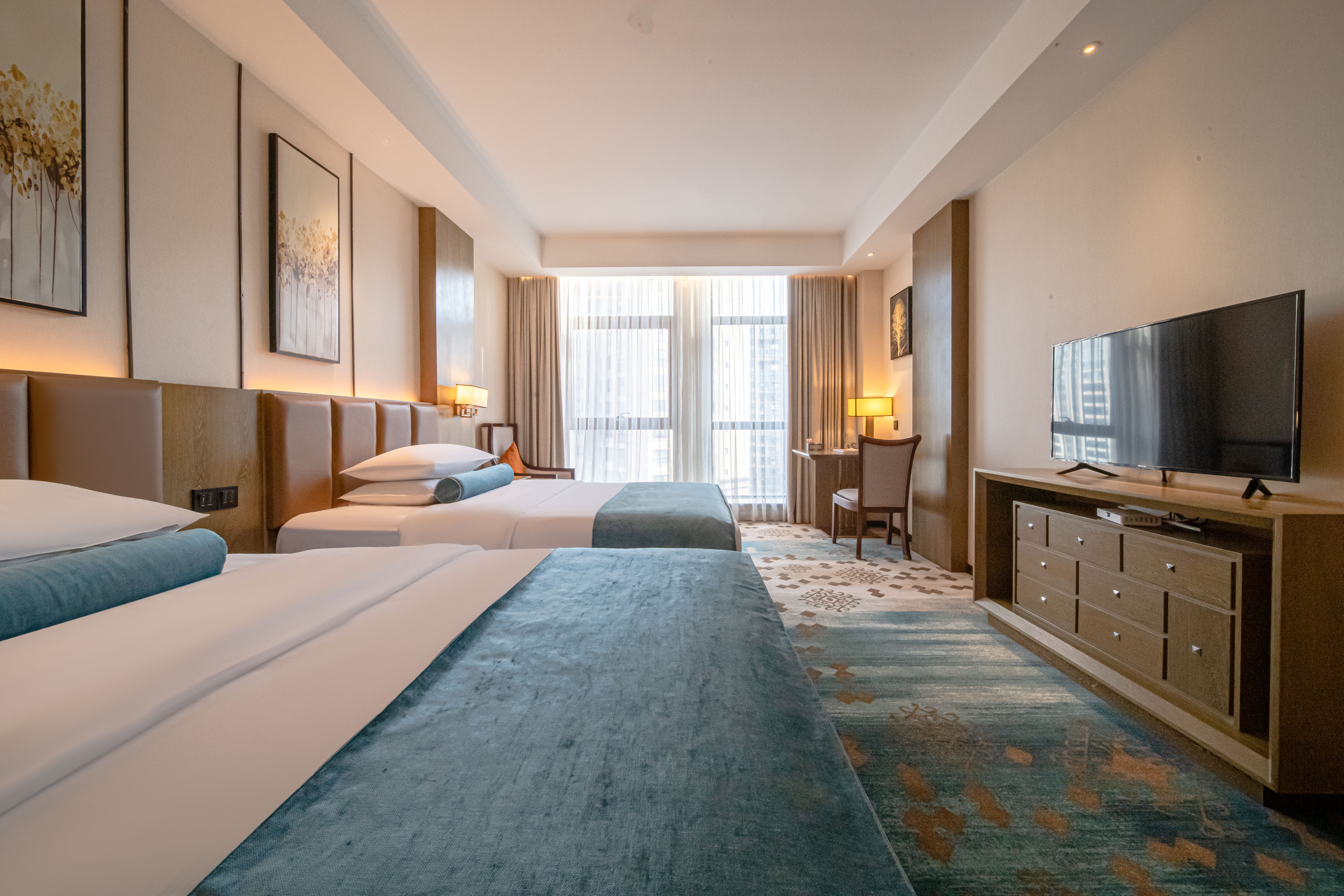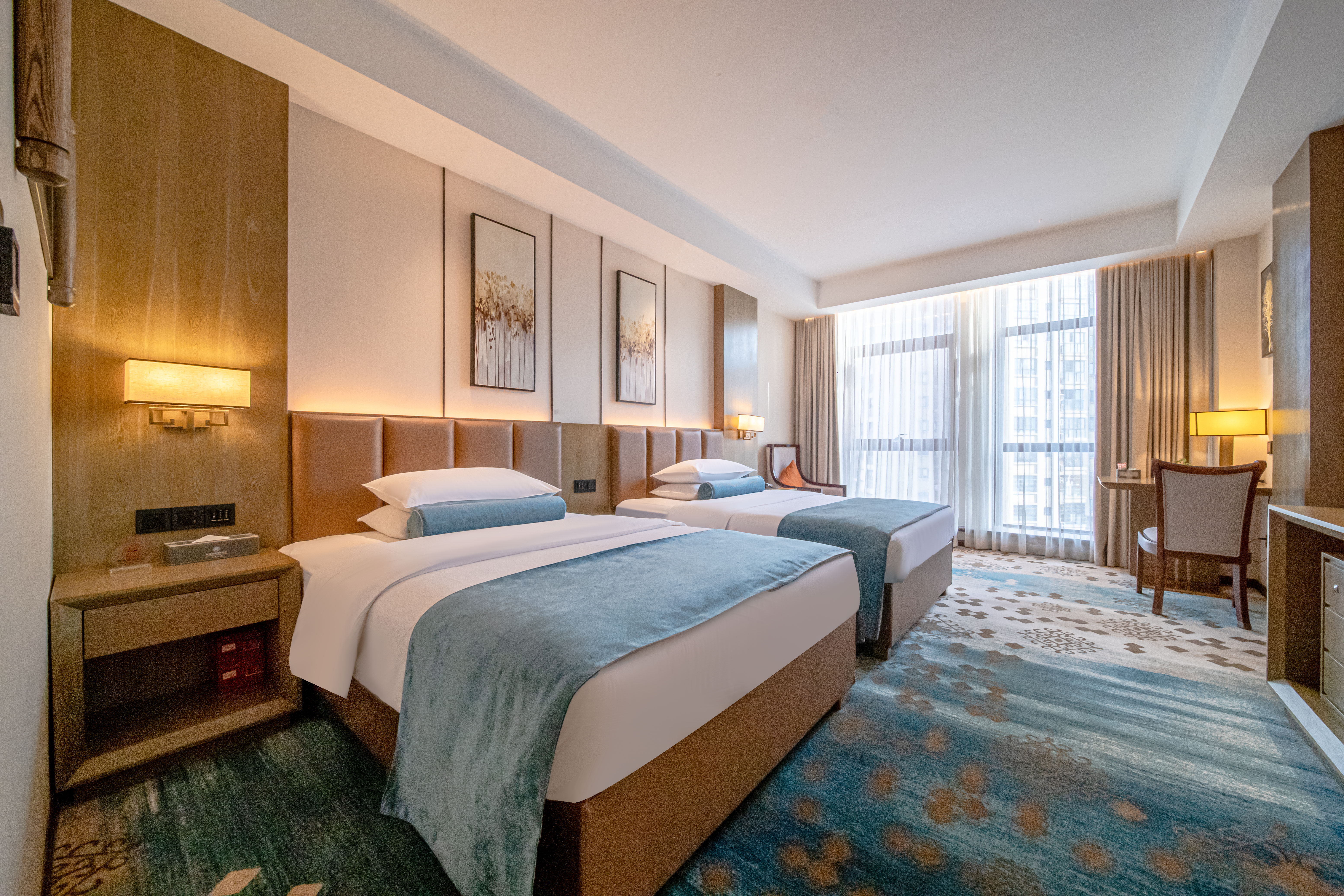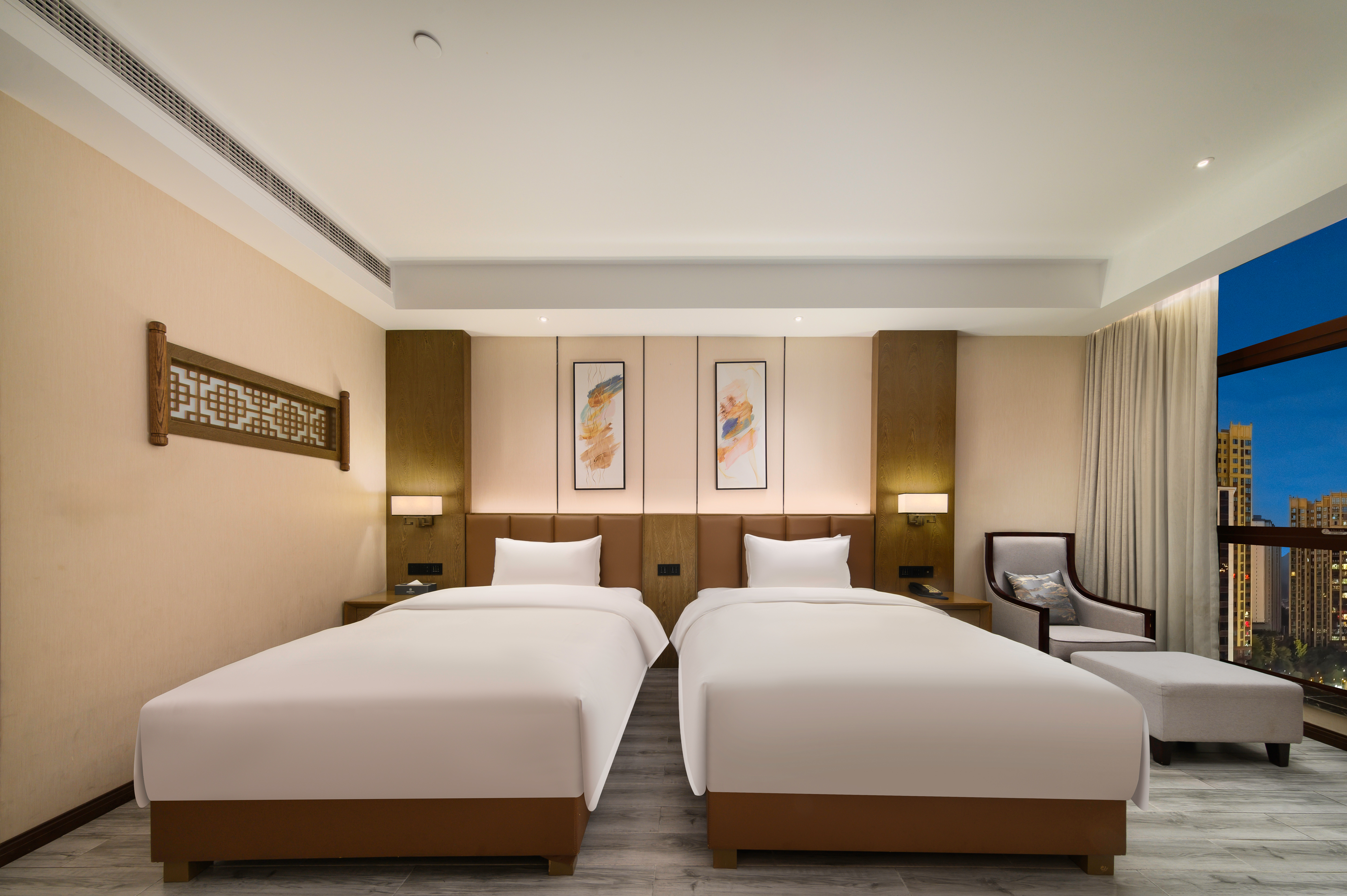 高级城景双床房(玮兰零压床垫+临窗贵妃软椅子+100%鹅绒被)