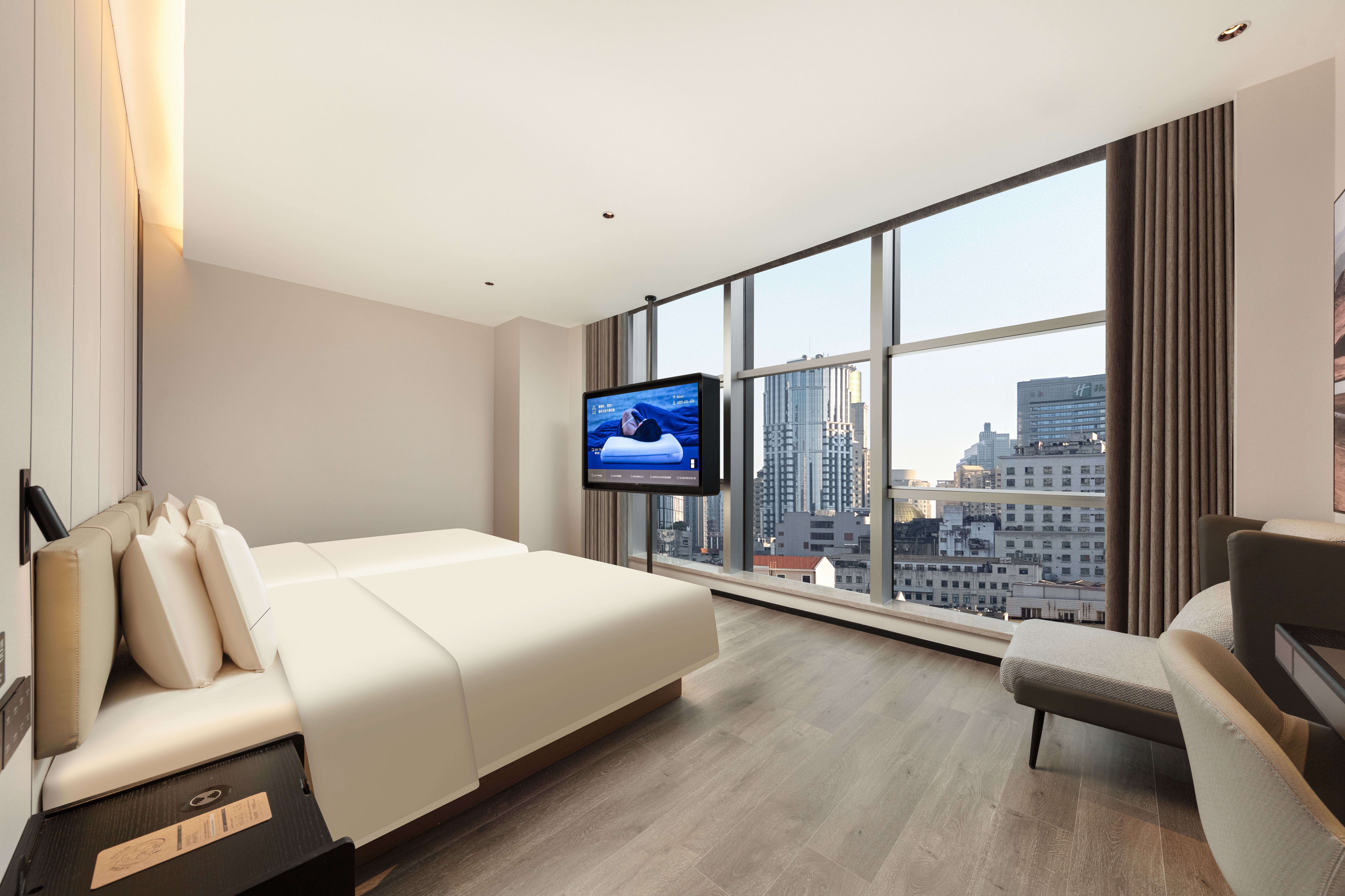 尊享雙床房(親膚浴袍+65寸投屏+小冰箱+裸棉床品)