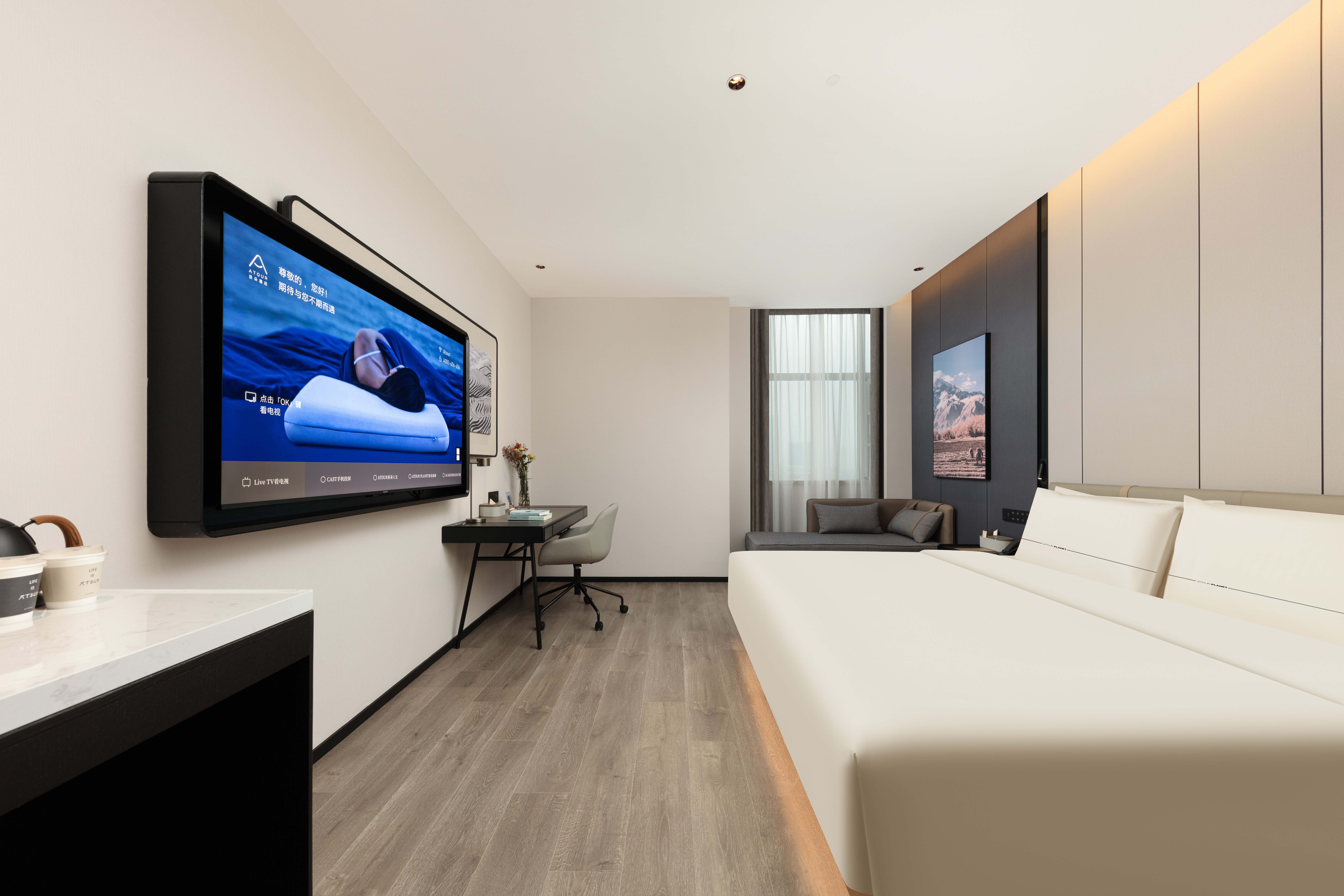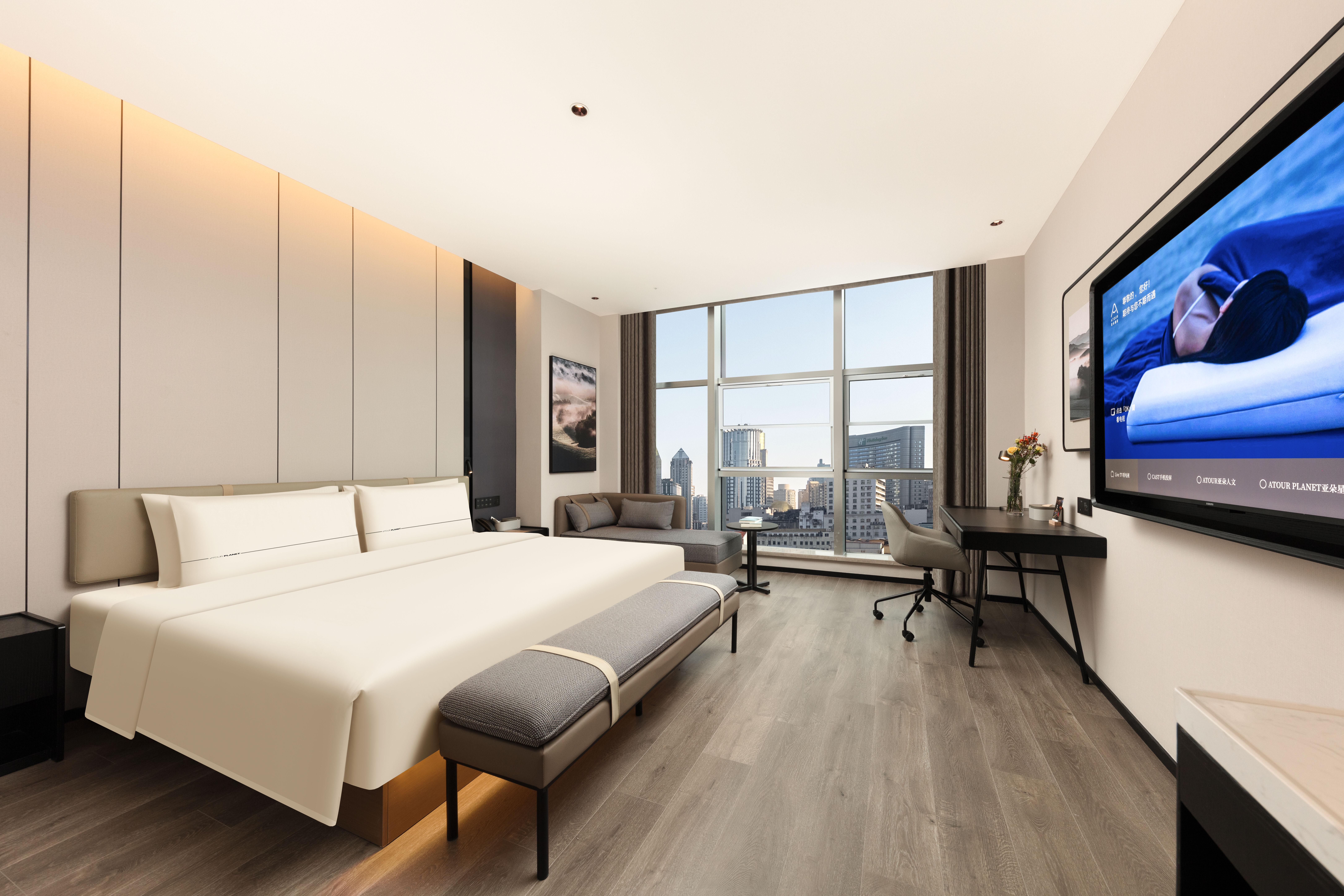 尊享大床房(親膚浴袍+65寸投屏+小冰箱+裸棉床品)