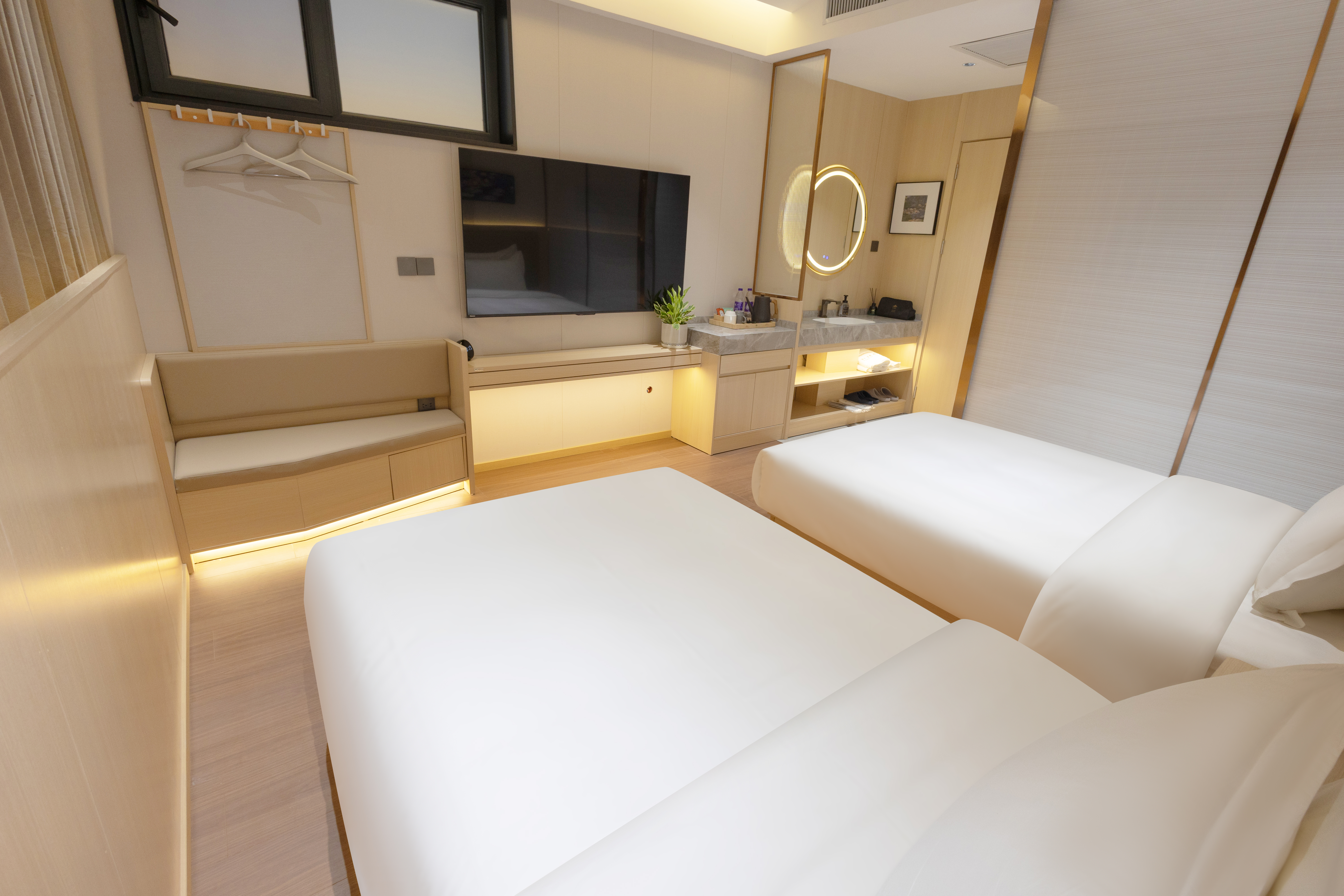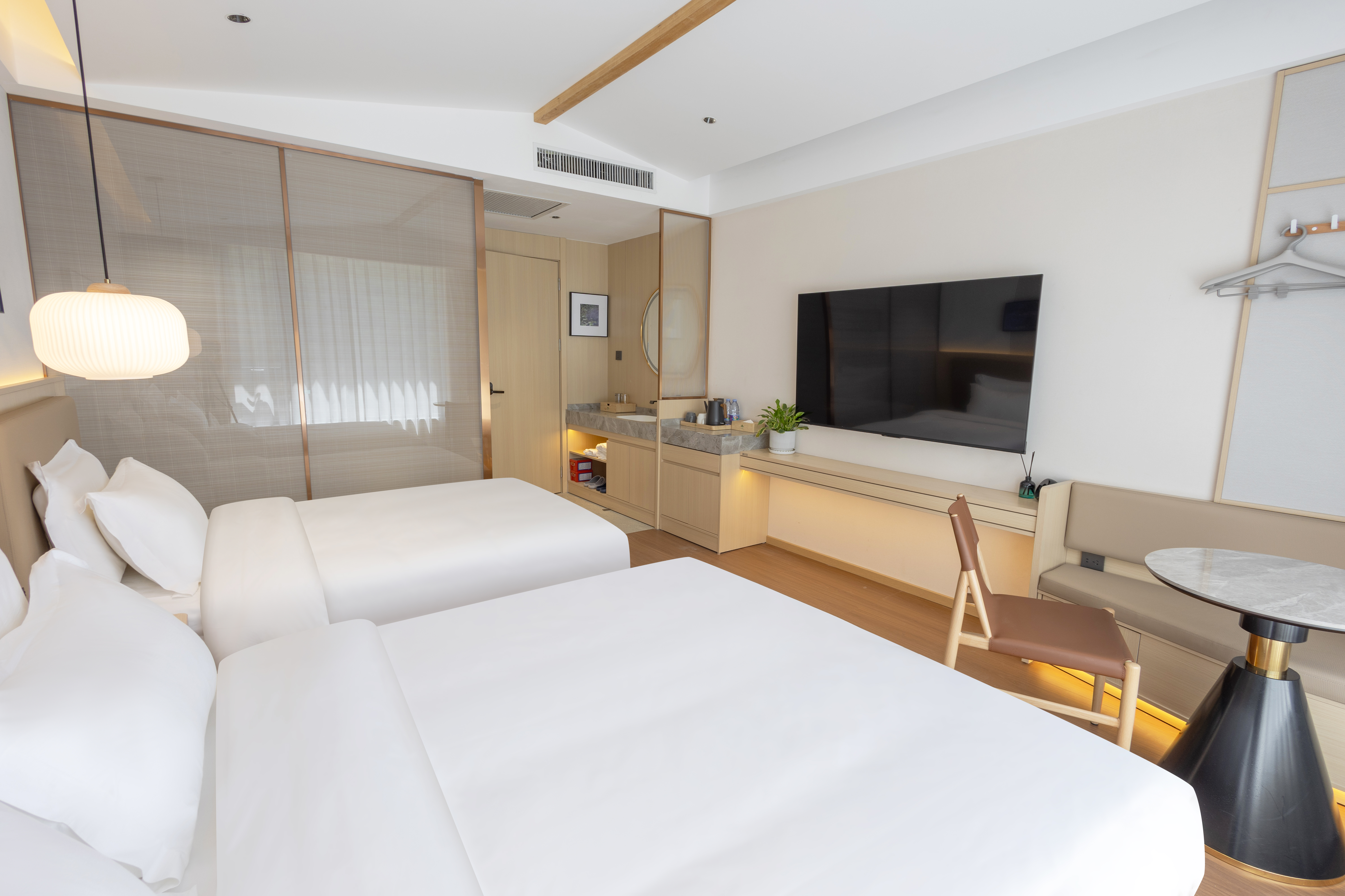 睡莲·舒睡标准双床房-乳胶床垫-高端布草-全屋智能