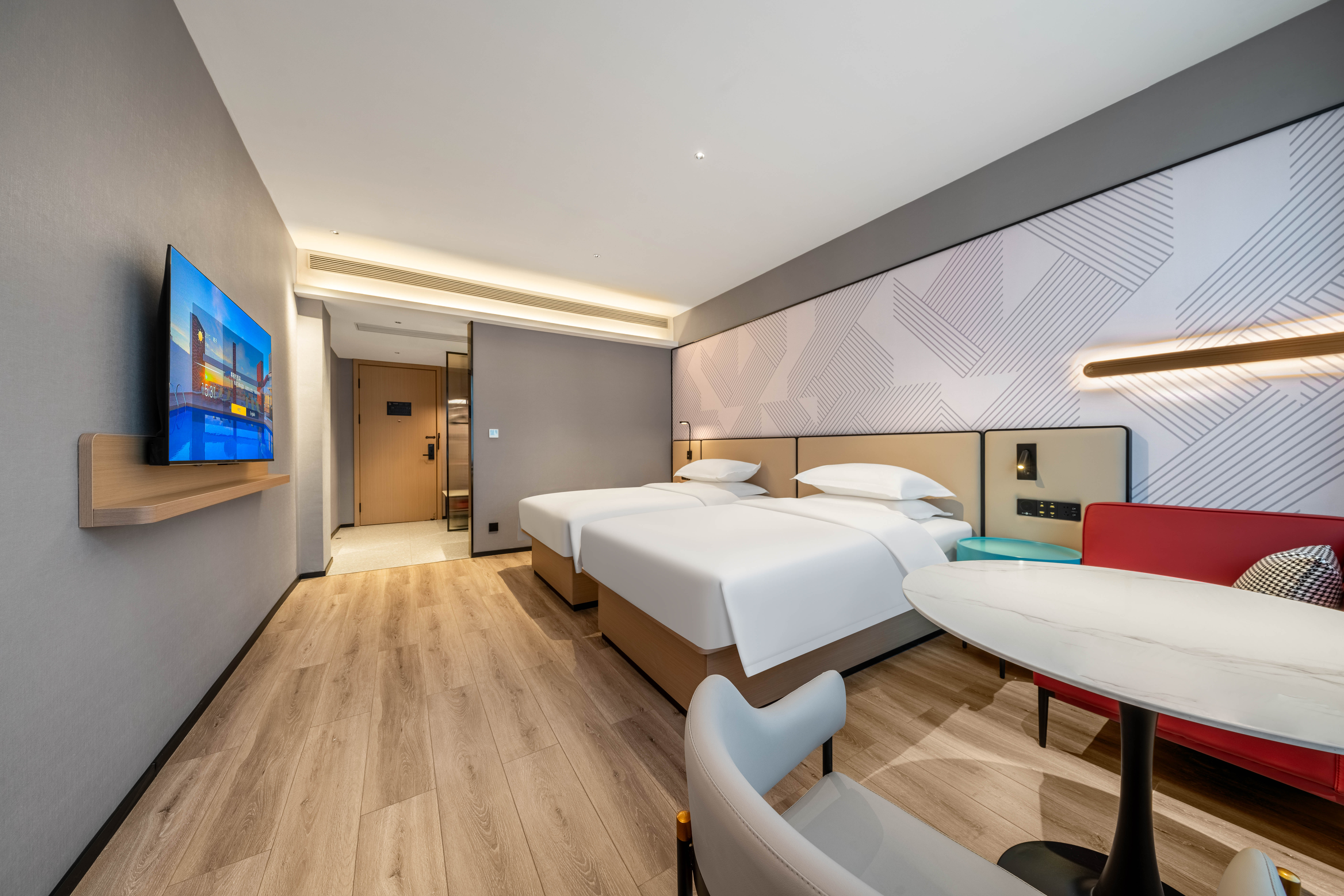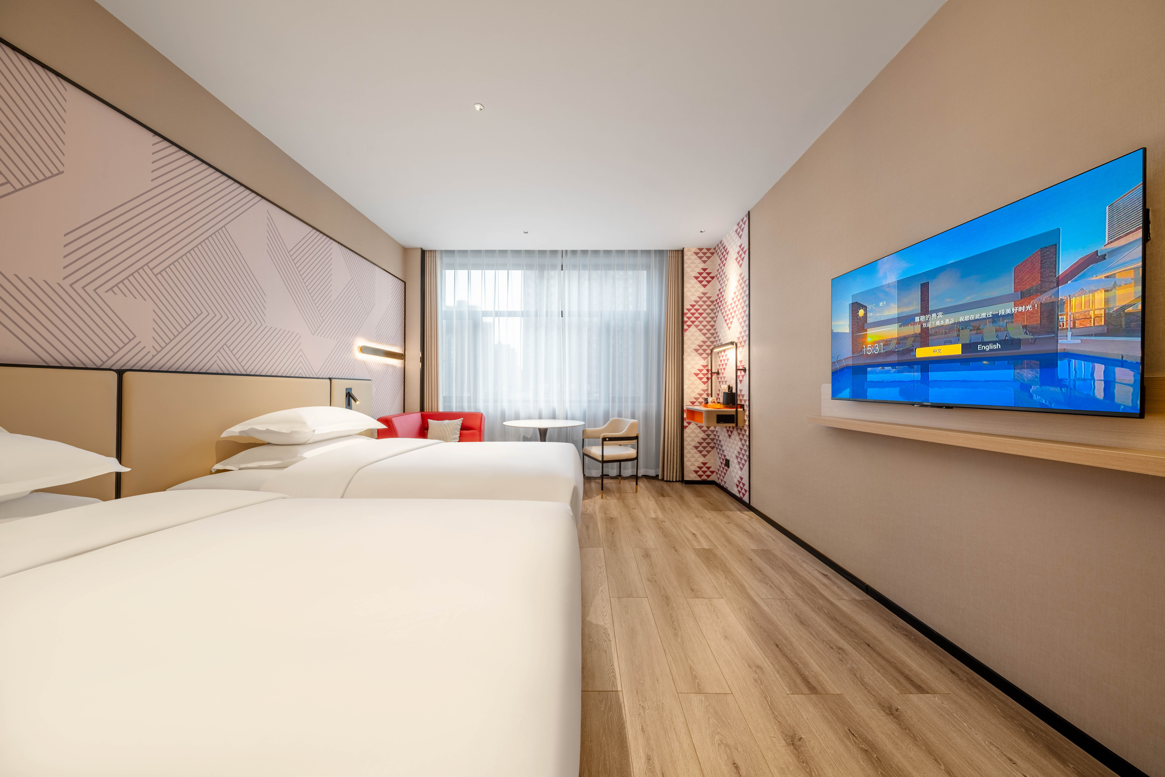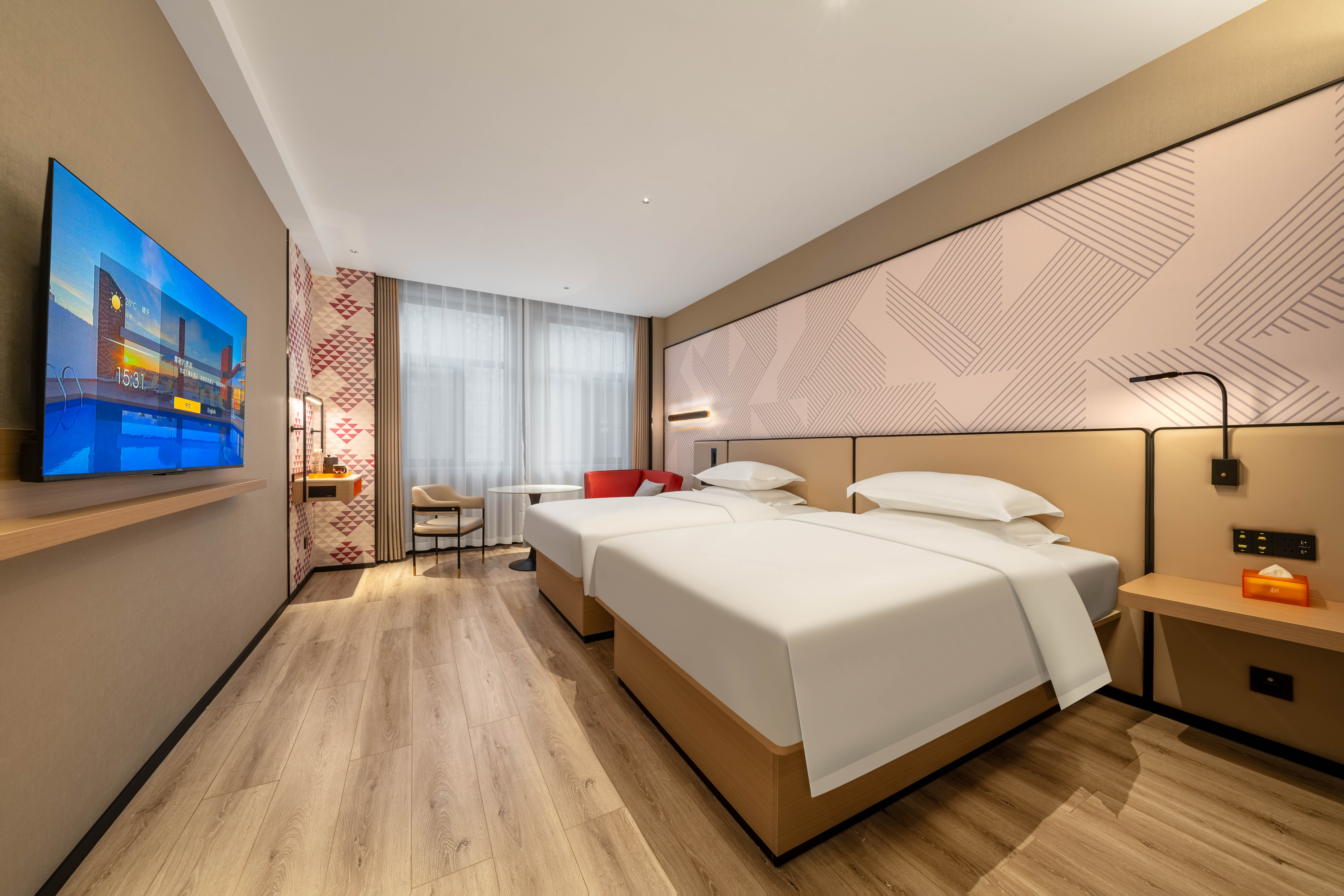 雅致双床房丨智能投屏丨智能马桶丨品牌床垫丨轻奢睡眠