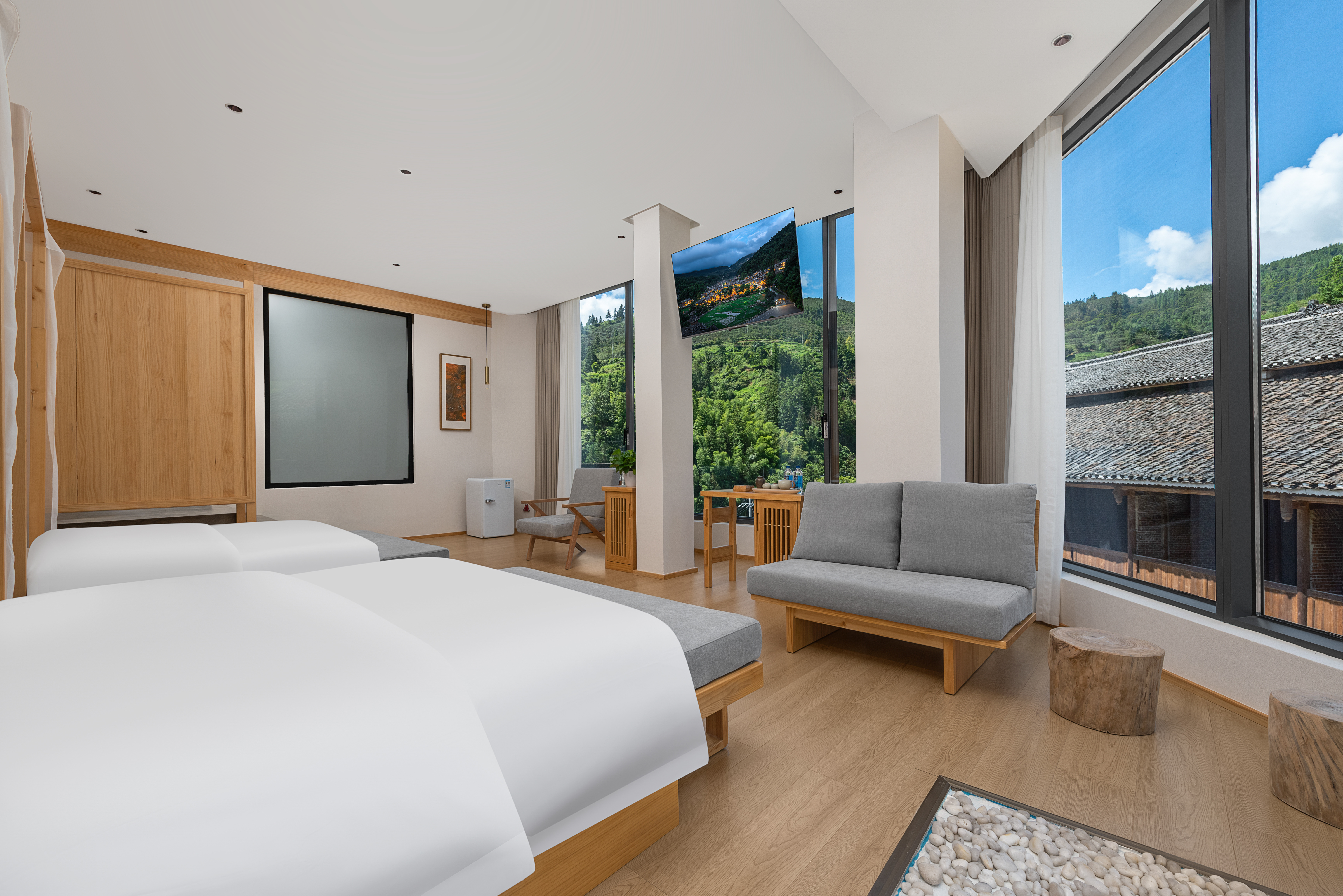 Vol-3·全揽180°侗寨风情双床房| 临窗浴·奢品鹅绒被