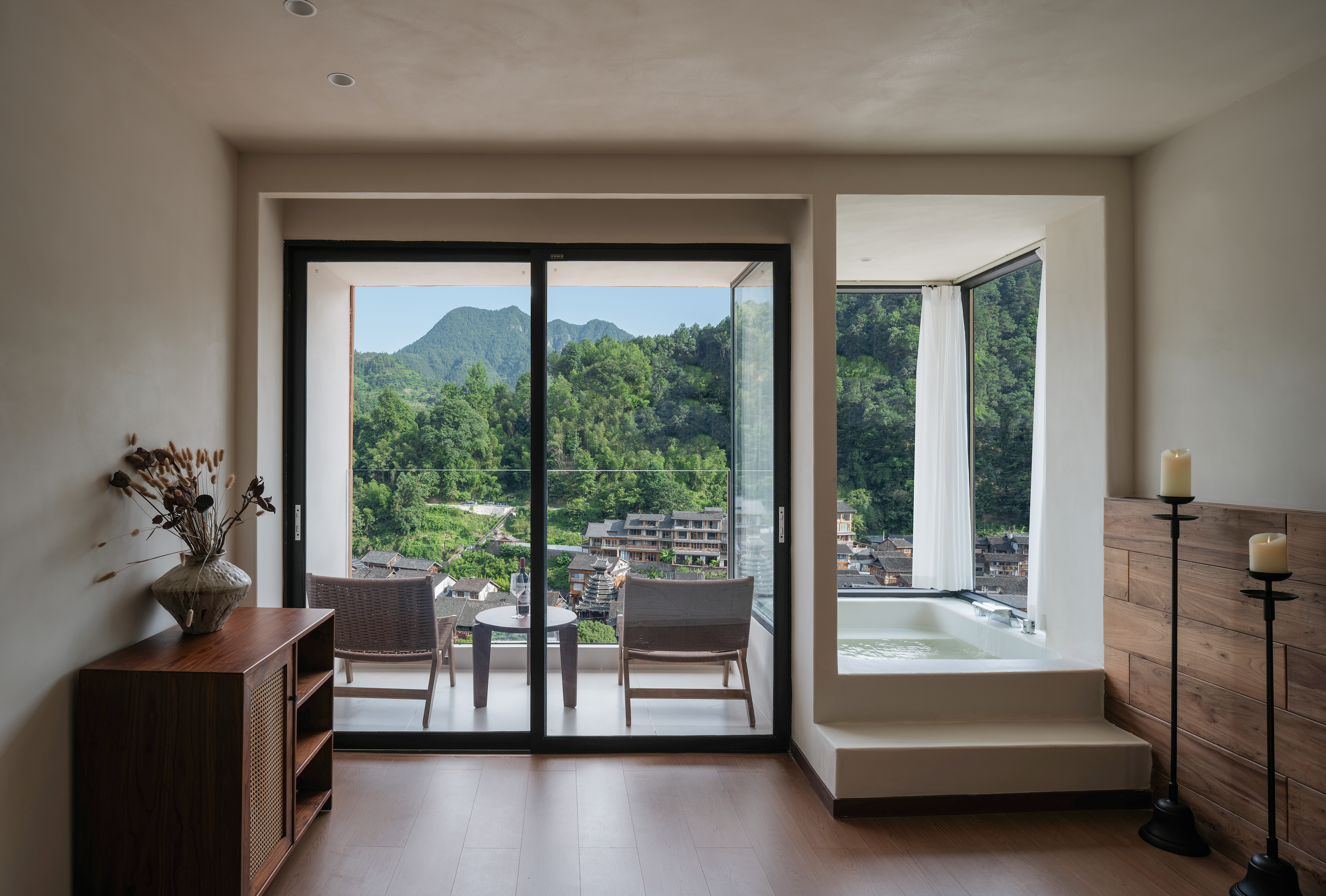 月阶|凌空瞰景「侗族斜檐」露台私汤 · 智能大床房