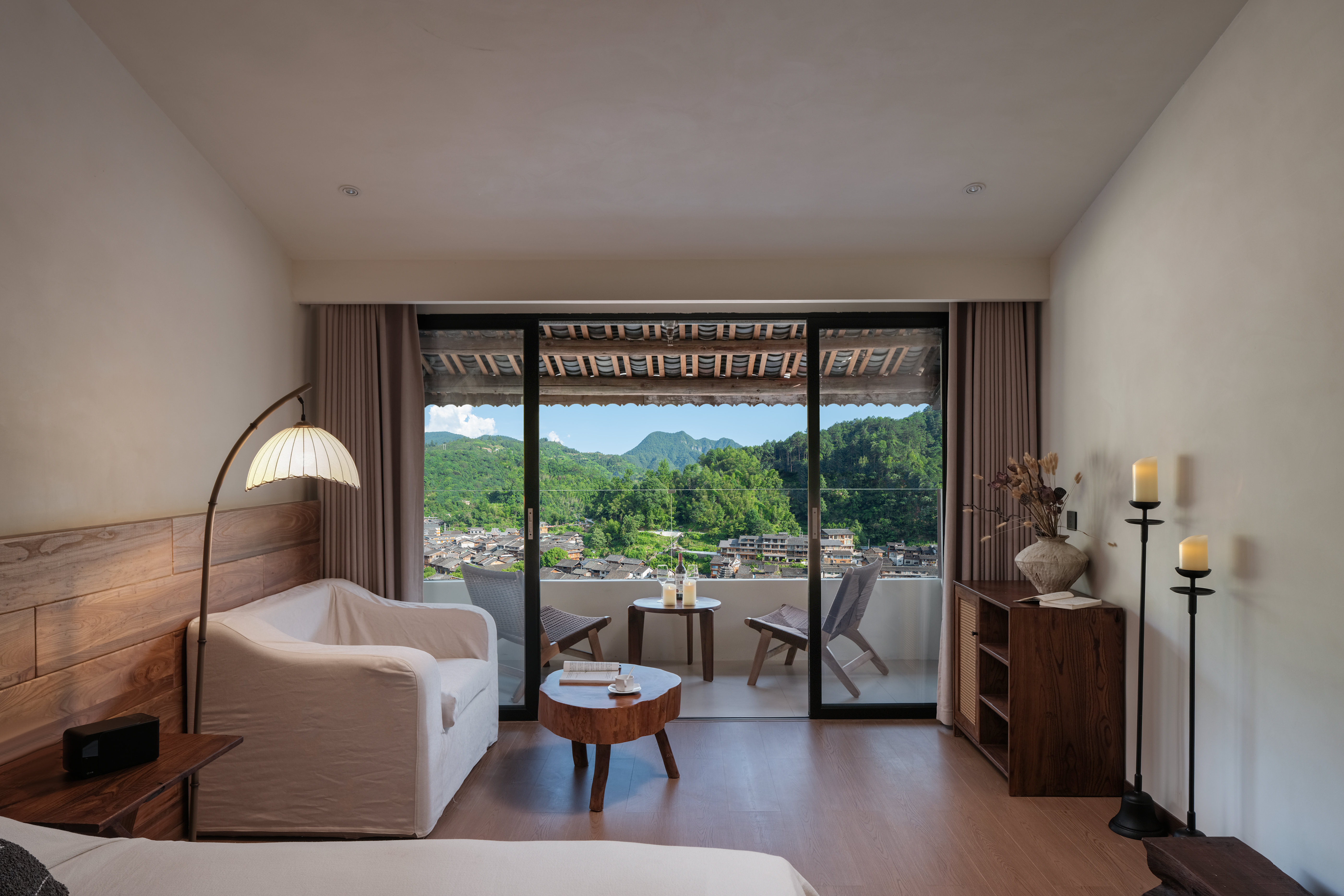 鼓藏|凌空瞰景「侗族斜檐」露台 · 智能双床房