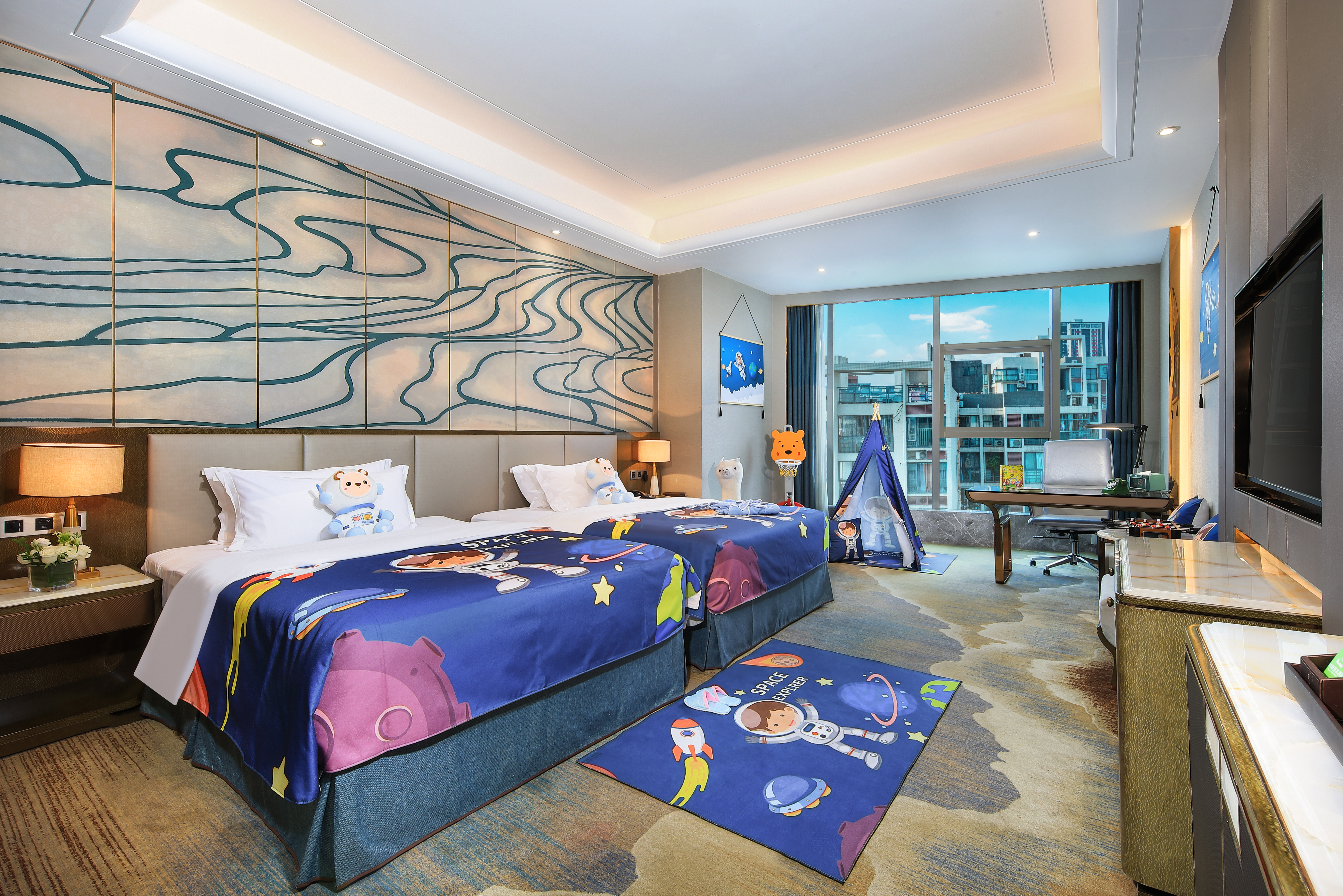 Family Twin Room (Cartoon Pet Theme + Kids'Tent + Fun Toys + Children's Amenities + Playful Bathtub)