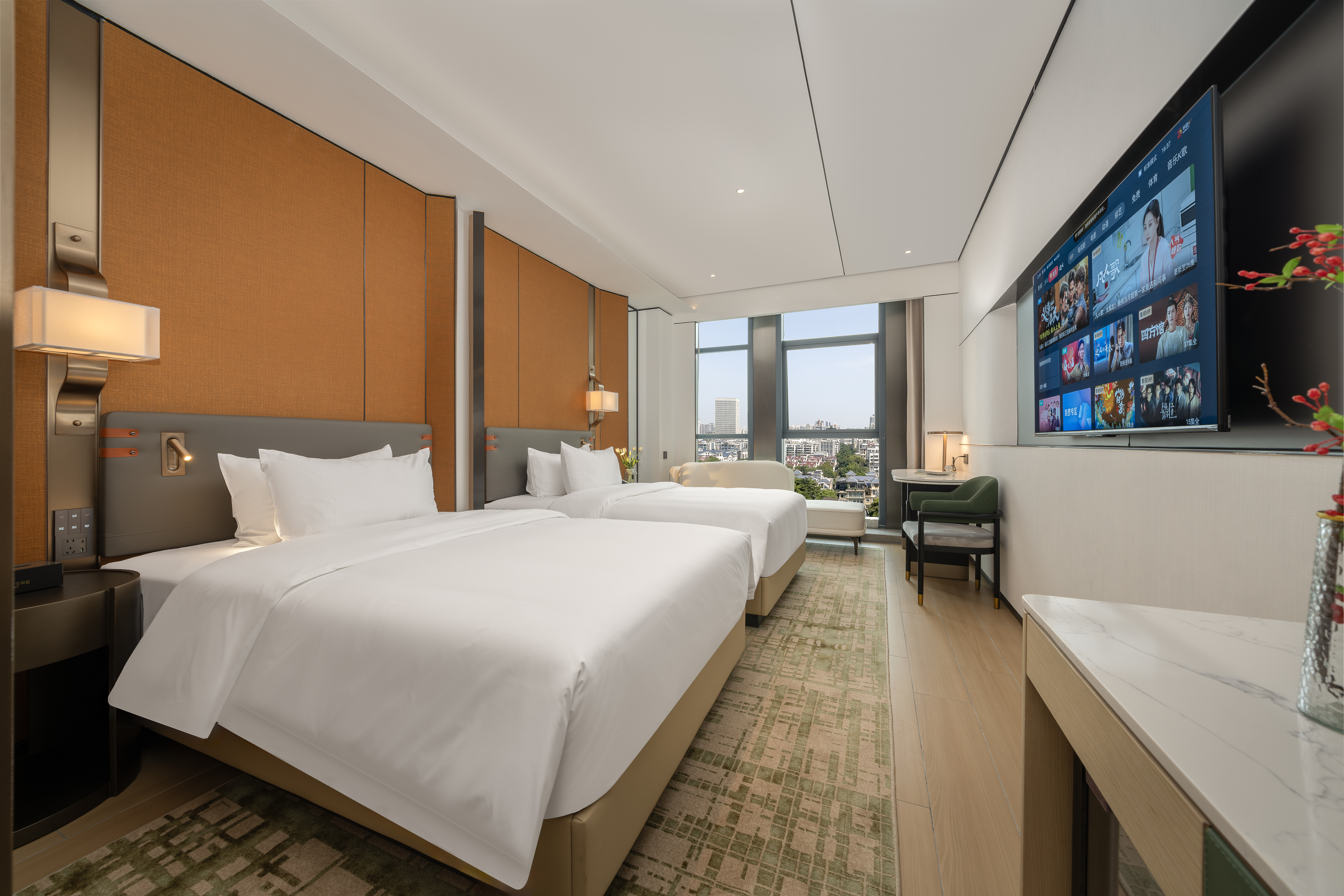 Business Double Bed Room (City Night View, Smart Control)