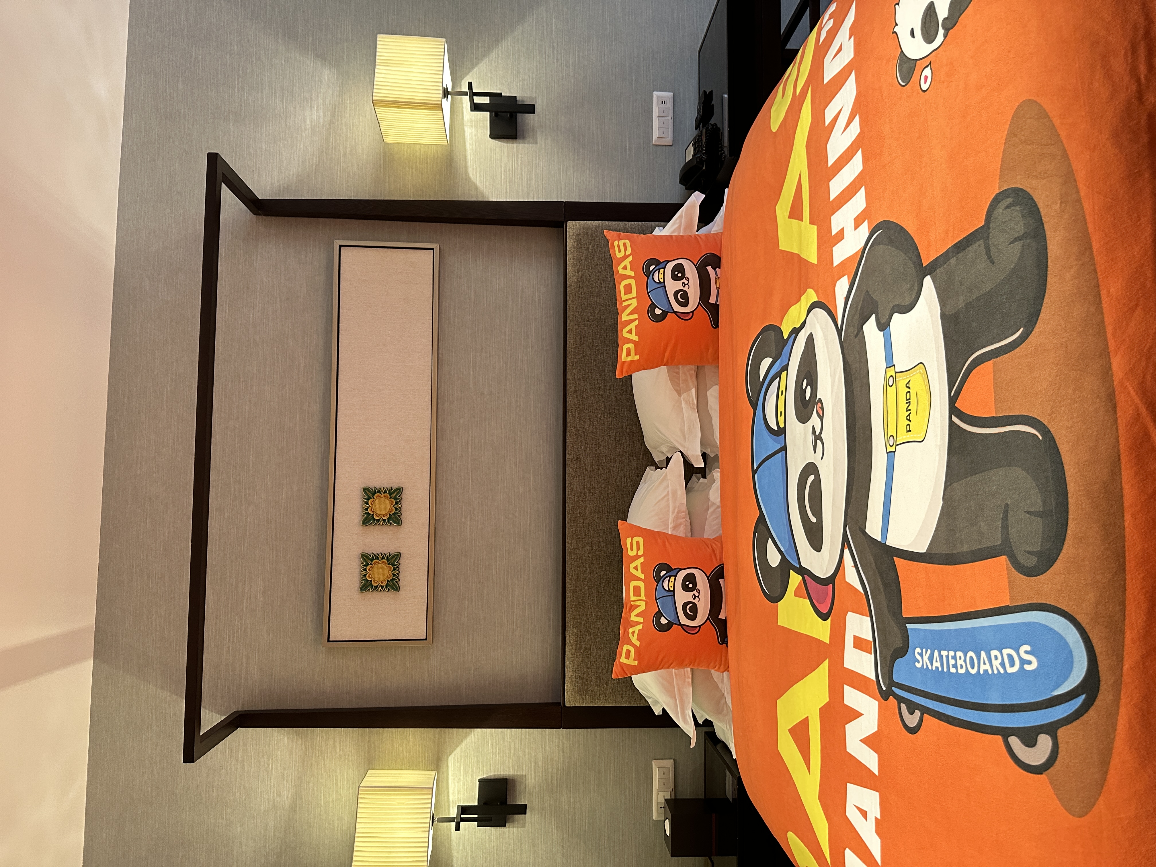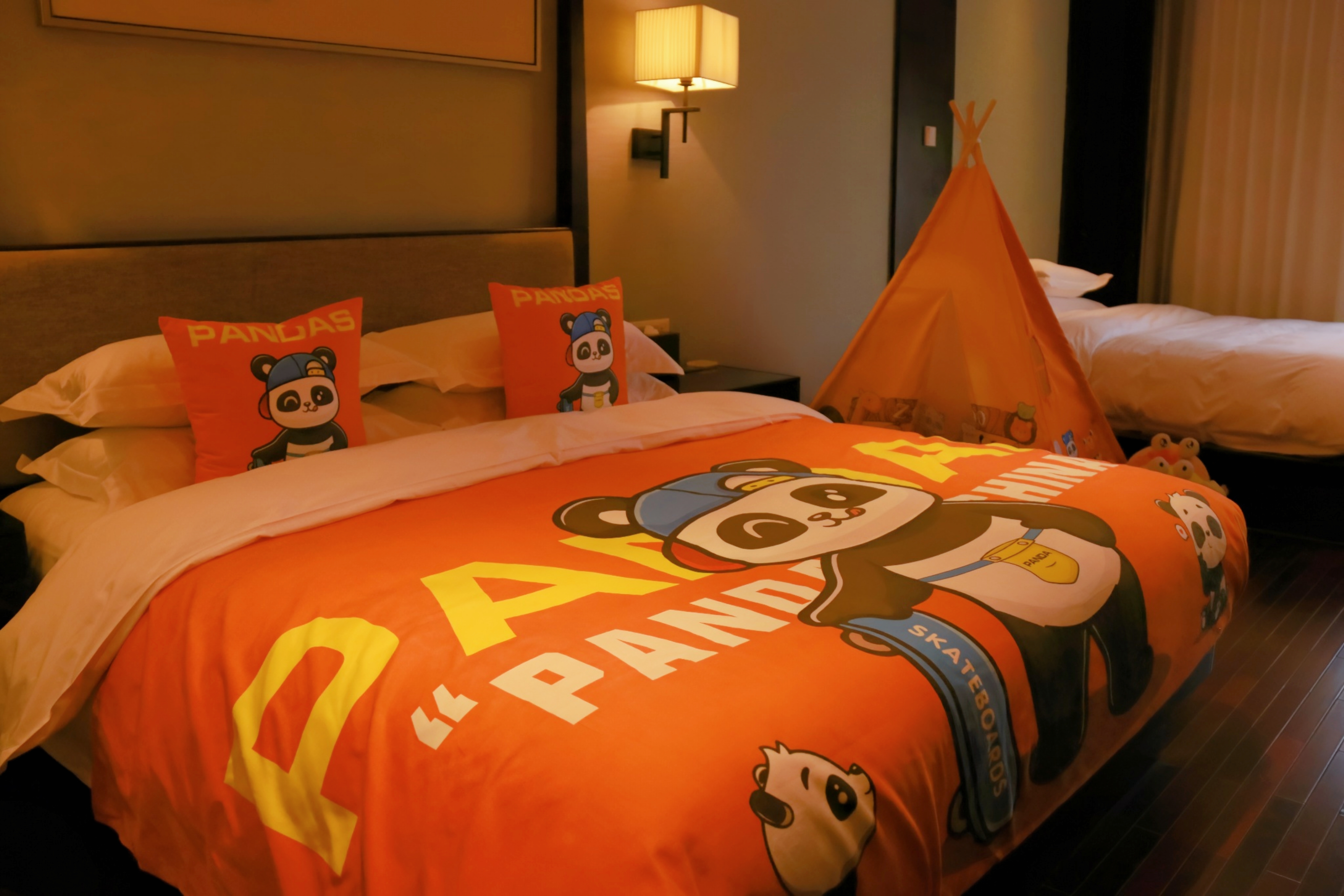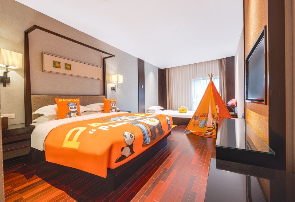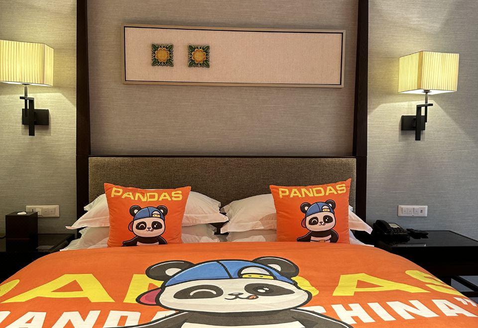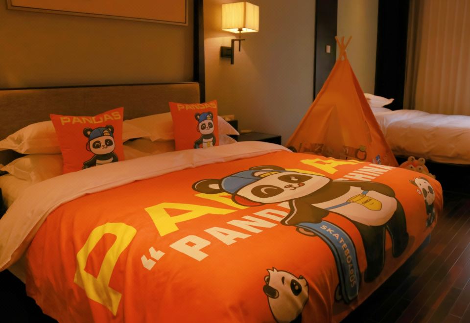 滑板熊猫家庭主题房(园林景观+Mini冰箱&品茗茶具)