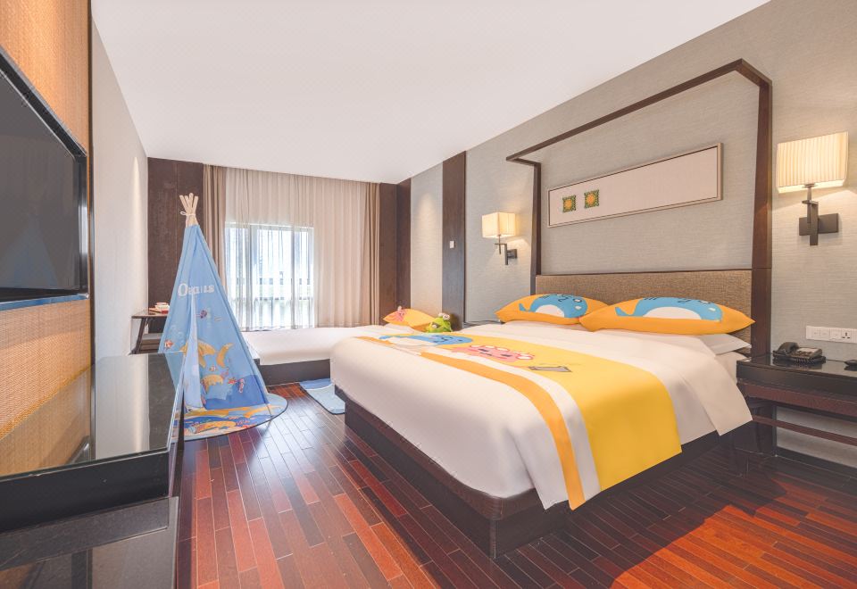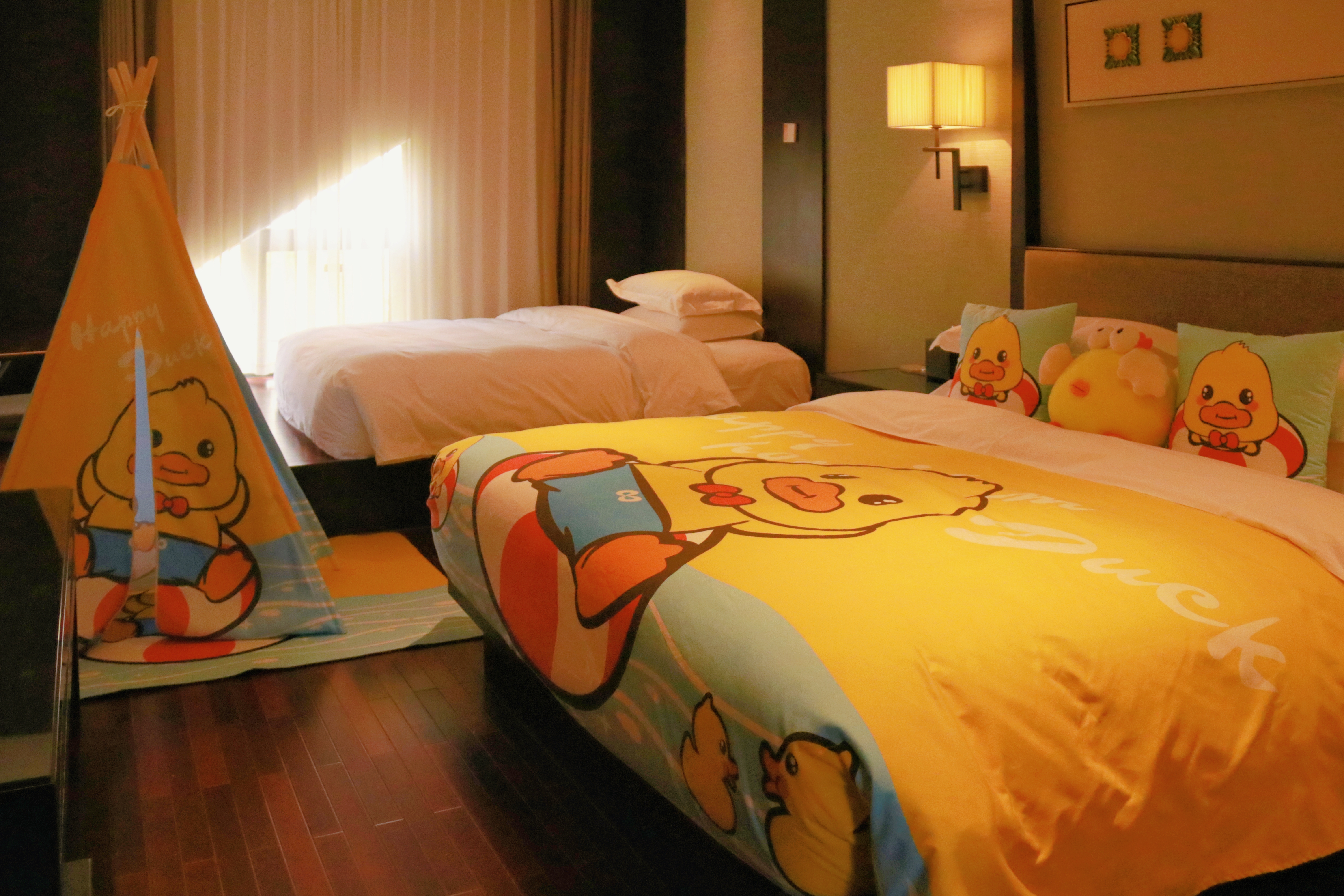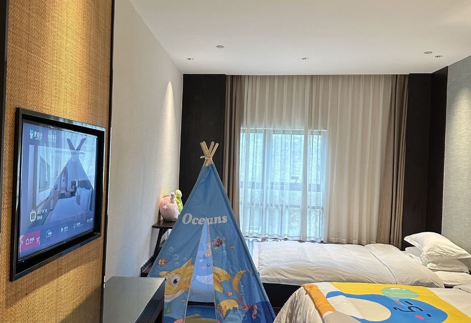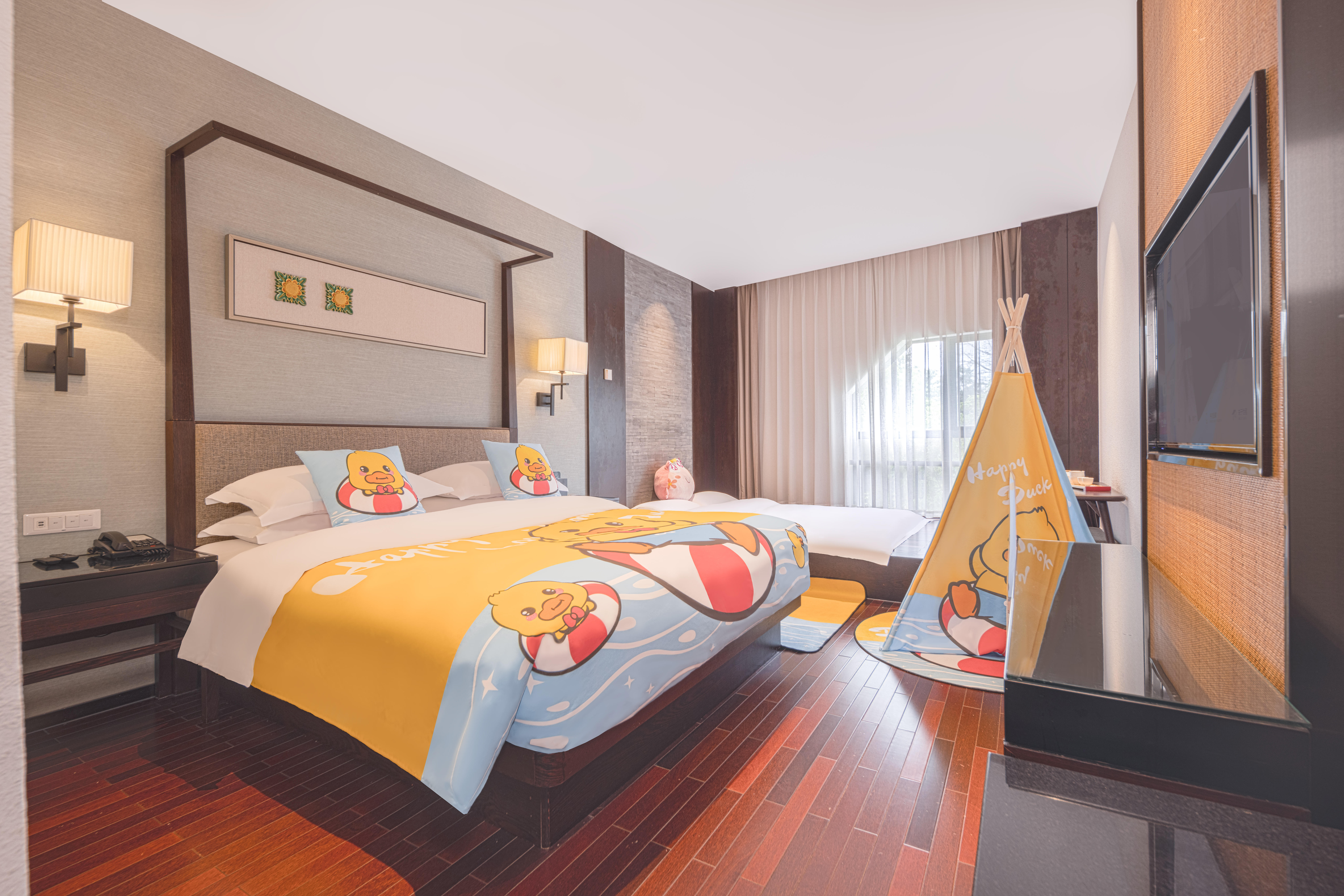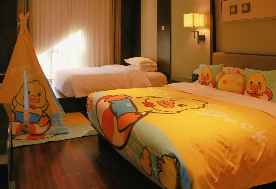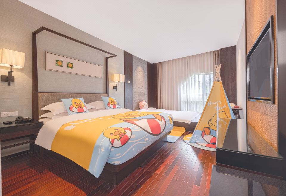 度假鸭家庭主题房(园林景观+Mini冰箱&品茗茶具)