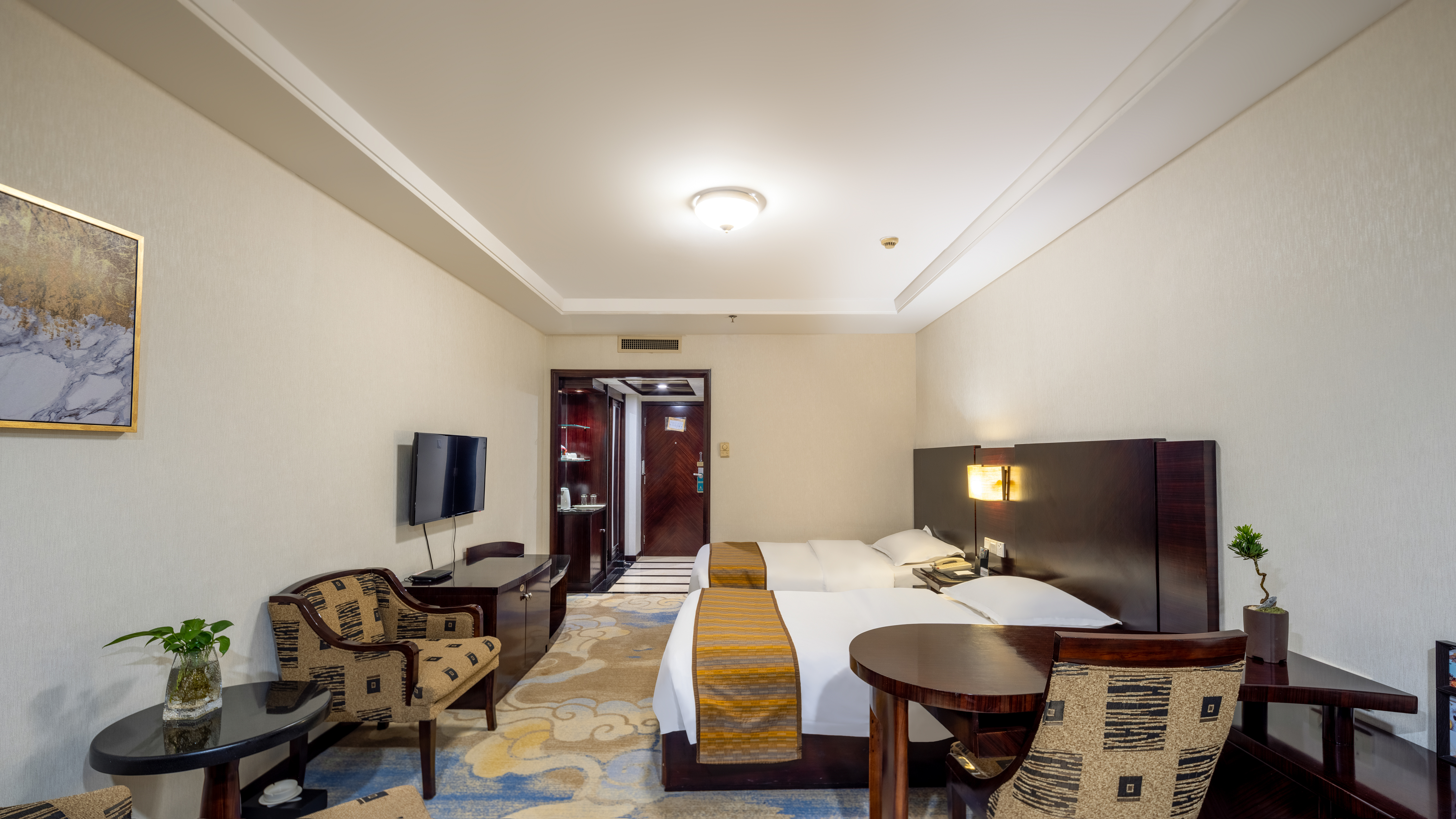 雅致双床房(观景可开落地窗+超大电视)