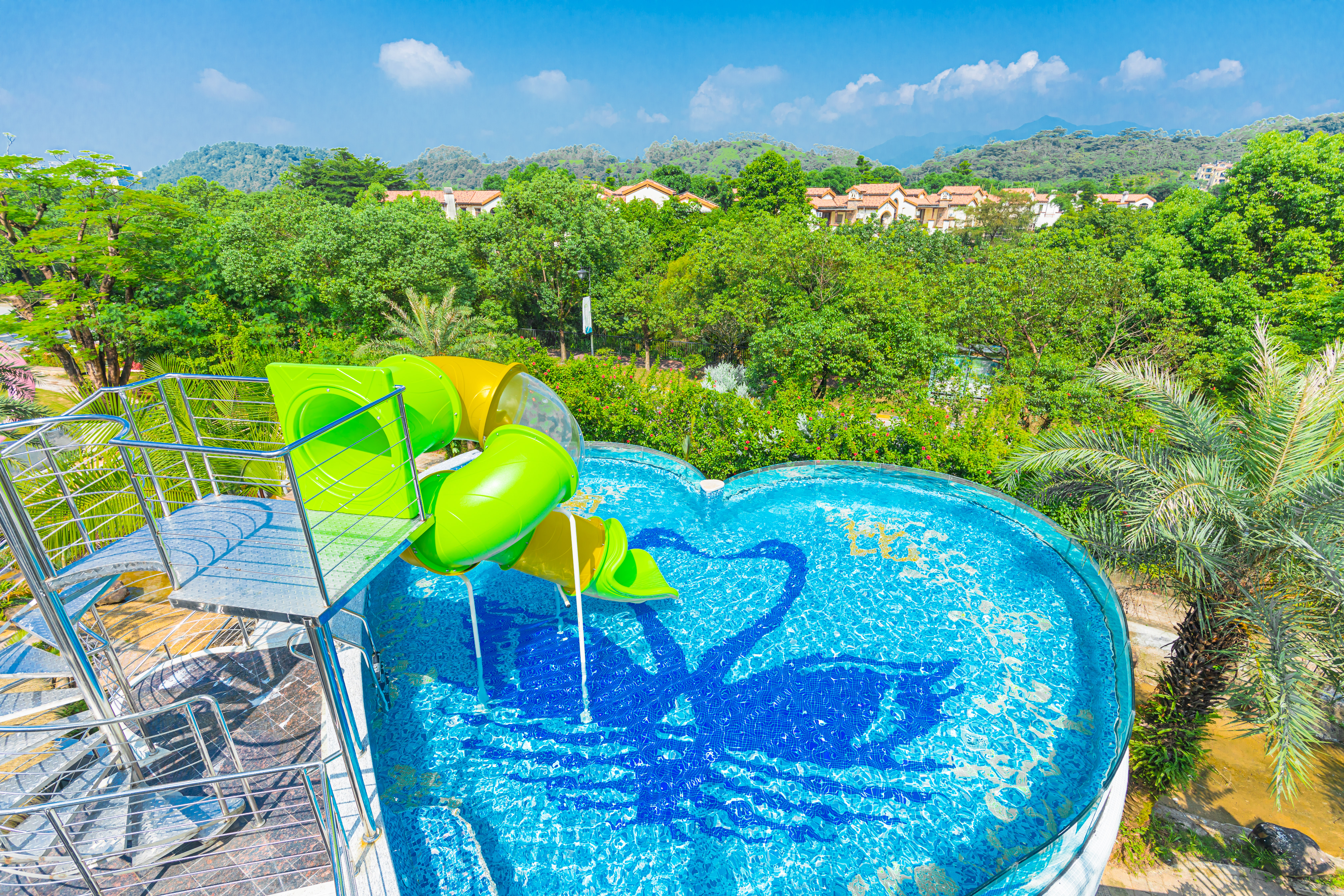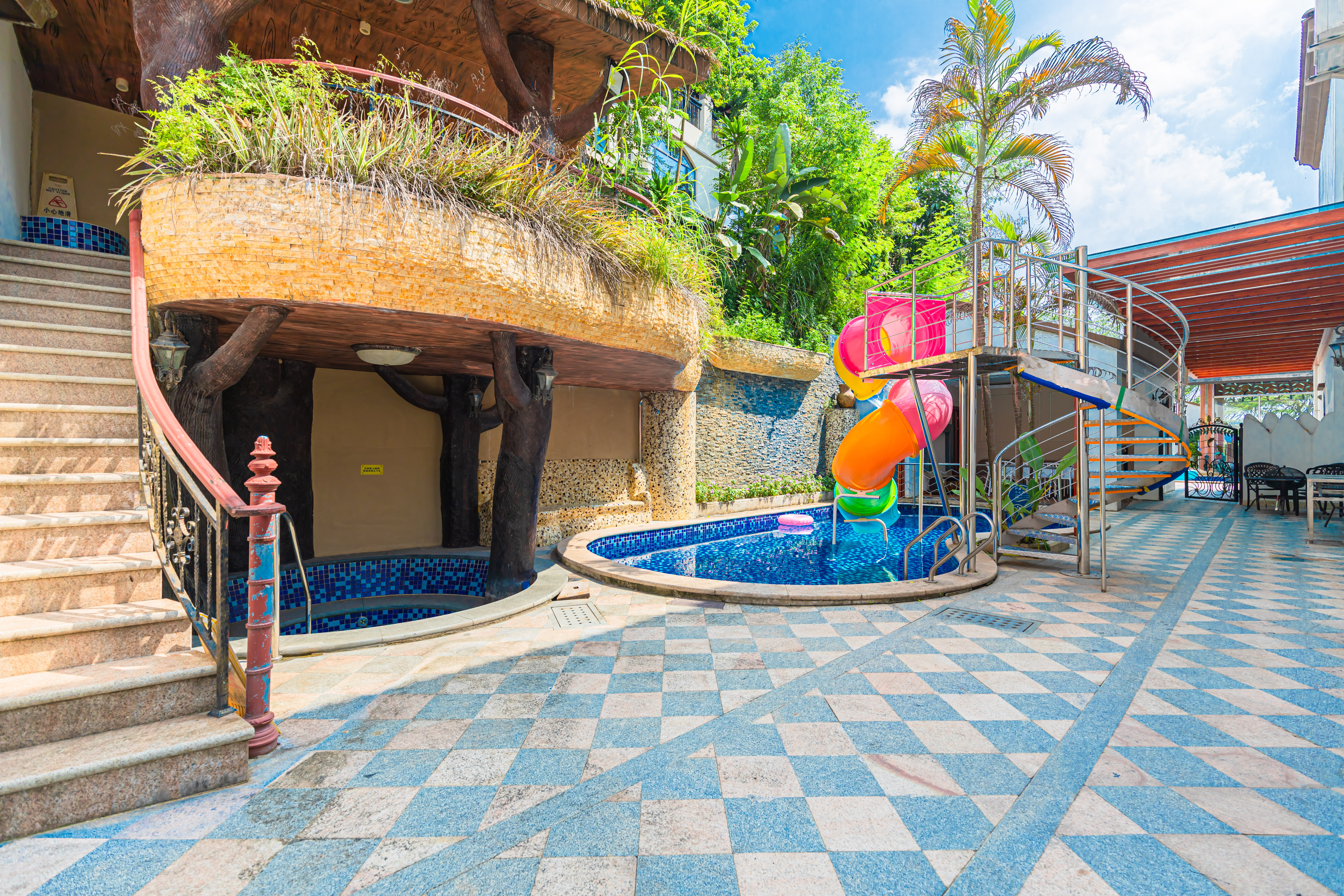 狮子·滑梯泳池|5房10床独栋别墅(4个温泉泡池+24小时KTV+碳烧烤+自动麻将+桌游+自助厨房)