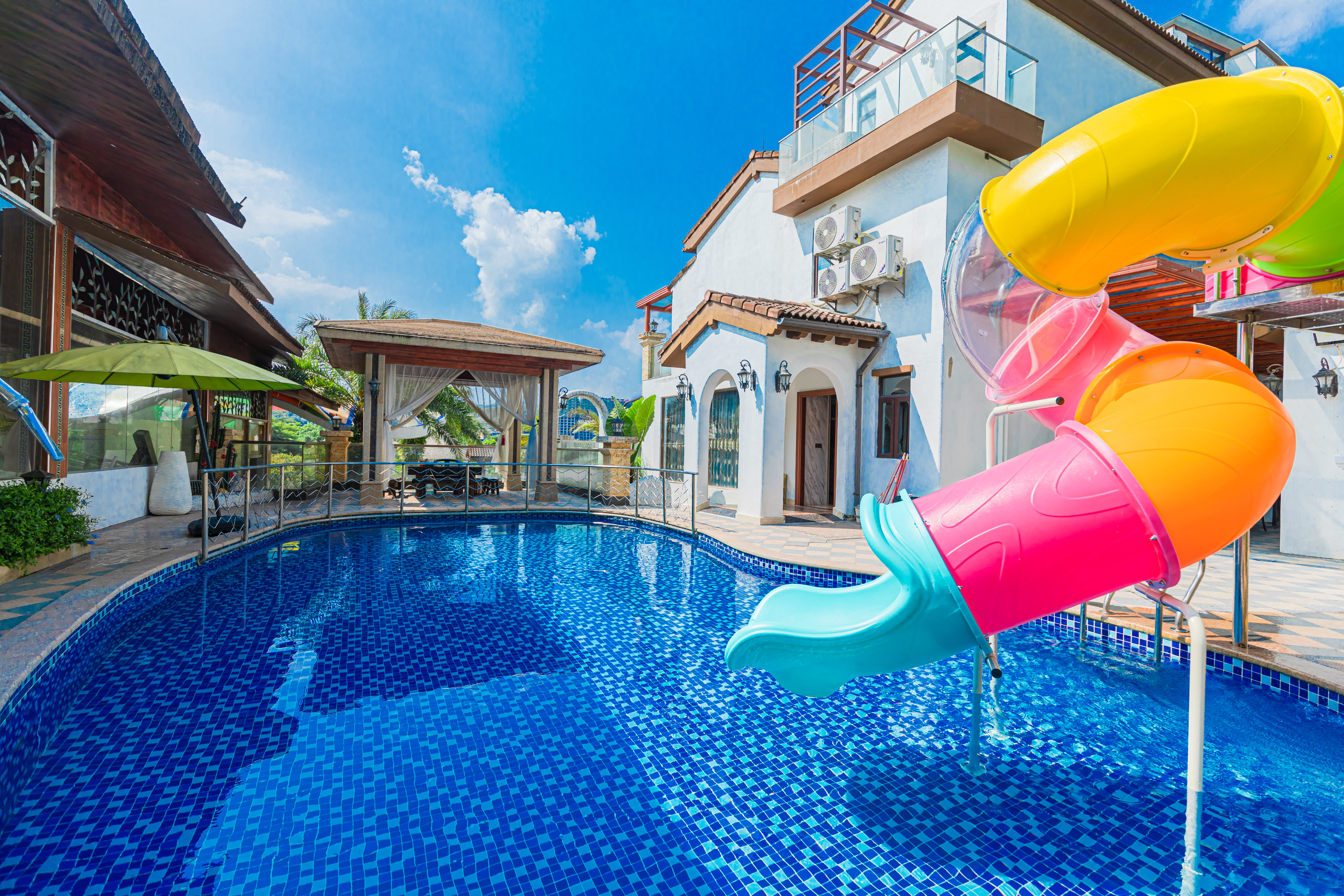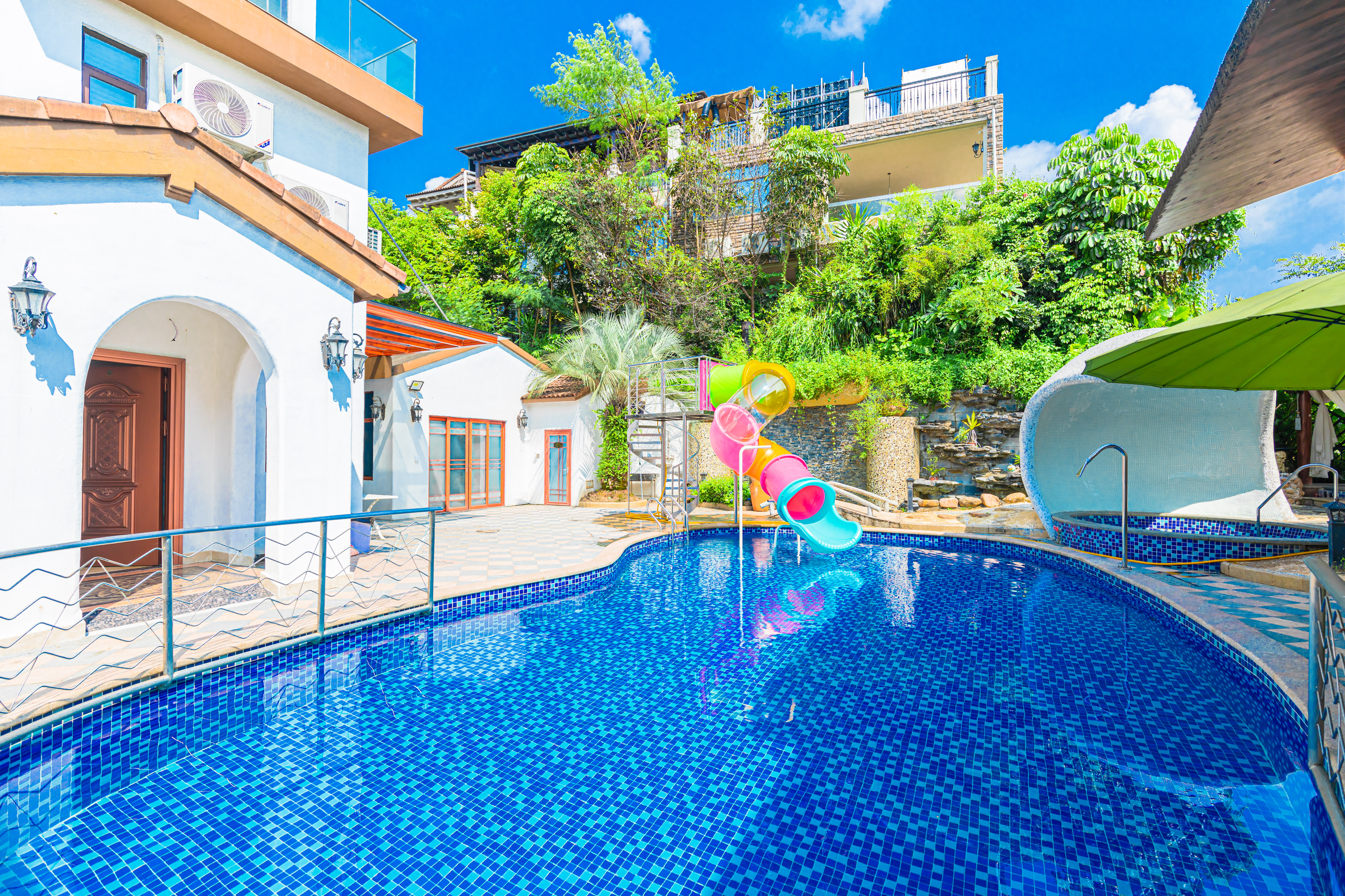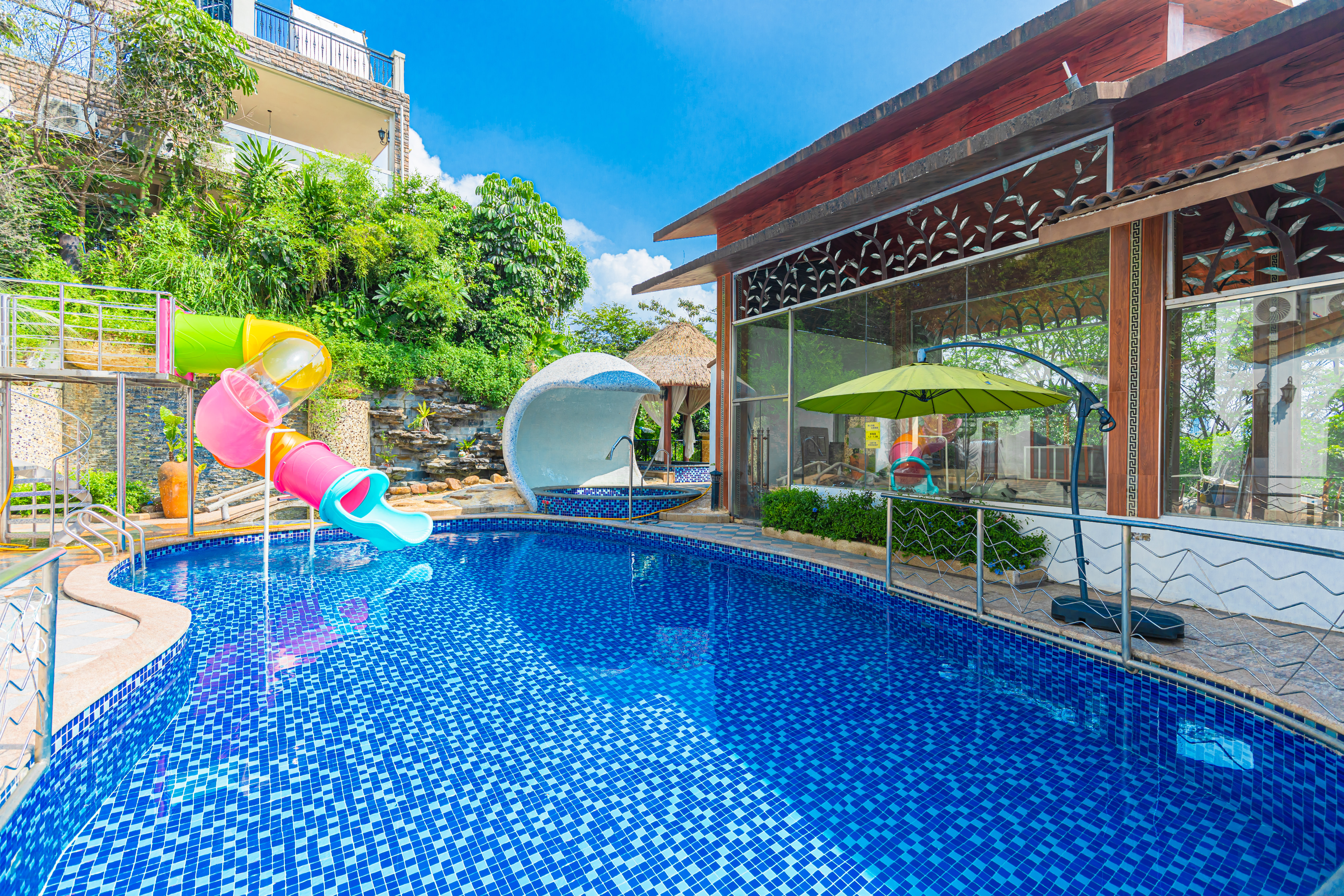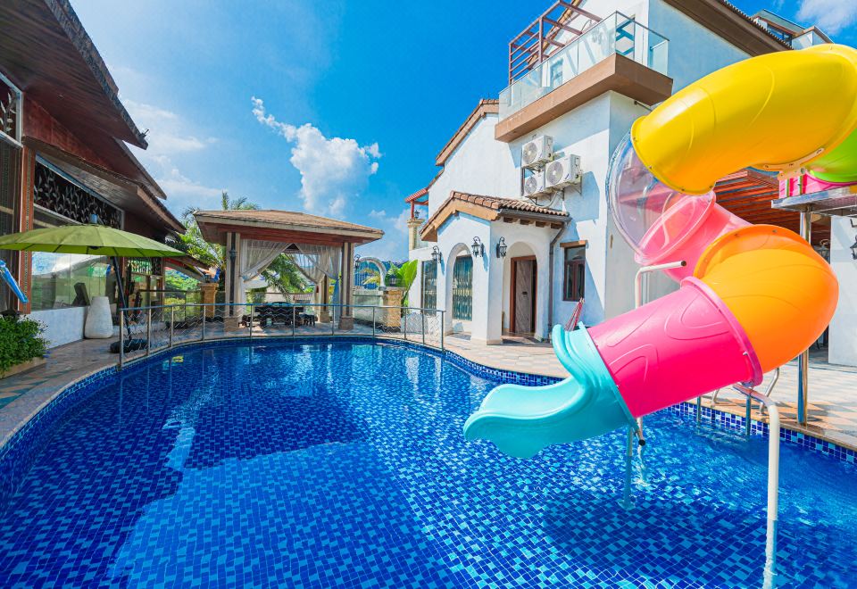 水瓶|滑梯泳池·8房12床独栋别墅(9温泉泡池+24小时KTV+碳烧烤+自动麻将+桌游+亲子波波池+自助厨房)