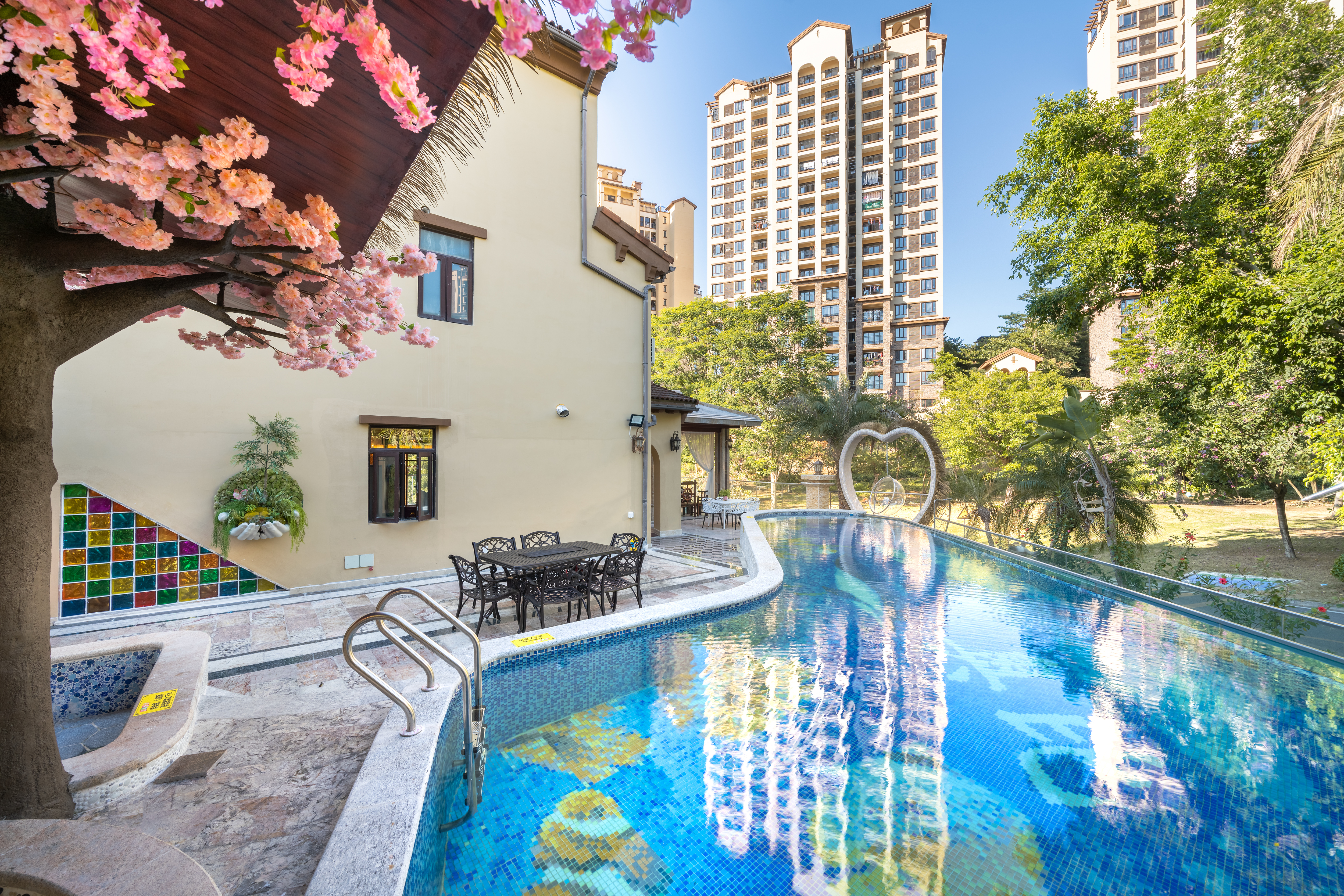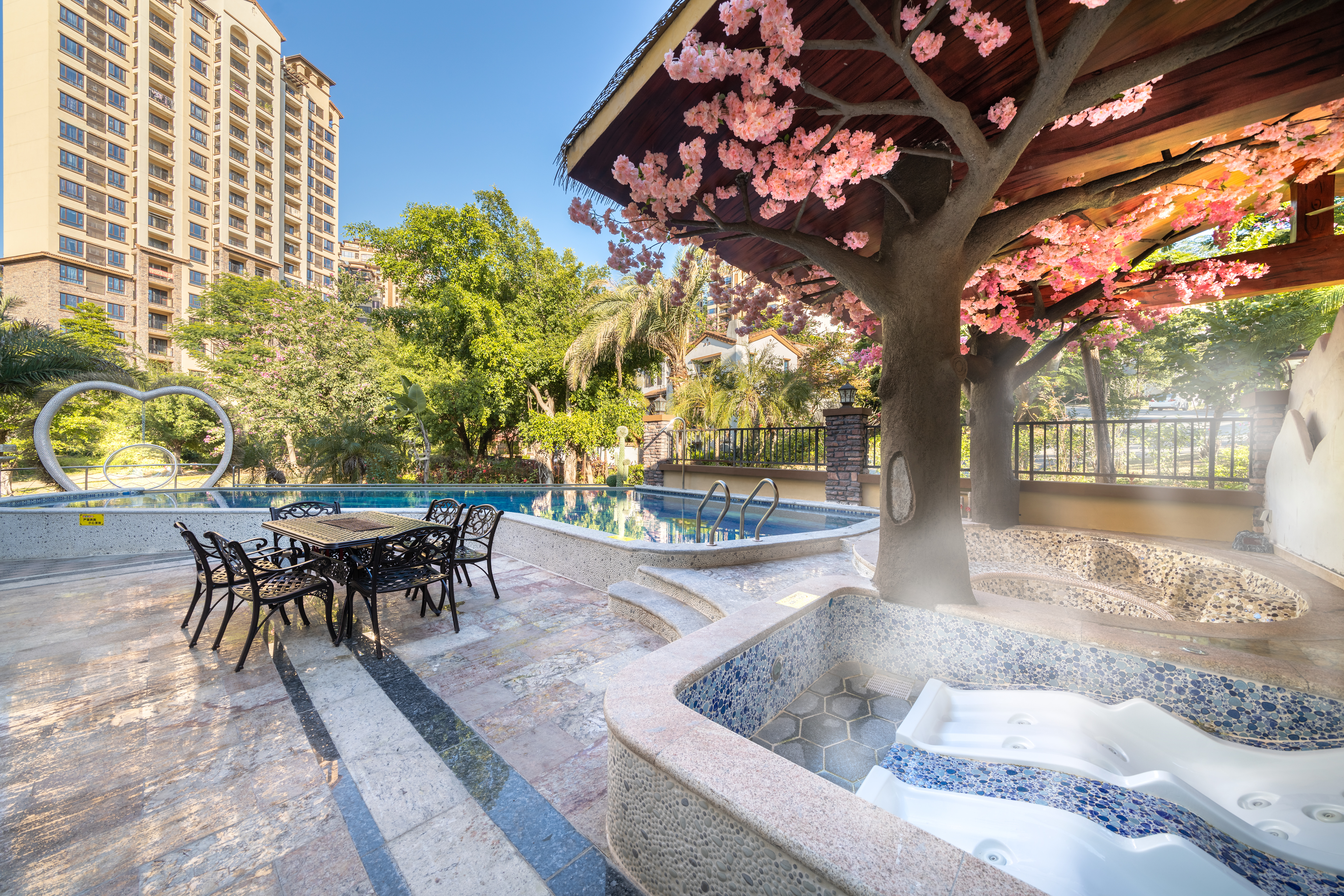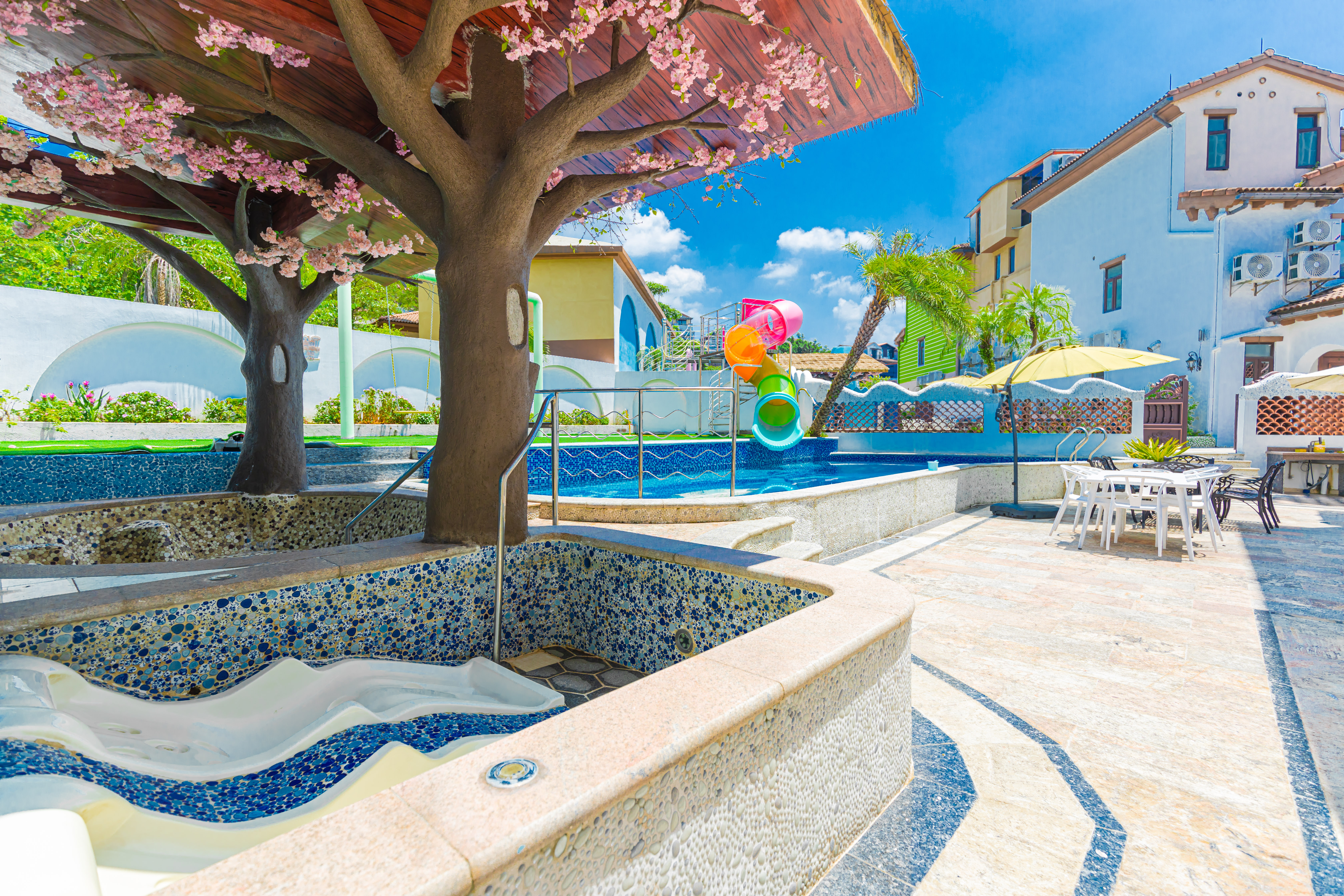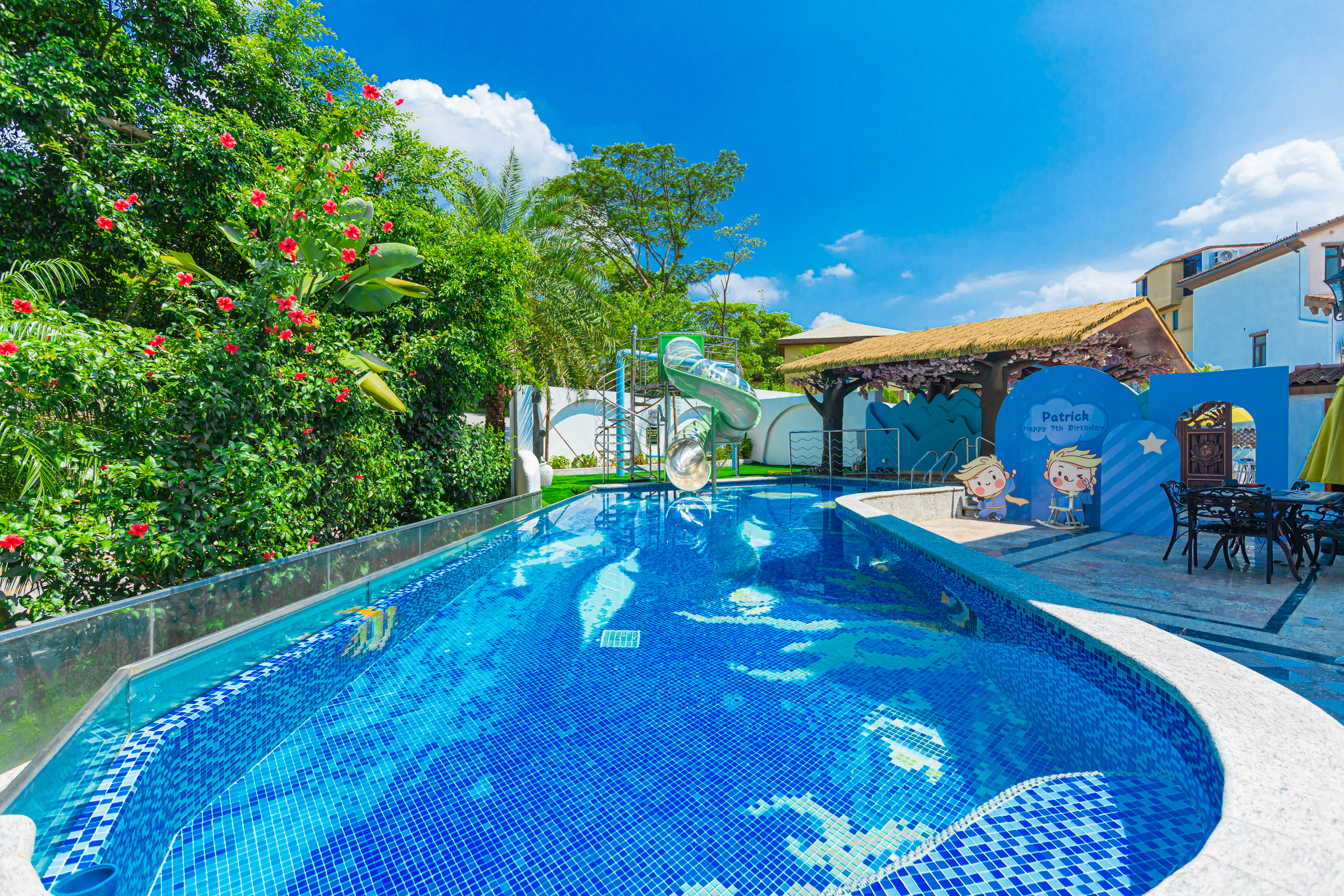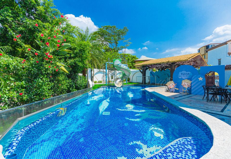 白羊|滑梯泳池·7房10床独栋别墅(5个温泉泡池+24小时KTV+碳烧烤+自动麻将+桌游+自助厨房)