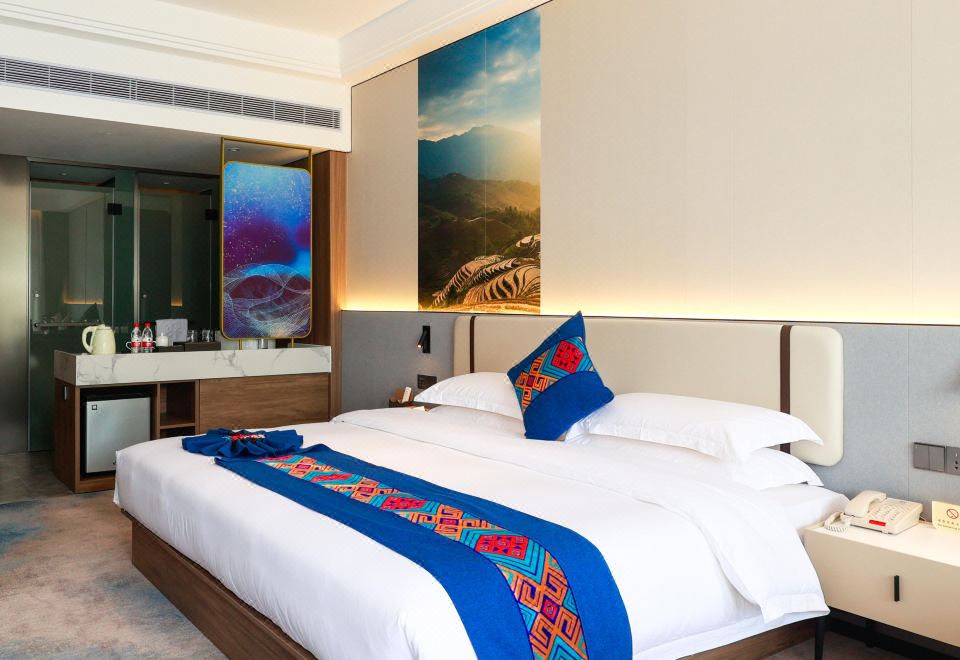 豪华观澜全景大床房(远眺青山近观夜景+民族风)