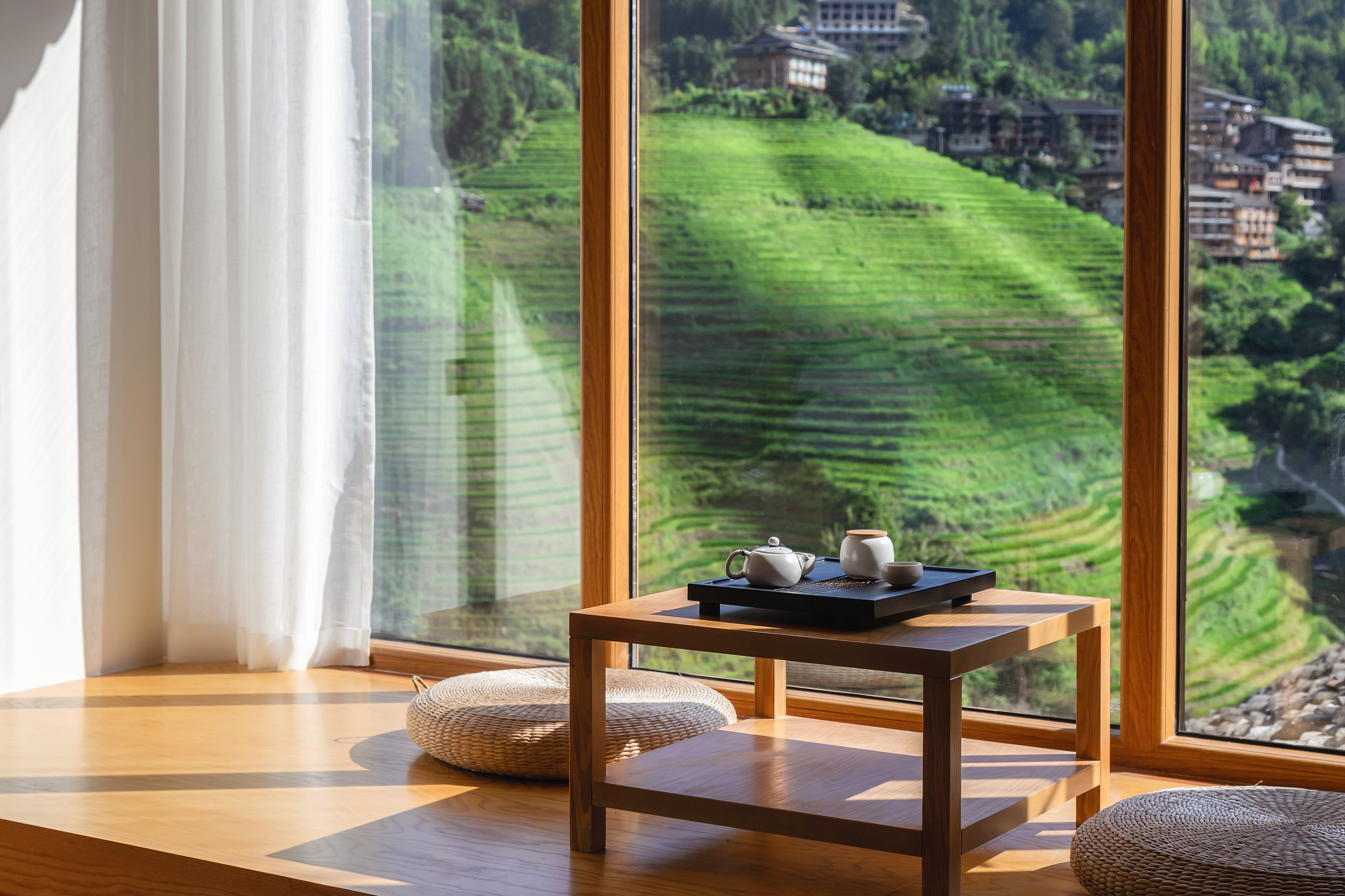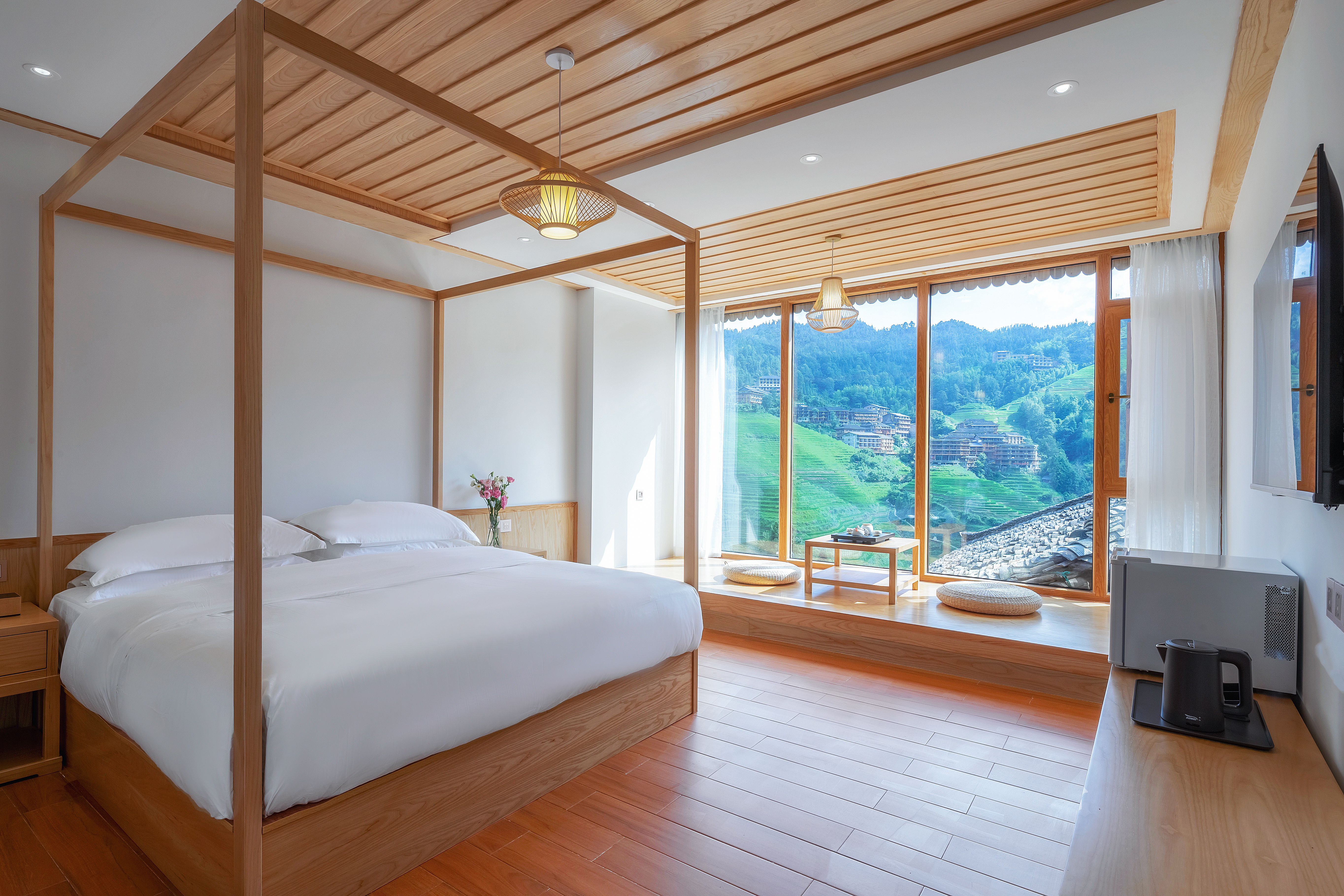 屋檐听雨·观景大床房(智能马桶+临窗榻榻米茶台+冰箱)