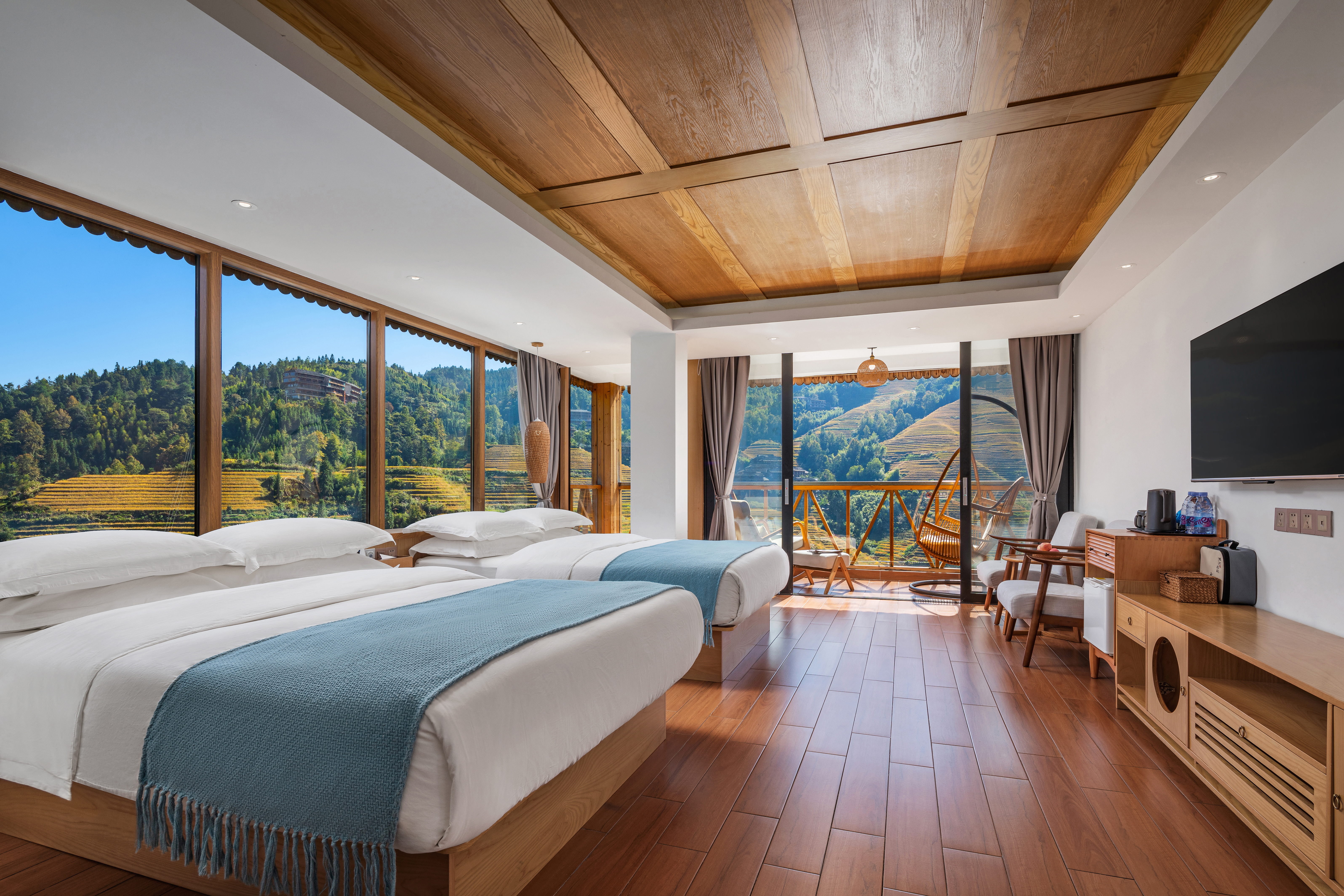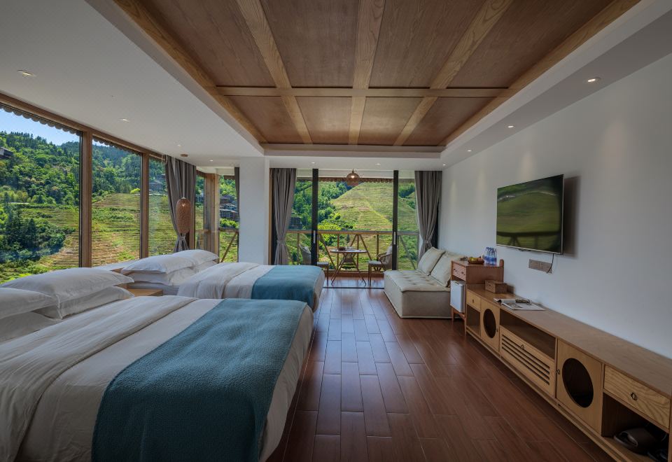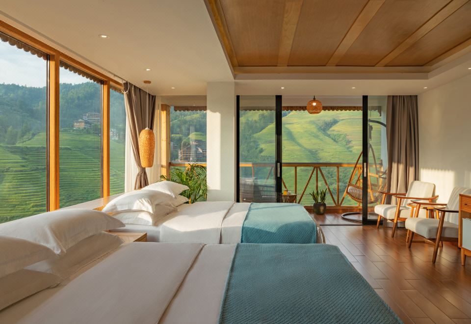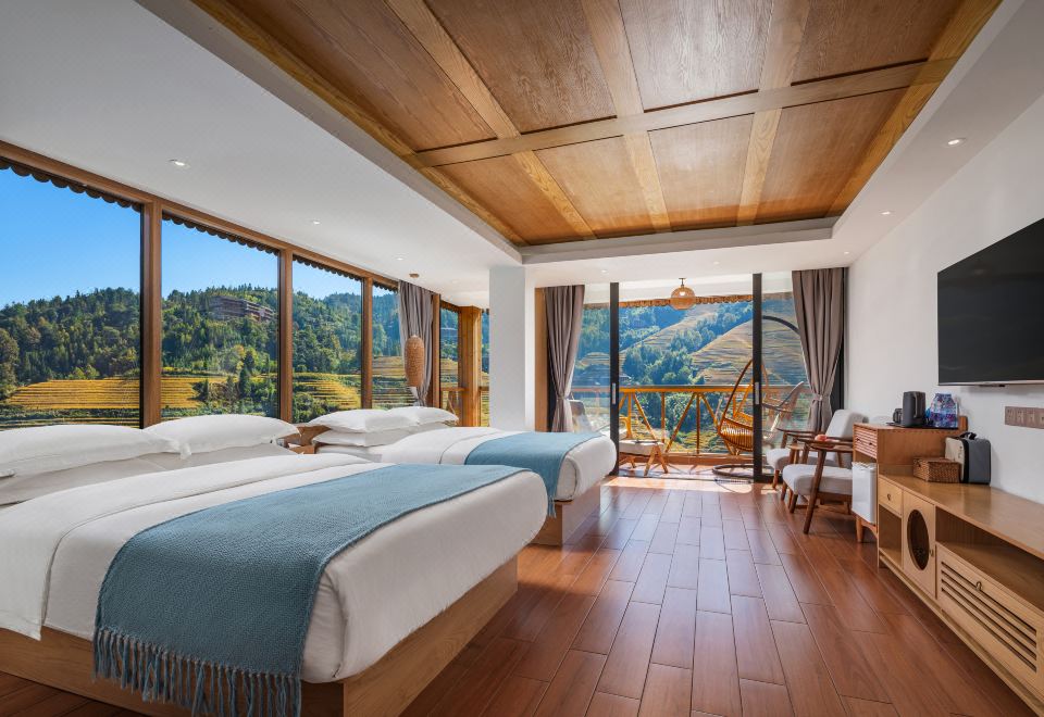 天际初晓·270°观景双床家庭房(智能马桶+私享阳台+冰箱+梯田美景)