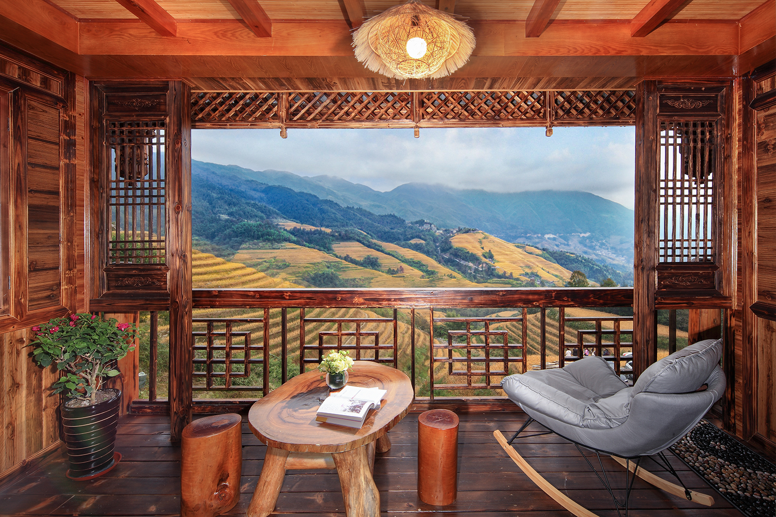 朝霞·智能梯田日出全景大床房(巨幕影院+浴缸+私享露台)