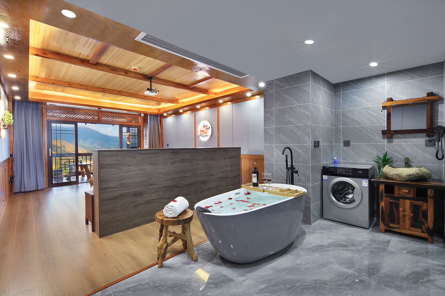 瑞雪·智能梯田全景家庭房(巨幕影院+浴缸+私享露台+日出)