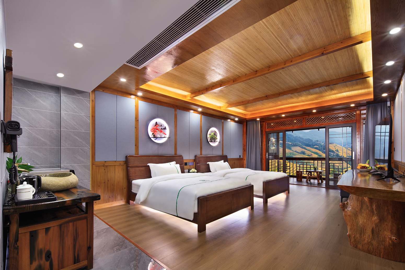 友绿·智能梯田日出双床房(冰箱+洗衣机+私享露台)