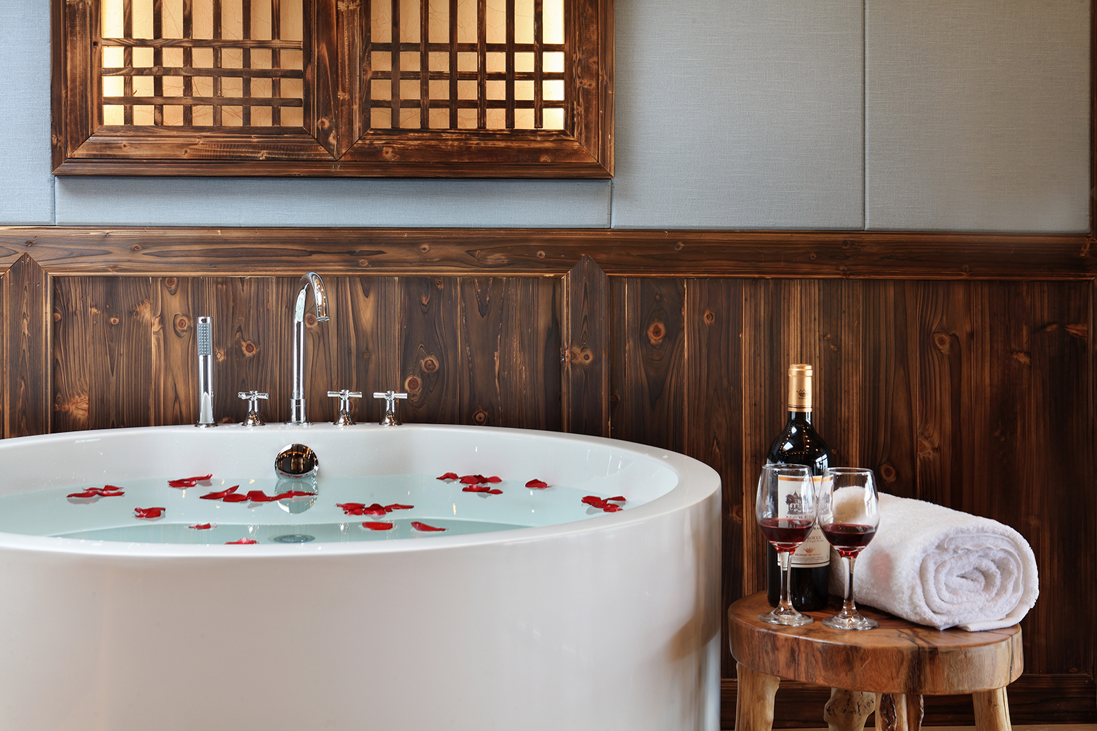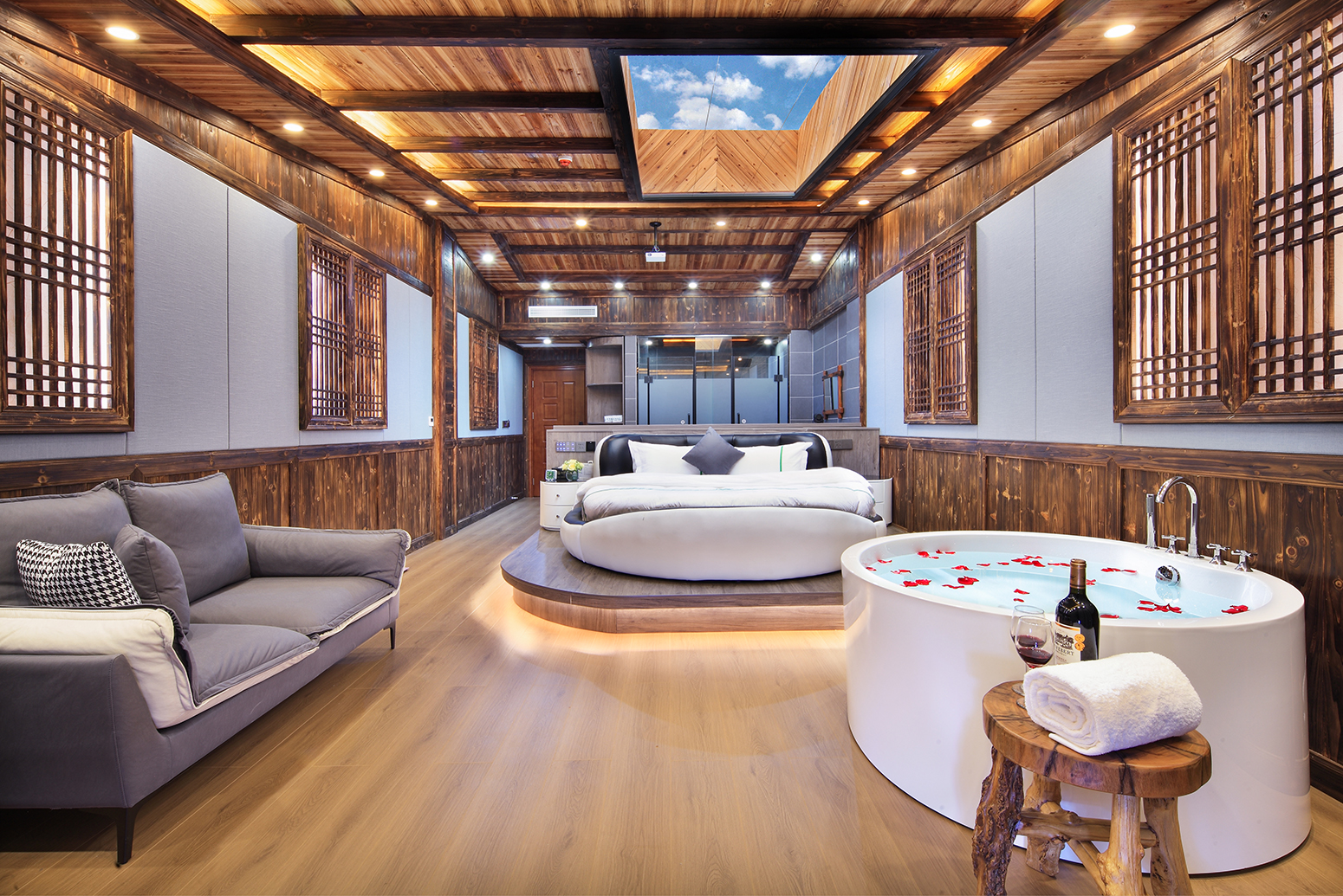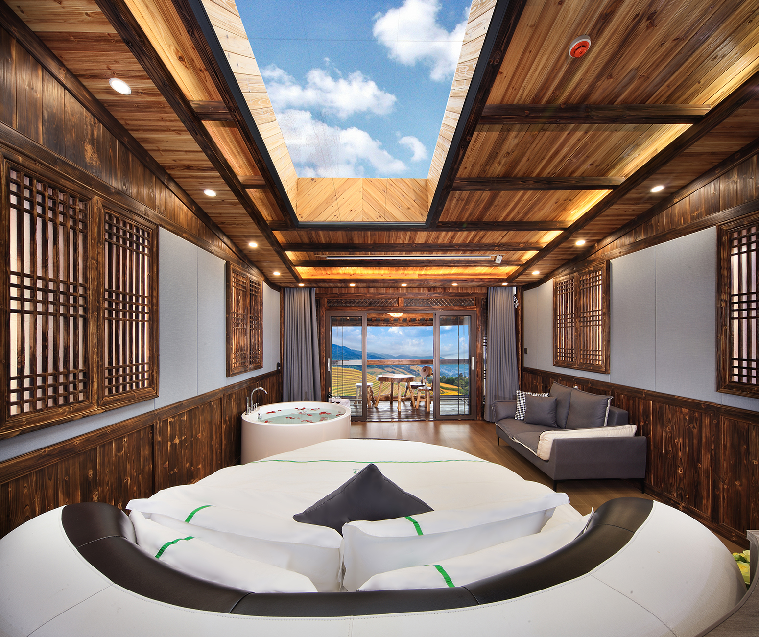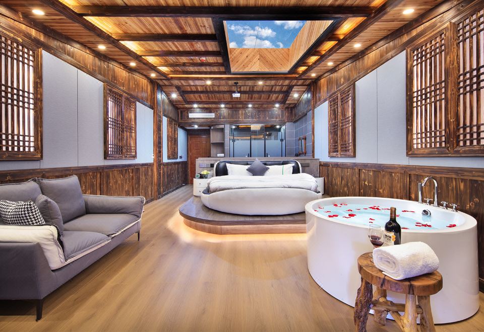 露薇·智能梯田全景星空圆床房(巨幕影院+浴缸+私享露台)