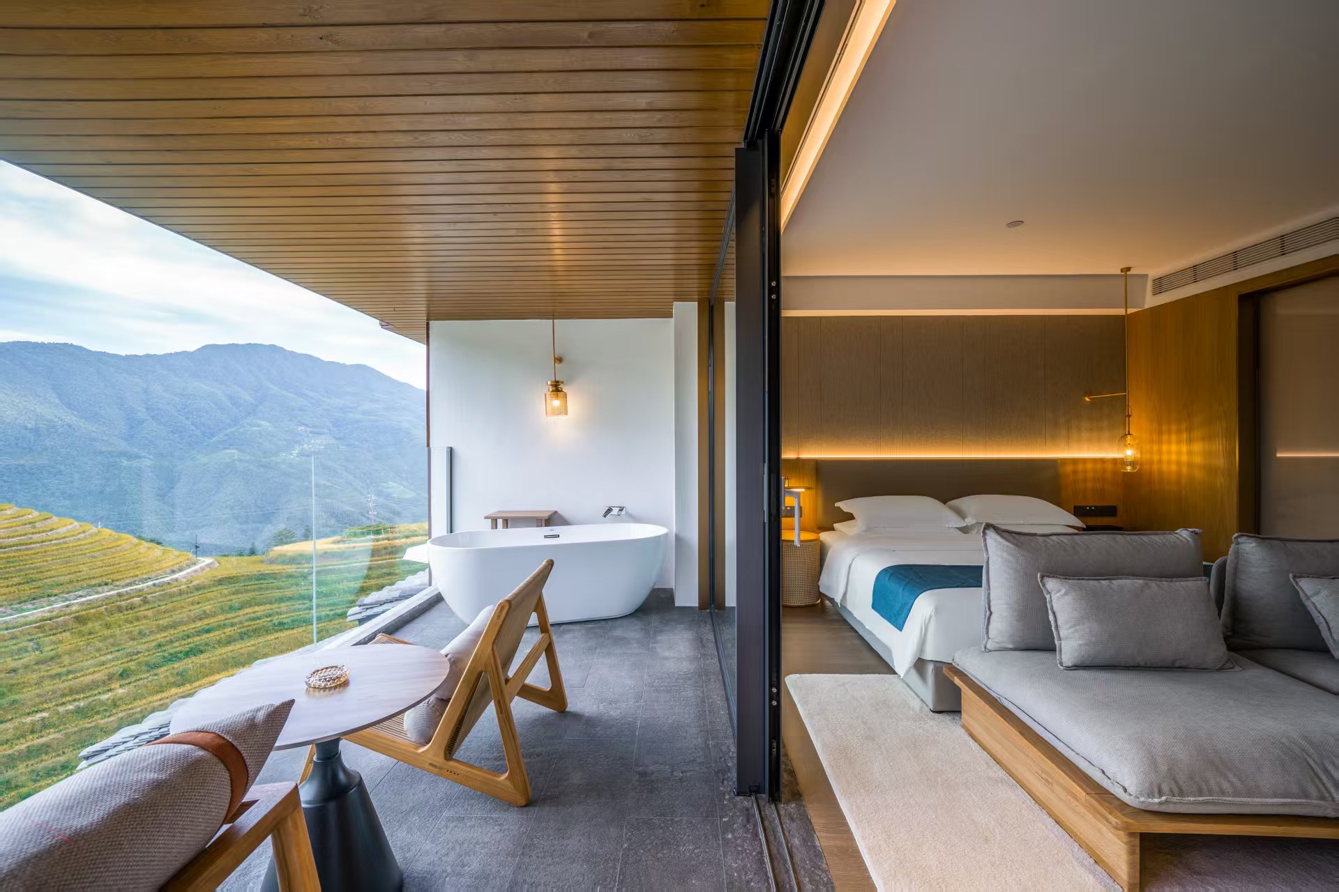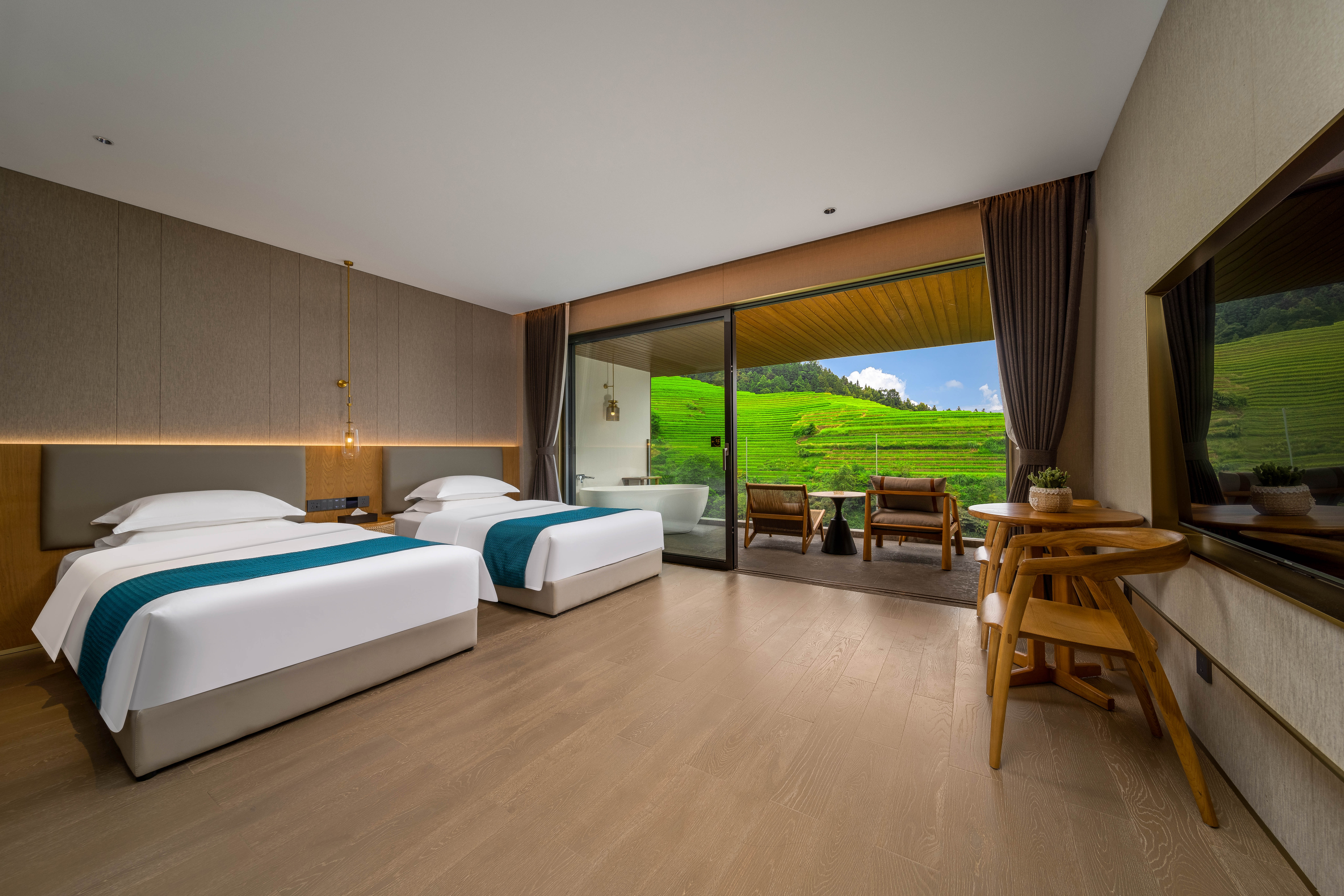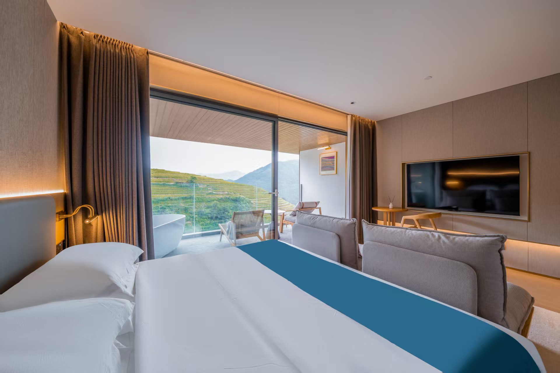 【180°梯田景观】云山·观景大床房+阳台+奢华浴缸+舒适沙发+智能客控