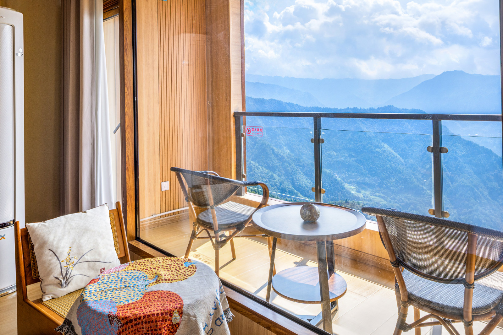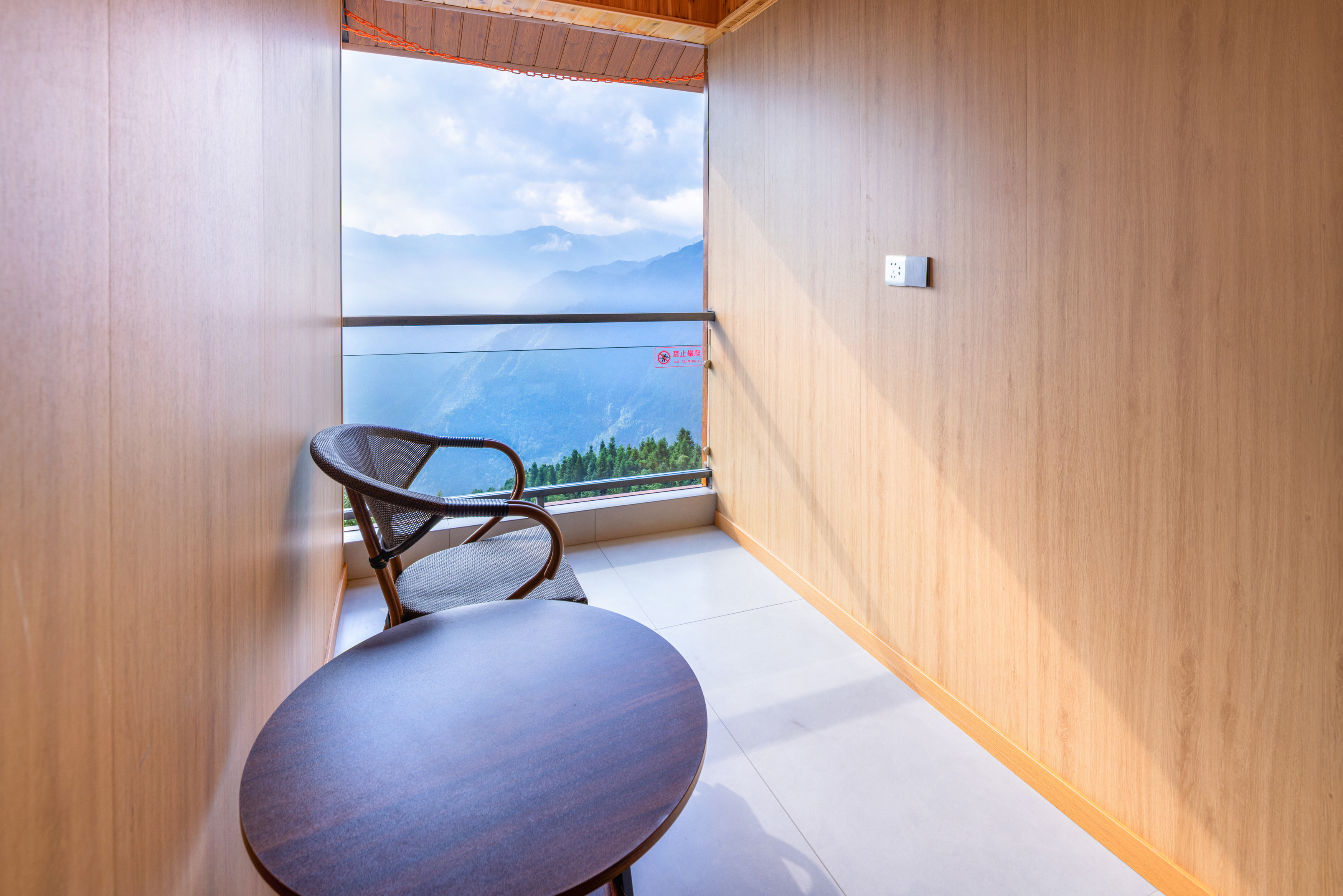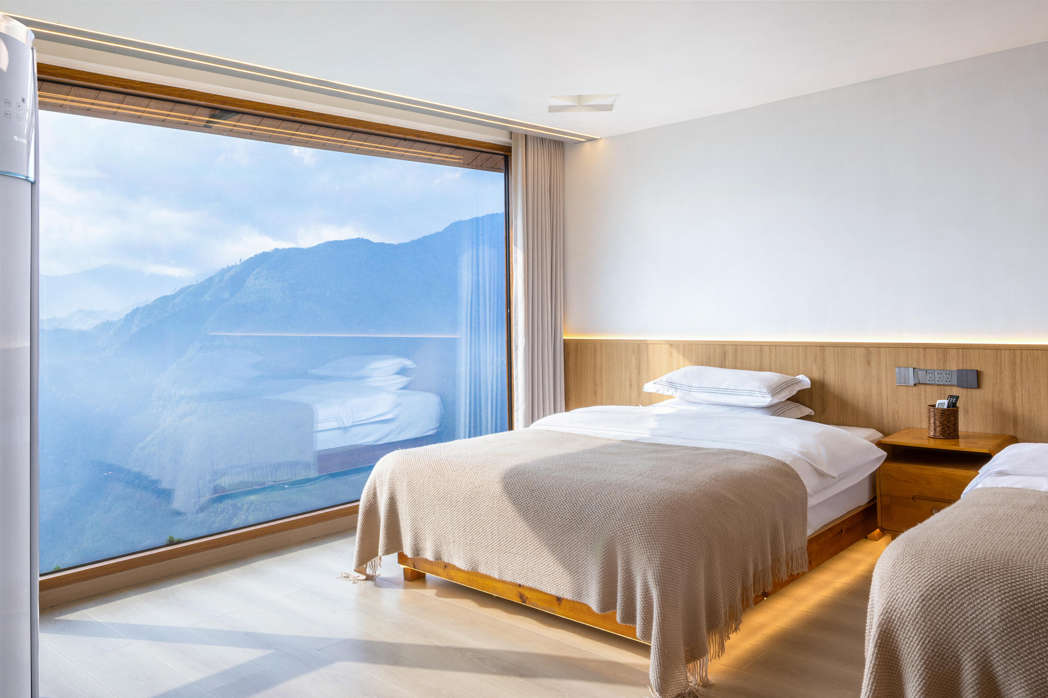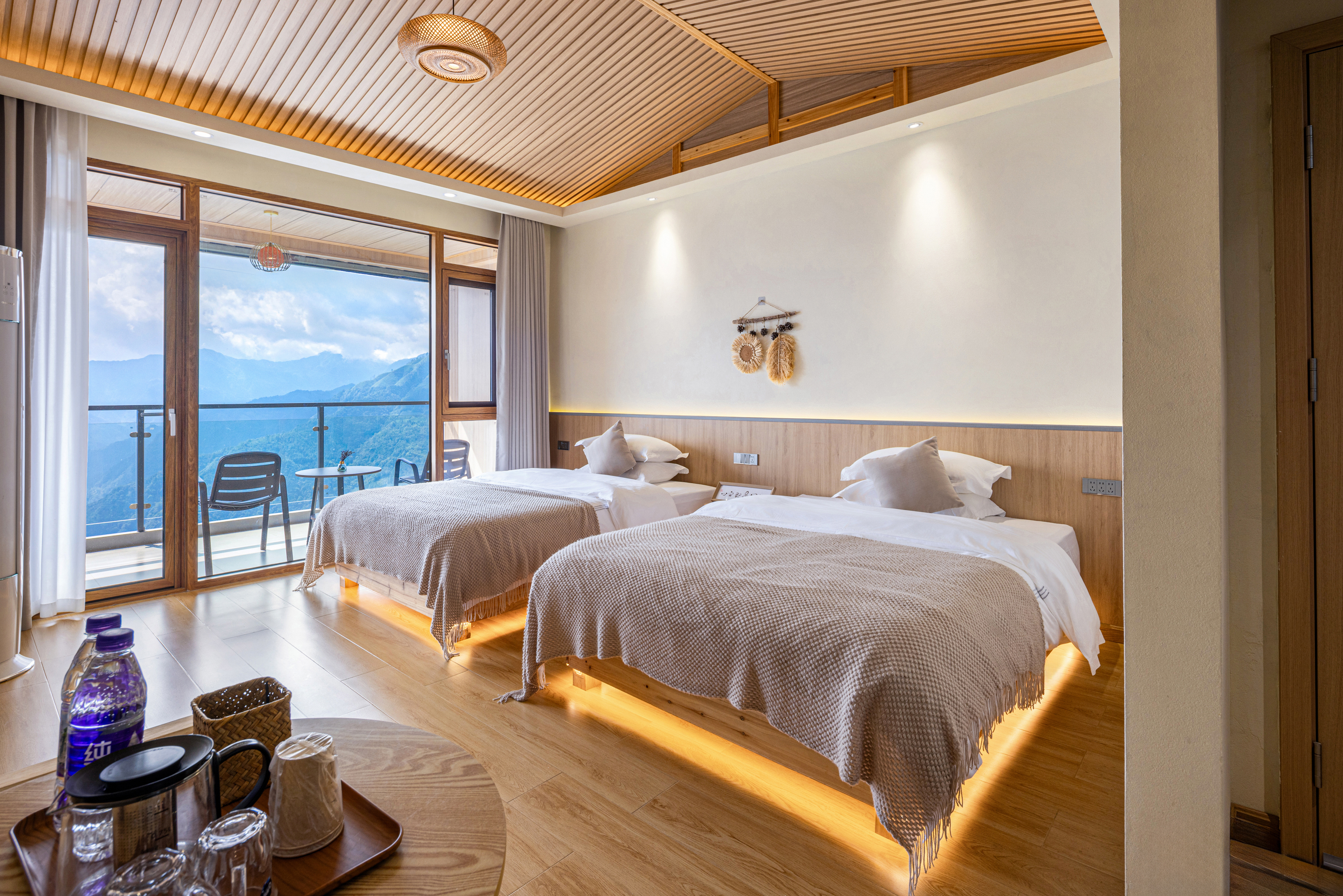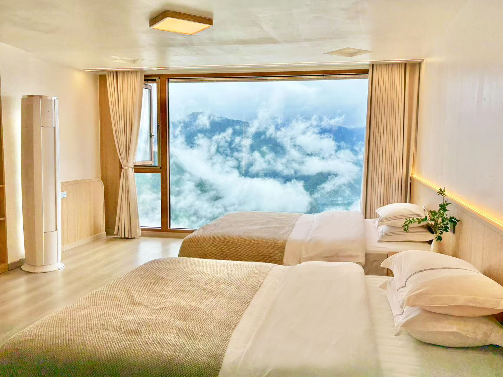 阳台落地窗日出云海双床房