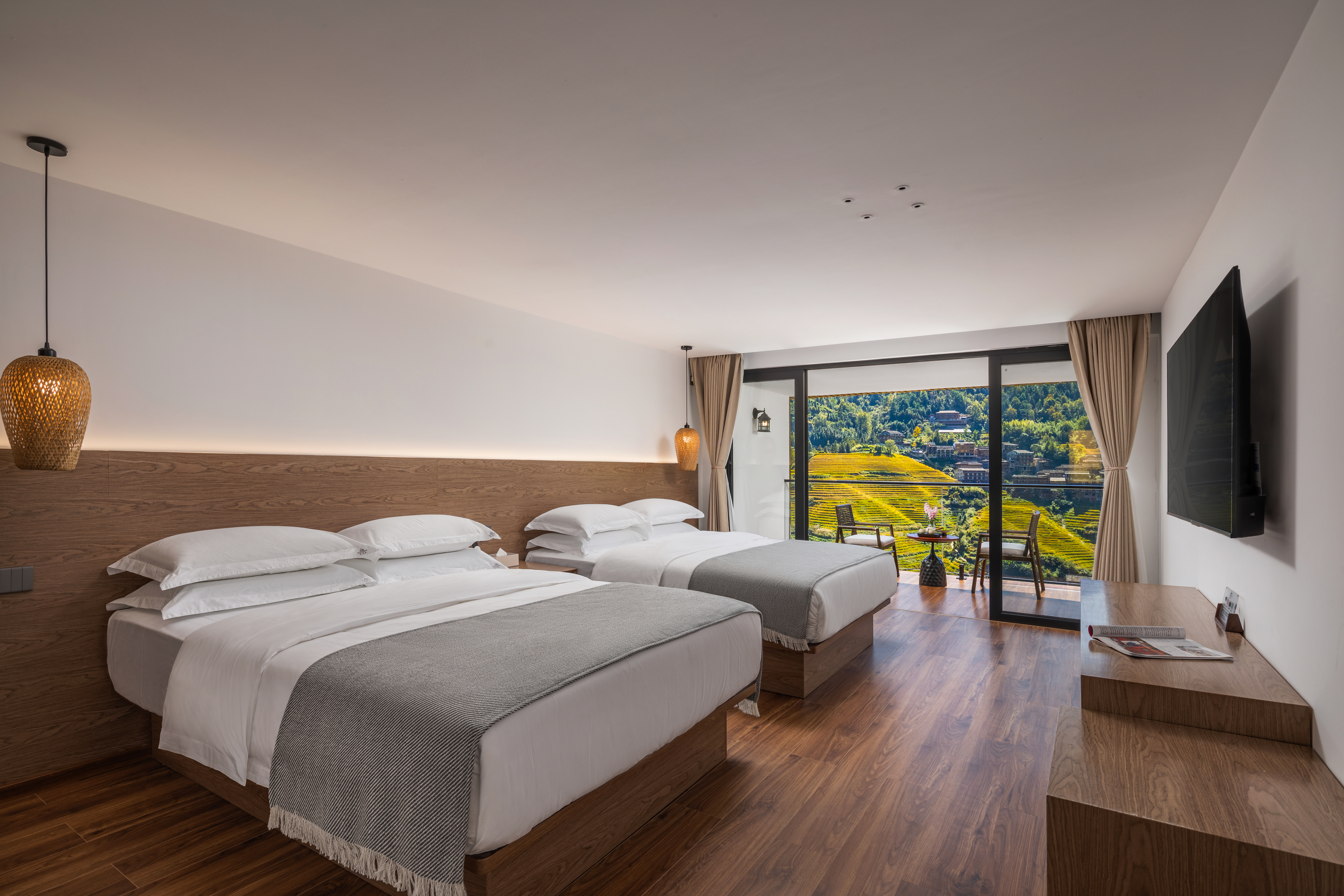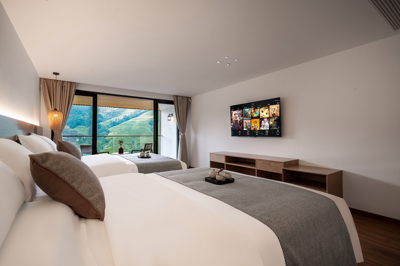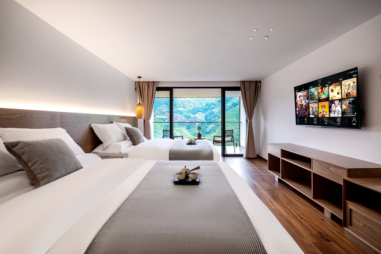 望远山?180°观景阳台双床家庭房(智能马桶+电动窗帘+私享露台+无遮挡梯田美景+拍照出片)