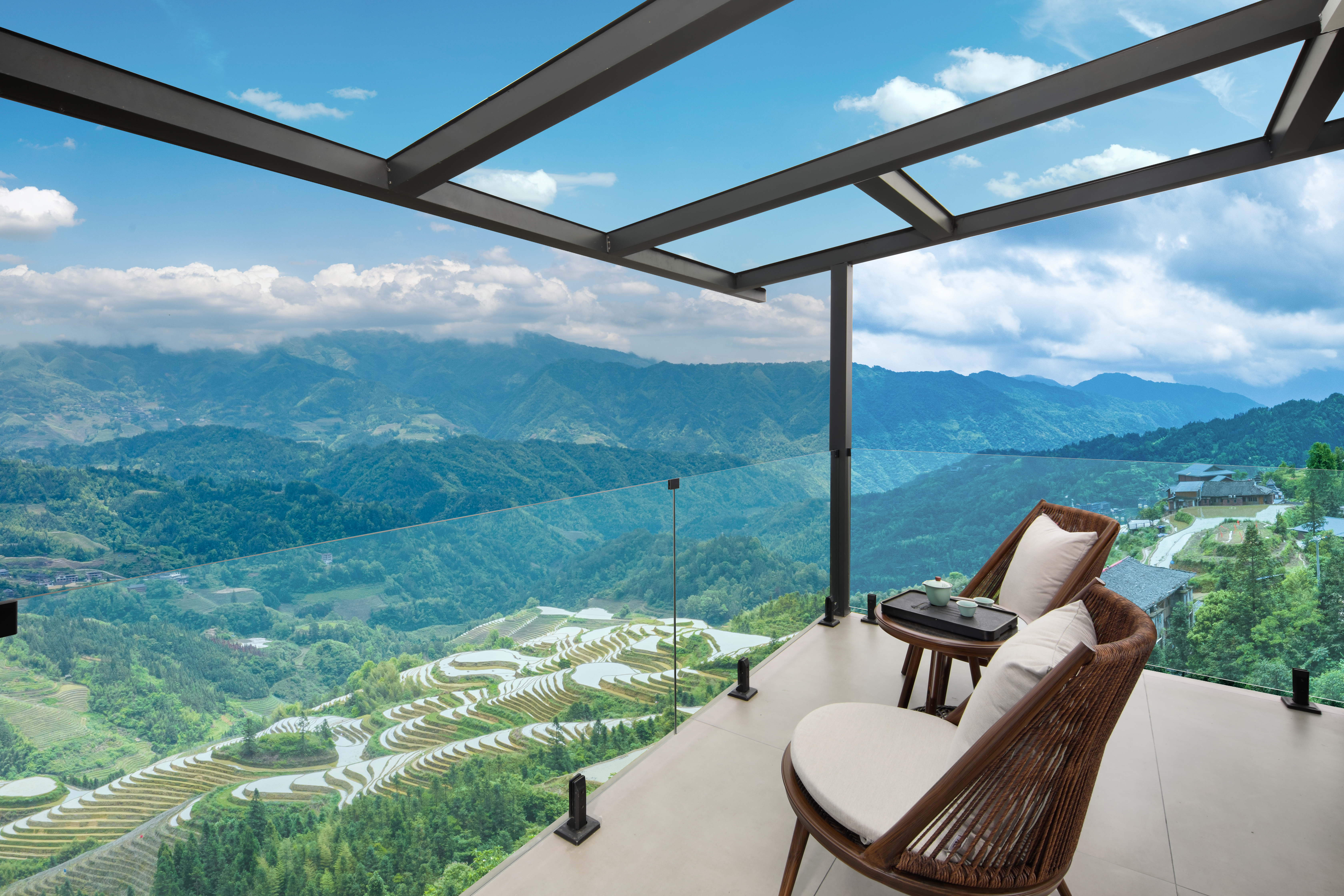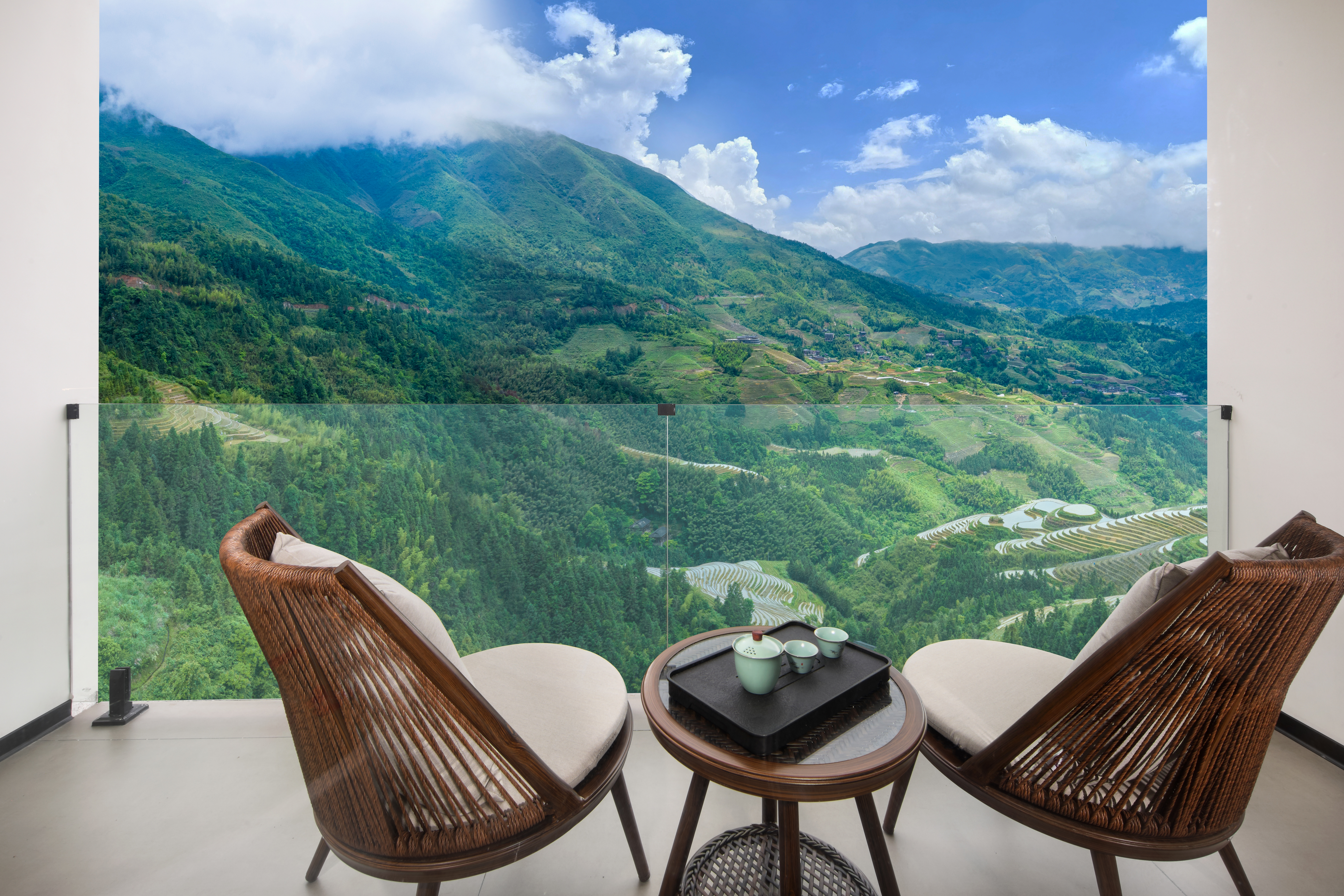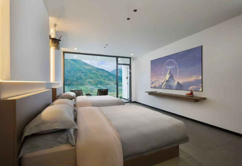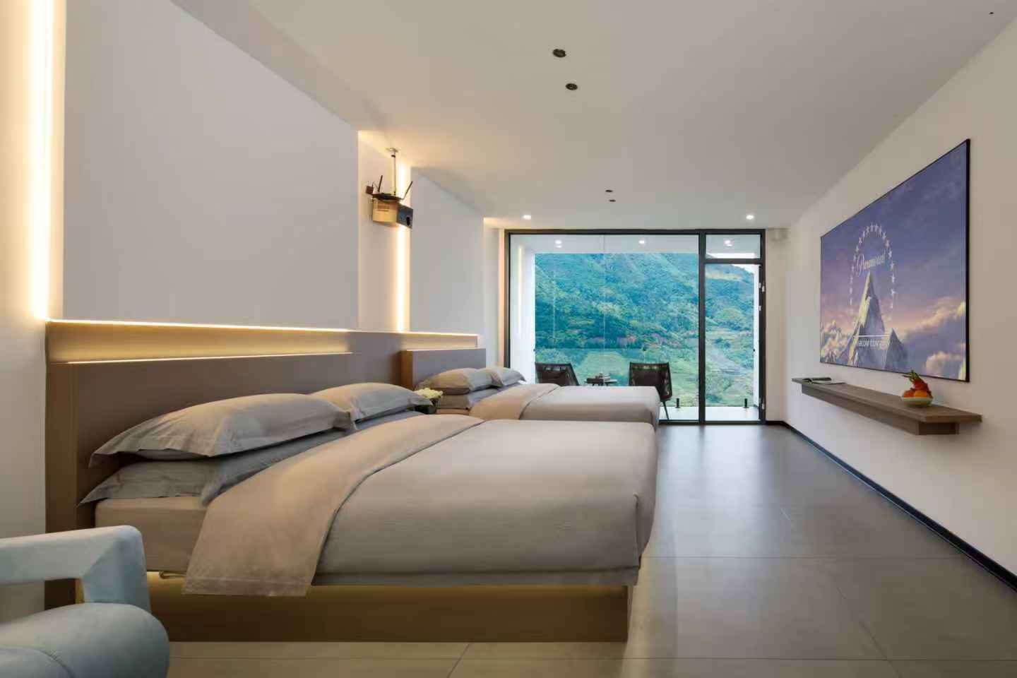 望川?观景阳台特大双床房【巨幕投影+梯田一览无余】