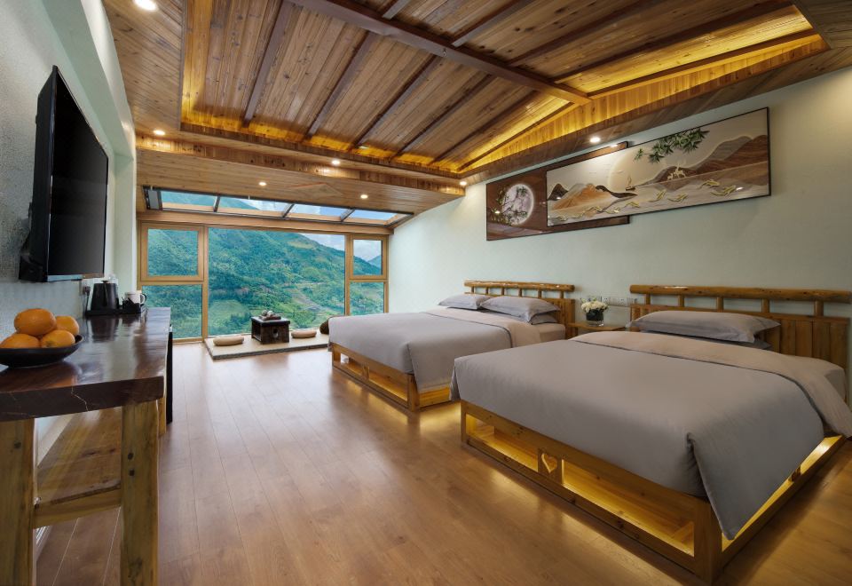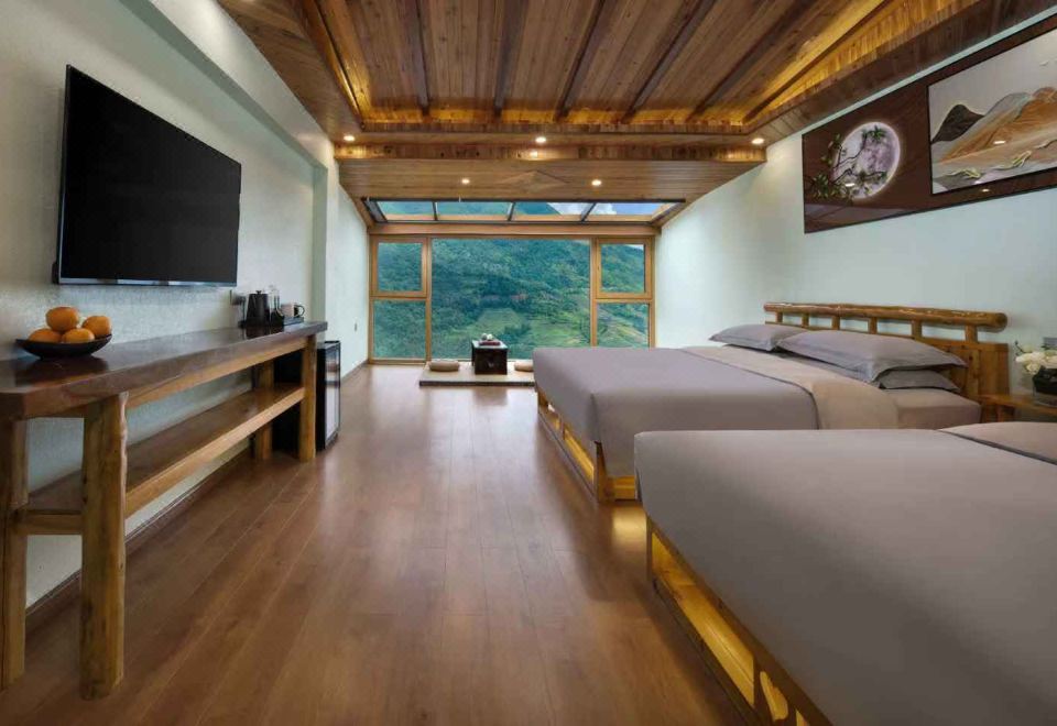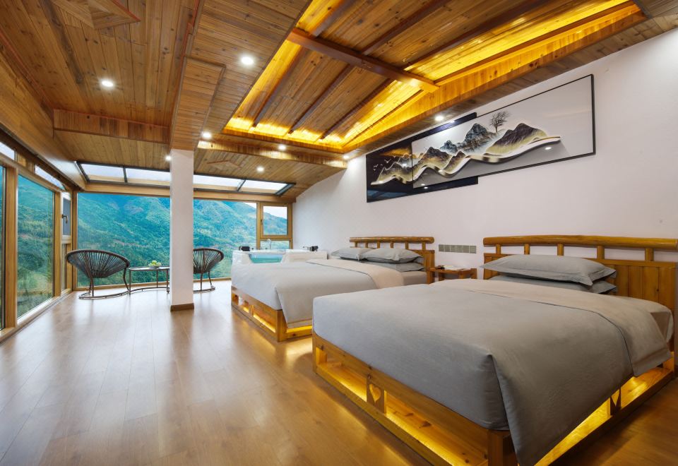 月下?全景星空家庭房【俯瞰万亩梯田+榻榻米休闲茶桌】