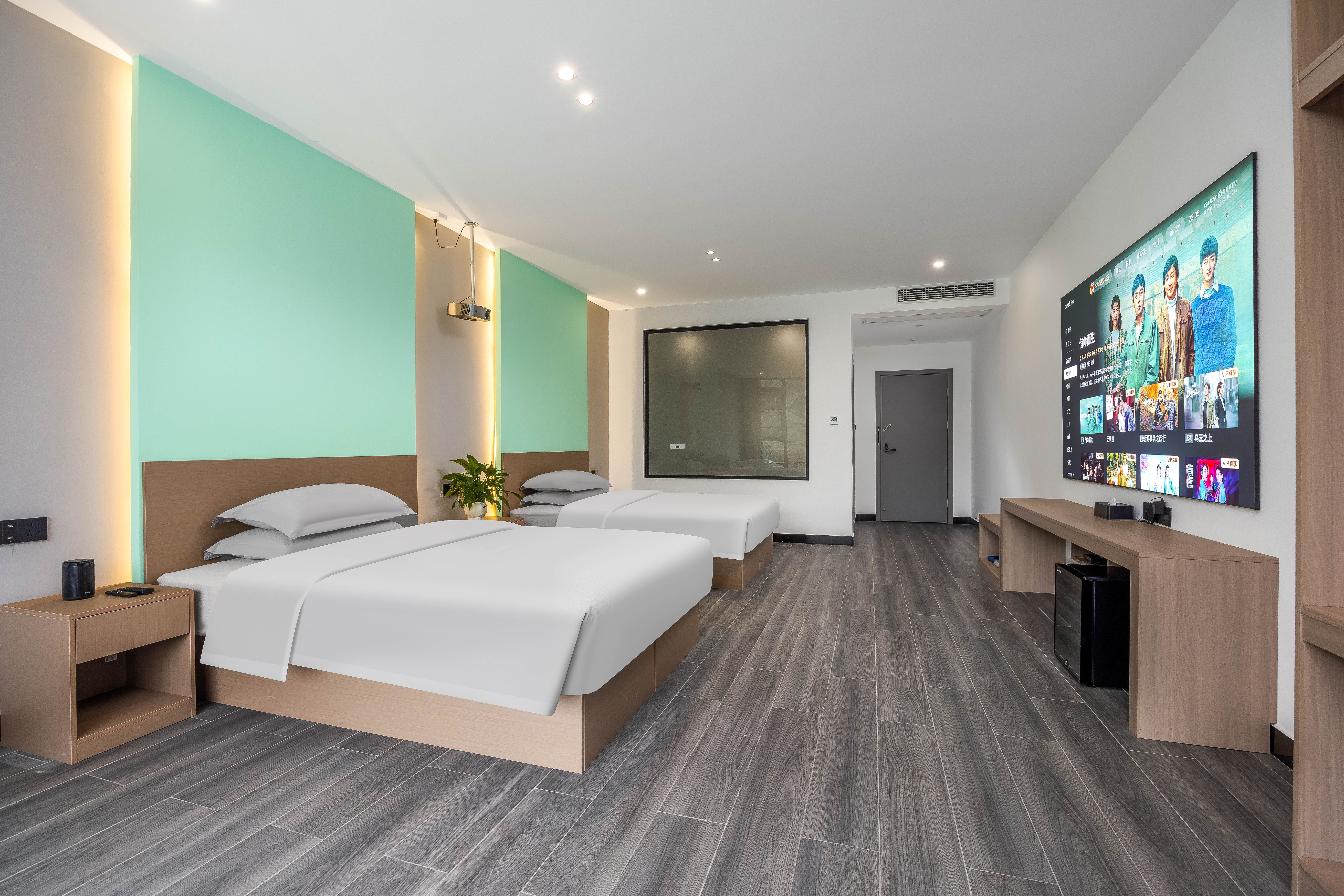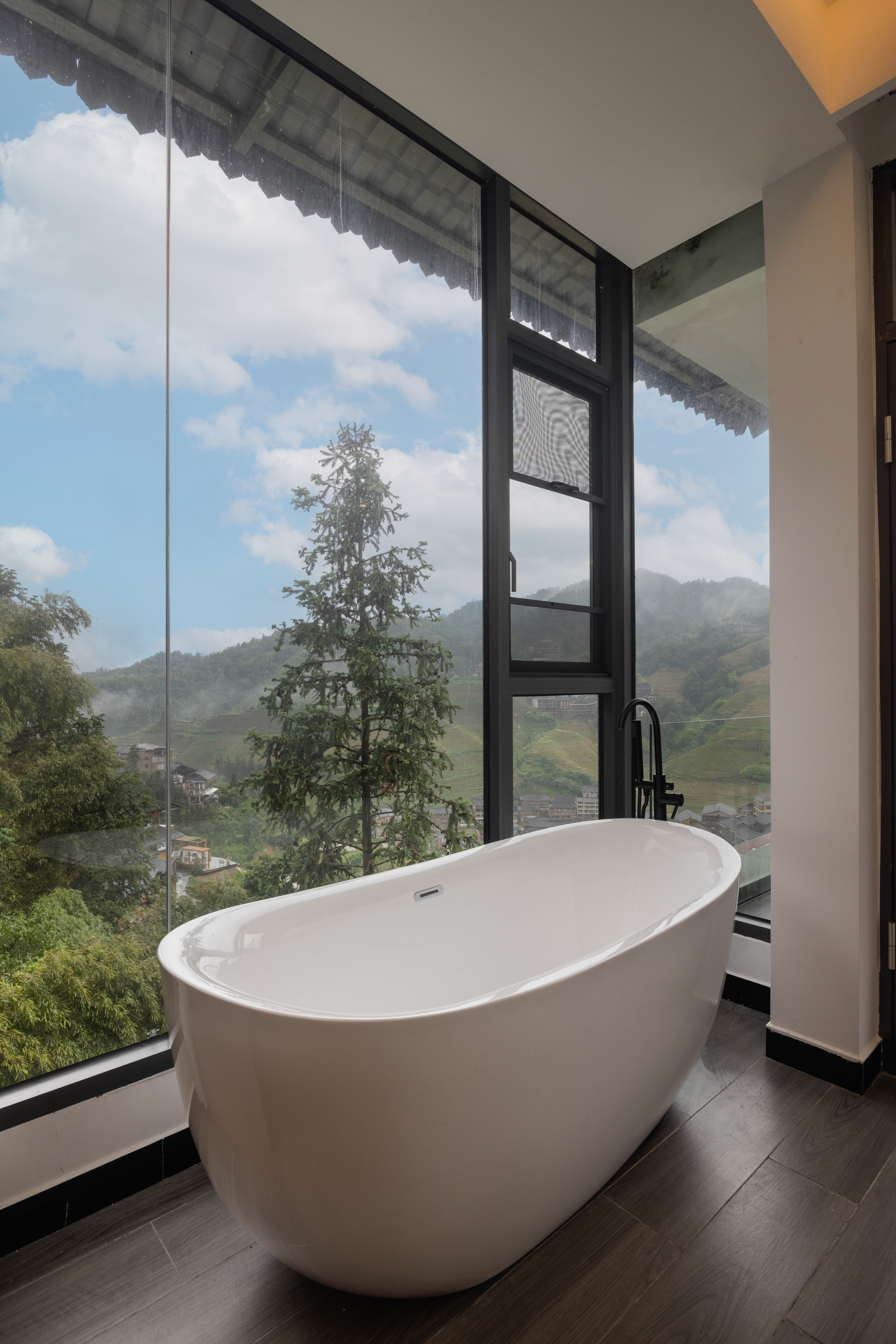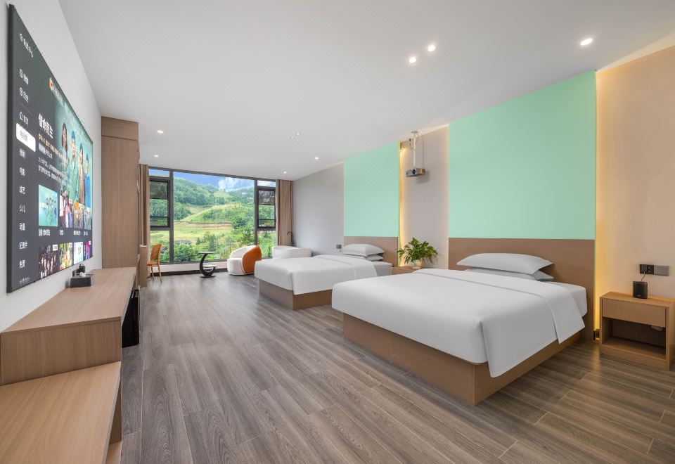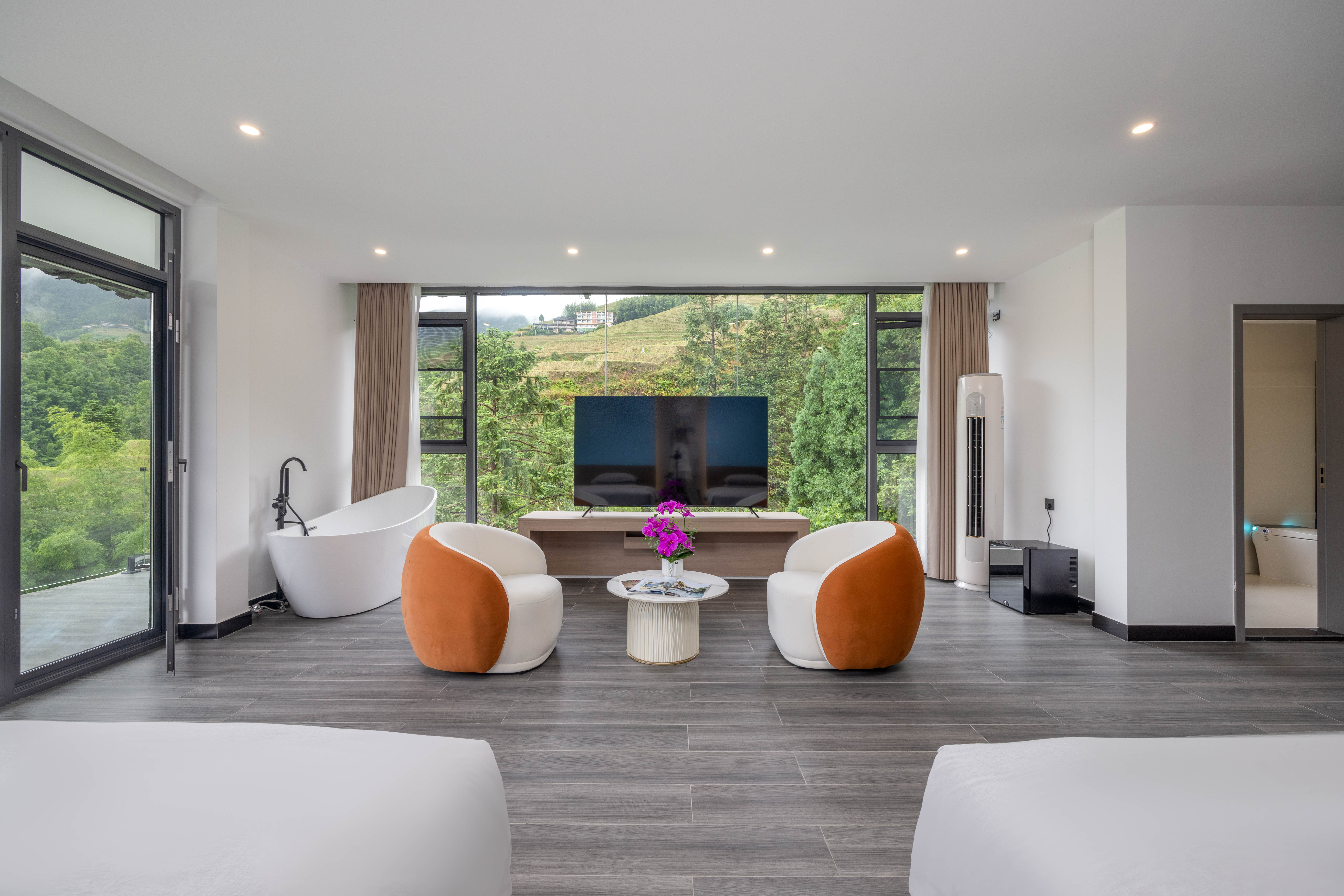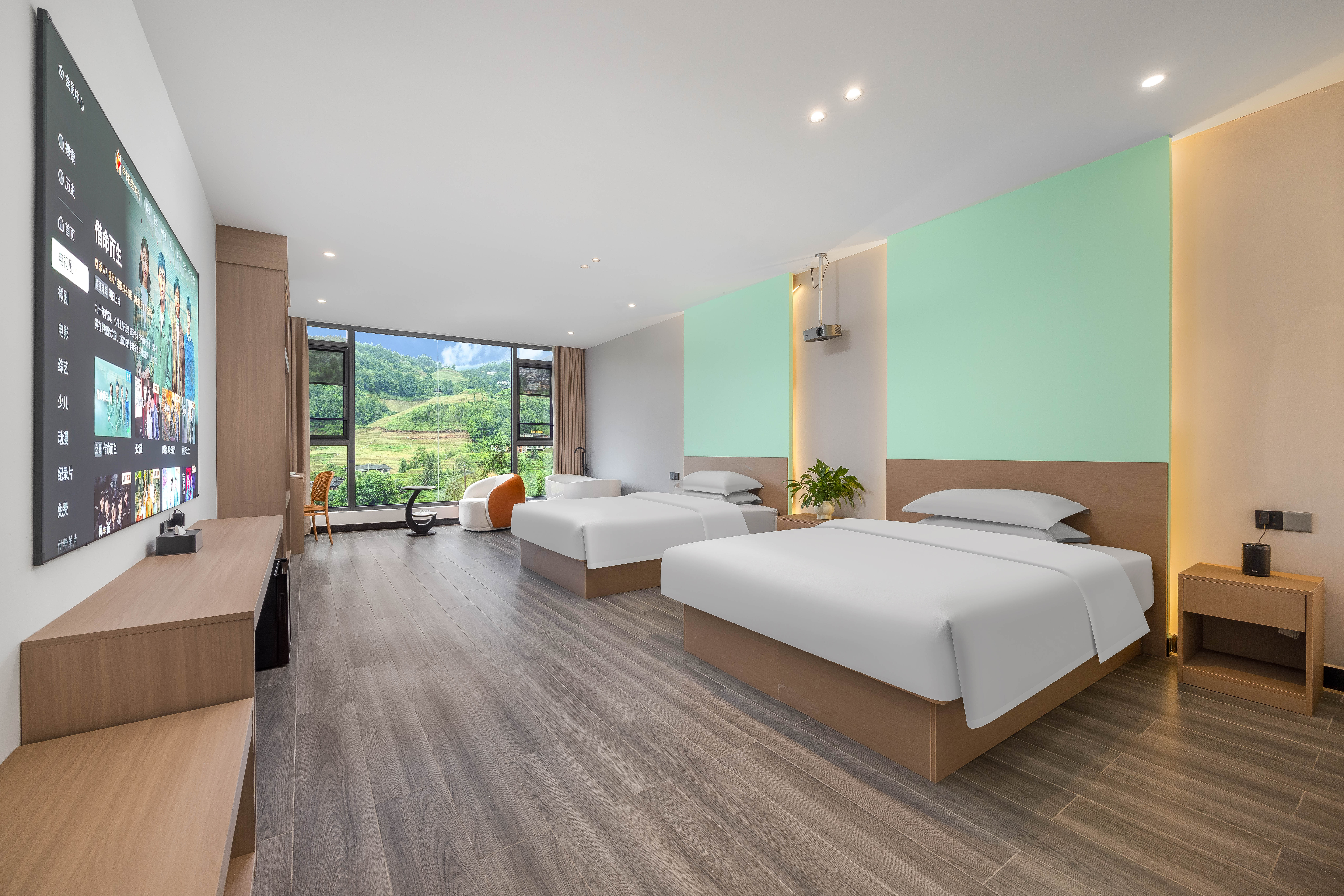 云海180度观景浴缸投影双床房|落地梯田景观+视野开阔